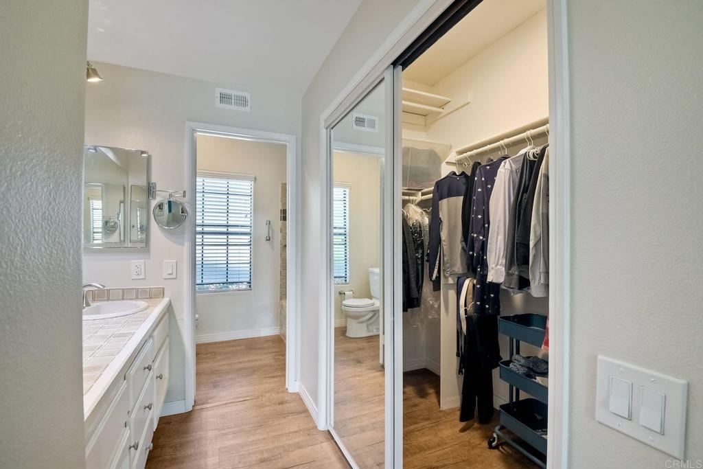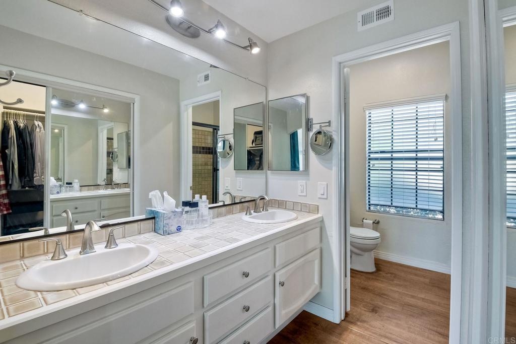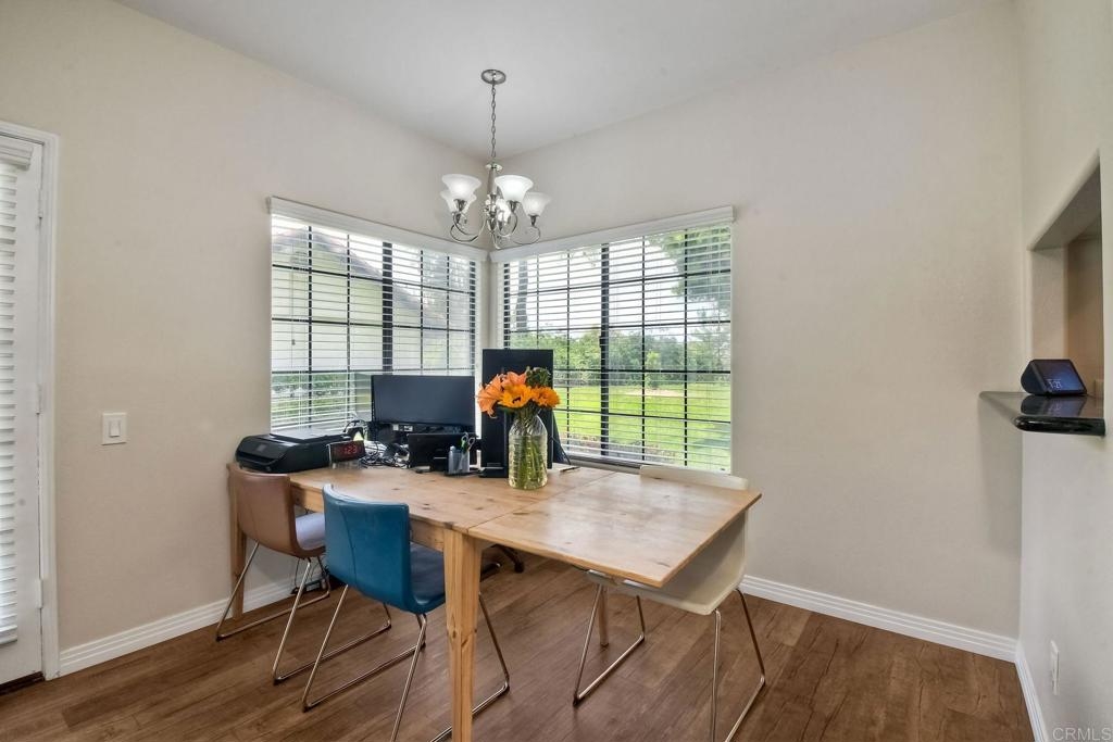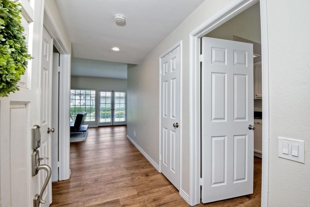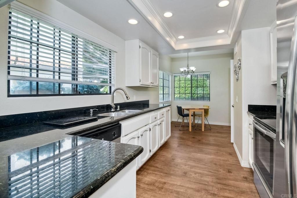Upgraded 2 bedroom,2 bath + Nook, single story end unit features wood-like flooring, white cabinets, granite counters, stainless steel appliances, recessed lights, troweled ceilings, freshly painted, new outlets & switches, walk in closet in master. Laundry closet w/washer & dryer. Refrigerator is included. Close to pool w/lots of grass around it make this feel like a single family home. Spacious 2 car detached garage. HOA includes water, cable, sewer, & Bernardo Hts Community Center- Heated Olympic Swimming pool, tennis, pickleball courts, basketball, wading pool, Jacuzzi, ping pong, pool tables, community events Escrow pre opened with Five Star Escrow - Vicki Jamison Title - Lawyers Title - Jeremy Lipsey