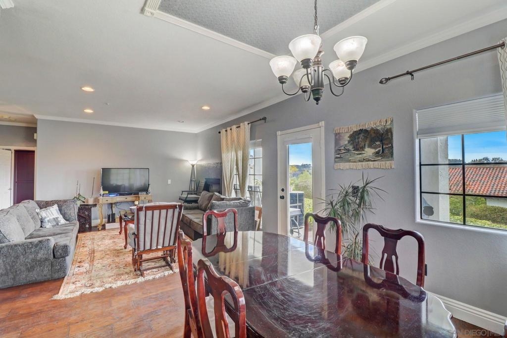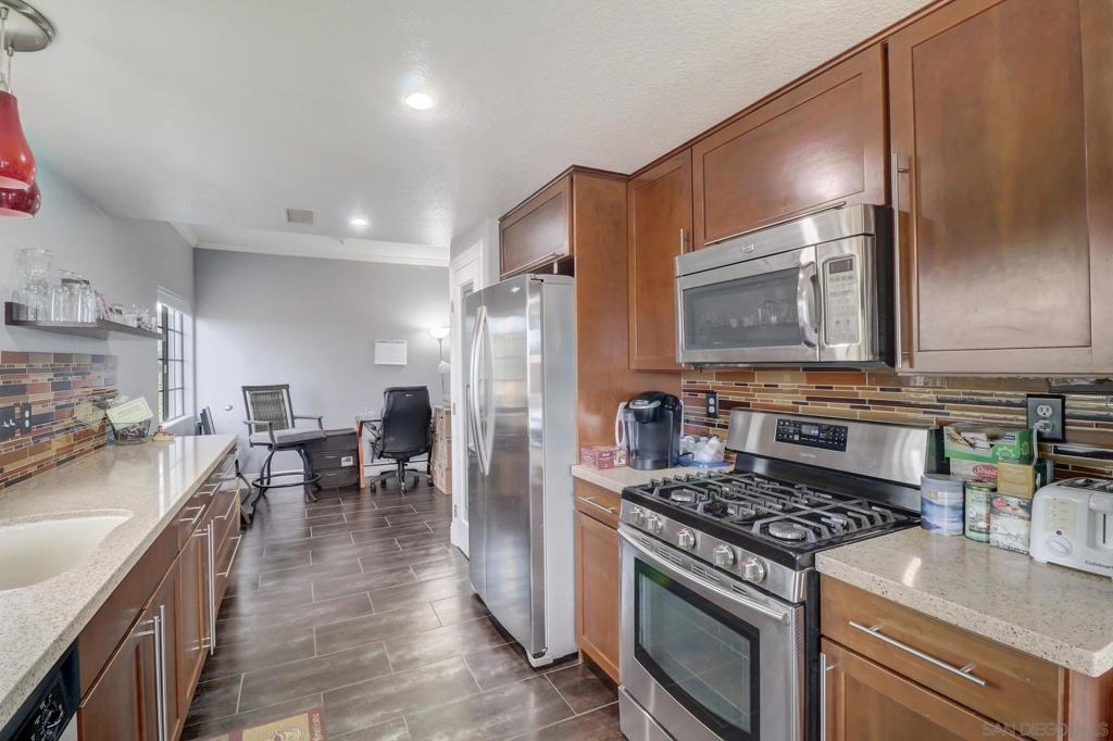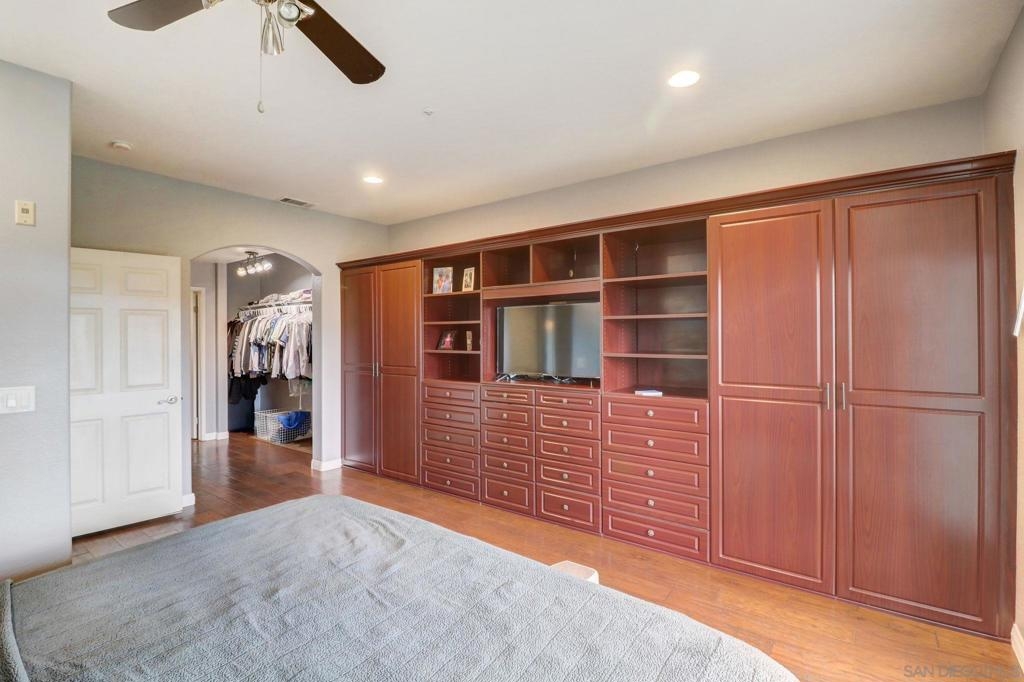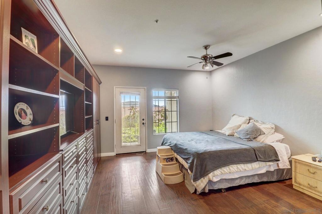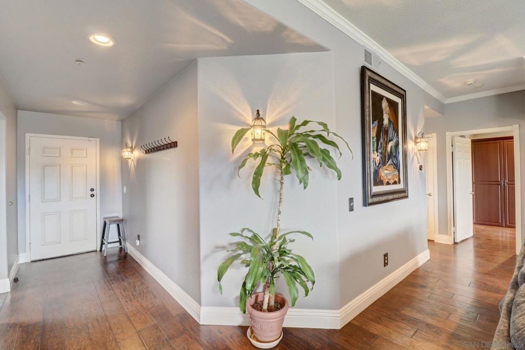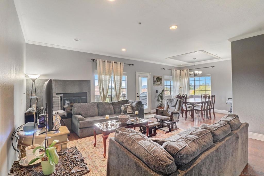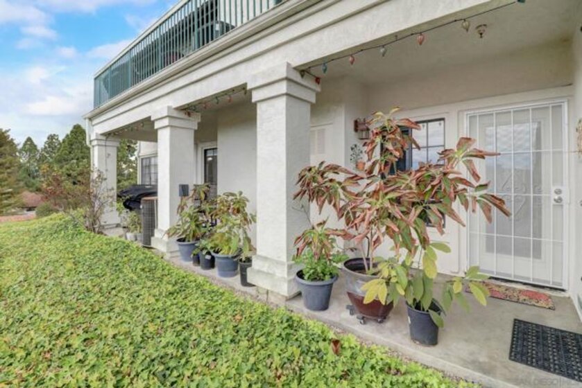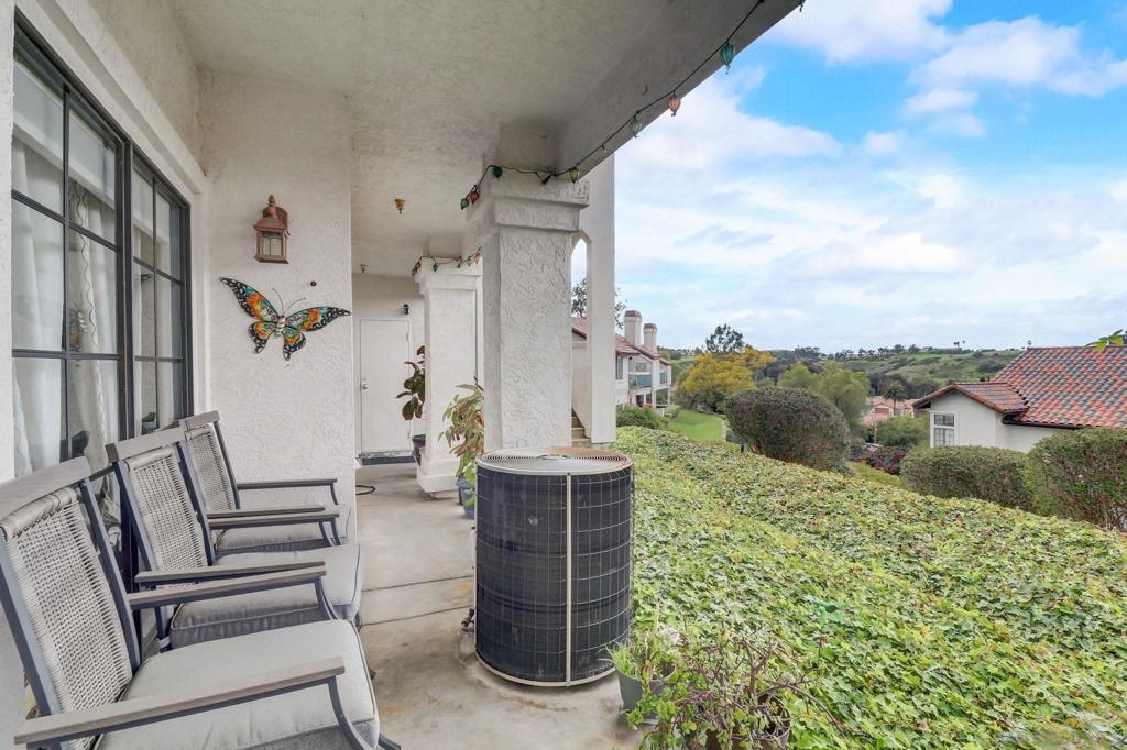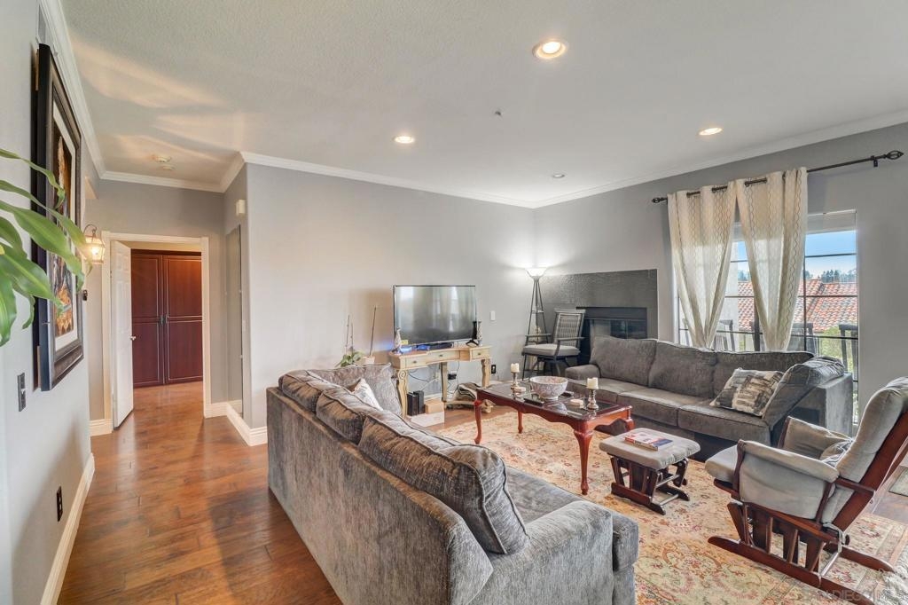 Experience this beautiful end unit in highly desirable Mira La Paz. Property features an upgraded Kitchen with quartz counter tops with mosaic tile backsplash, a pantry, stainless steel appliances and dining nook. The master bedroom offers lots of storage with its built in cabinets. The home also features Brazilian Cherry hardwood floors, remodeled bathrooms, gas fireplace, crown molding, a full size washer/dryer in the unit, and 2 car garage. French doors lead out to the patio where you can enjoy panoramic mountain and sunset views. Complex features gym, pool and hot tub, and also provides access to the Bernardo Heights Community Center with 3 pools, hot tubs, tennis courts, sport court, billiards room, and clubhouse. HOA dues includes cable, internet, water and trash. Part of the award winning Poway Unified School District. Close to golf courses, shops and restaurants. Welcome home!