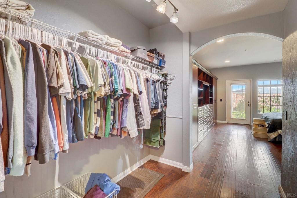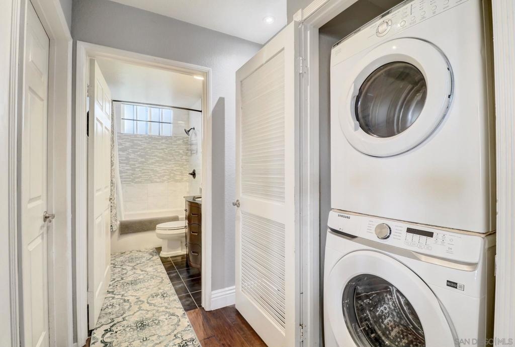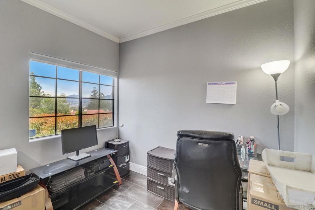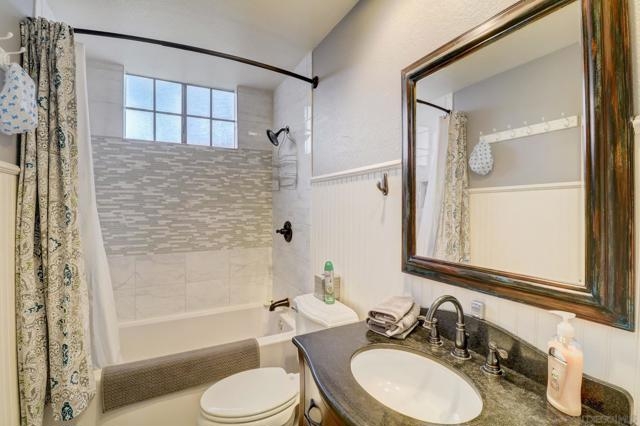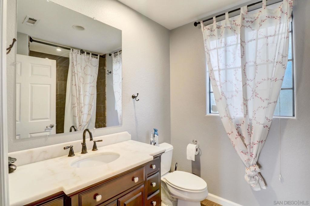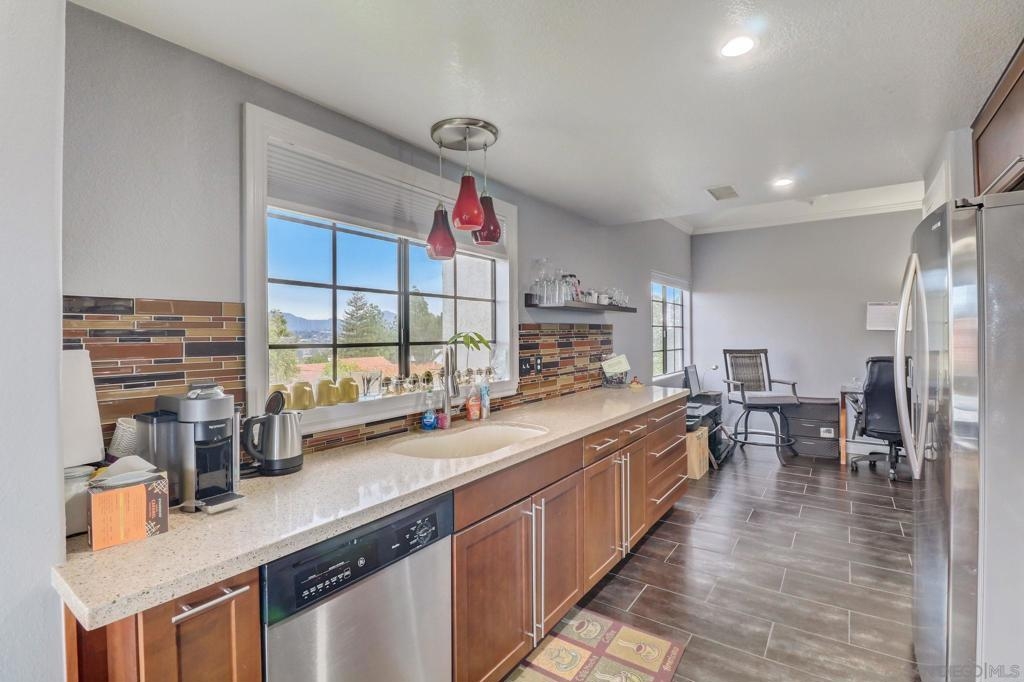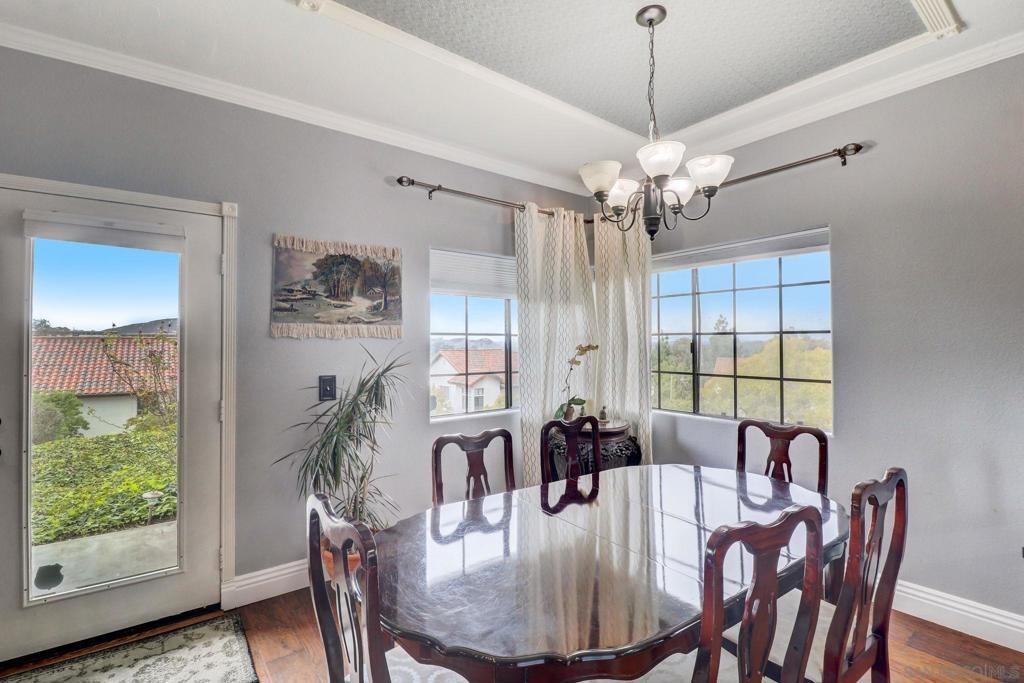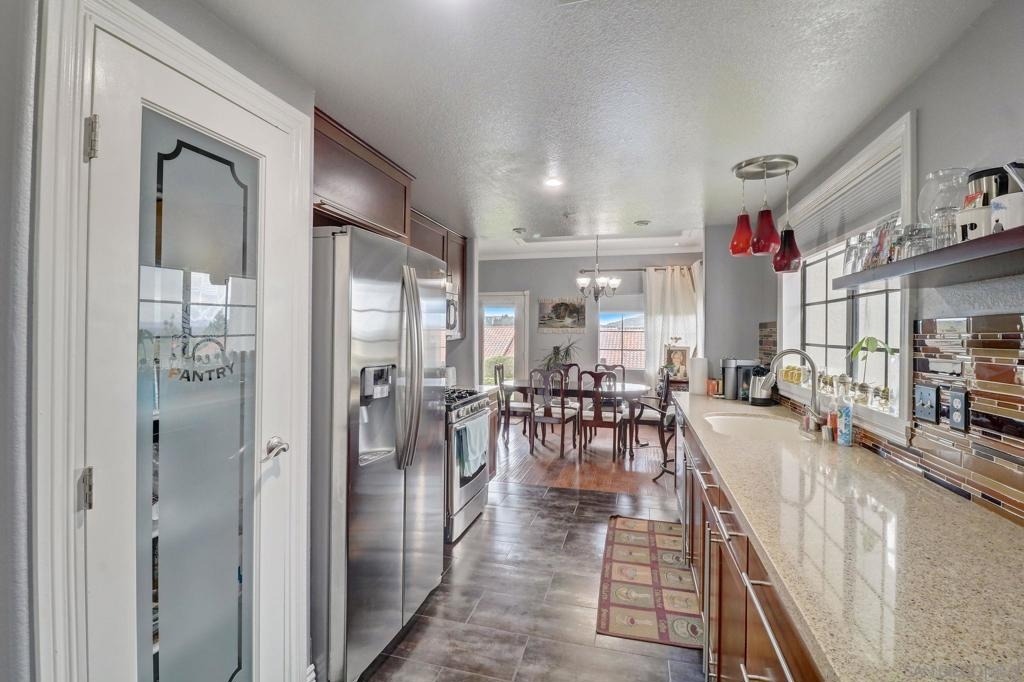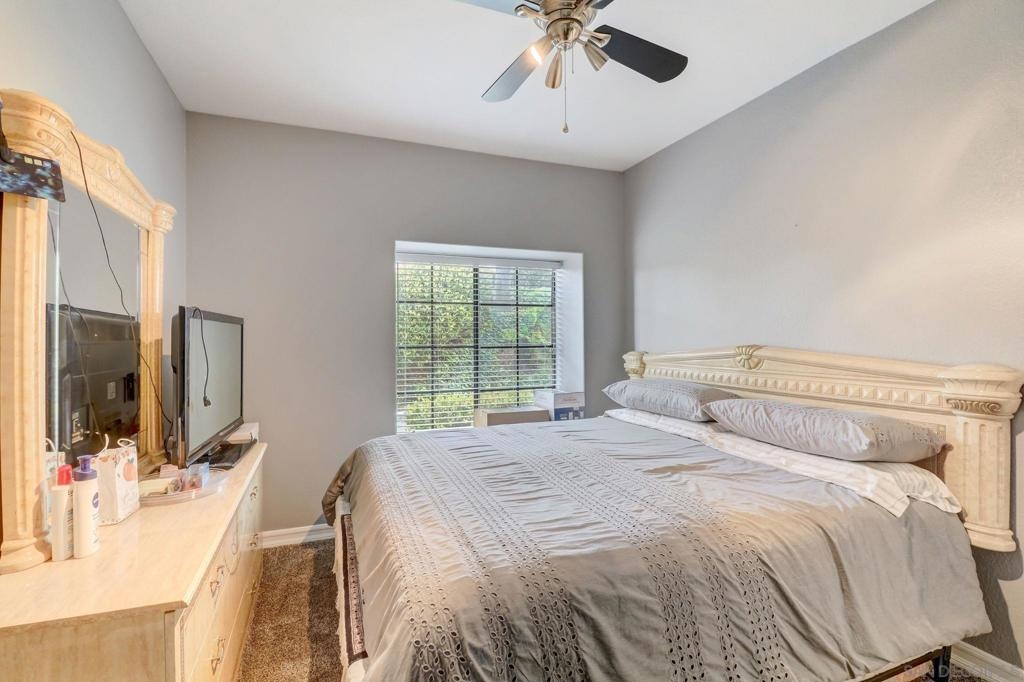 Experience this beautiful end unit in highly desirable Mira La Paz. Property features an upgraded Kitchen with quartz counter tops with mosaic tile backsplash, a pantry, stainless steel appliances and dining nook. The master bedroom offers lots of storage with its built in cabinets. The home also features Brazilian Cherry hardwood floors, remodeled bathrooms, gas fireplace, crown molding, a full size washer/dryer in the unit, and 2 car garage. French doors lead out to the patio where you can enjoy panoramic mountain and sunset views. Complex features gym, pool and hot tub, and also provides access to the Bernardo Heights Community Center with 3 pools, hot tubs, tennis courts, sport court, billiards room, and clubhouse. HOA dues includes cable, internet, water and trash. Part of the award winning Poway Unified School District. Close to golf courses, shops and restaurants. Welcome home!