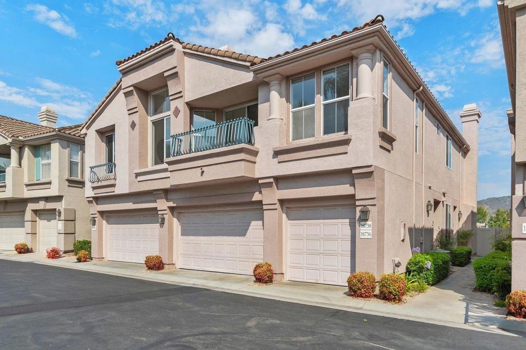 Magnificent Mira Lago 2 bedroom/2 bathroom condo in the highly desirable Bernardo Vista Del Lago gated community. Open concept floor plan with high vaulted ceilings and plenty of natural lighting throughout. Stunning modern upgrades throughout including luxury vinyl plank flooring and tile flooring in baths, interior designer paint, roller shades, granite kitchen countertops and subway tile backsplash with mosaic design, custom bathroom mirrors with surround lighting, and much more. 1 car attached garage with washer and dryer and a second assigned parking space just steps away. Complex features resort style amenities including 2 heated pools, spa, clubhouse, fitness room, tennis courts, basketball courts, playground, and walking paths. Located in the award winning and highly acclaimed Poway Unified School district and nearby much shopping, restaurants, freeways, and more. This is a must see!