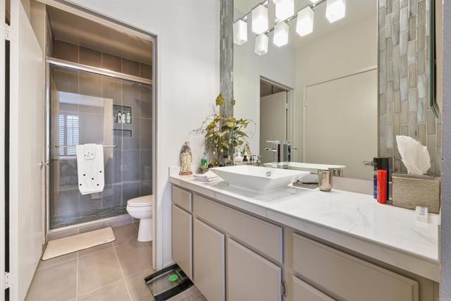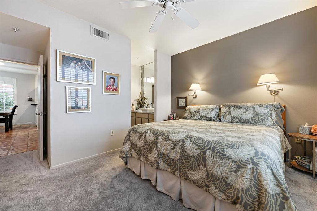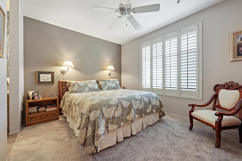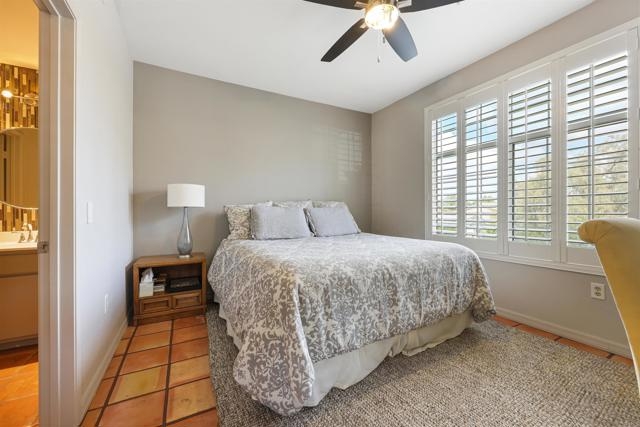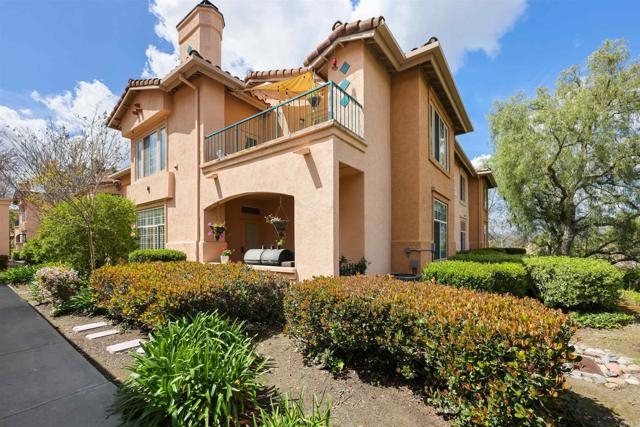 Welcome Home! This Rancho Bernado beauty has everything you want. This is truly a move in ready home! You can feel the love that was put into this condo with the various updates and customizations. Walk in and the first thing you'll notice is the custom Spanish tile through out the home.You will also notice the new plantation style shutters making this condo feel like a vila and every day is a dream. Along with these little touches you'll enjoy the following all brand items: AC, dishwasher, ceiling fan, light fixtures and carpet in the primary room. The primary bathroom has also been fully updated as well as the walk in closet. This is a ground level, corner unit sharing only two walls with your neighbors making it feel more spacious. If you're more of an outdoor person take a walk around this gated community and bring your pet to enjoy the many pet friendly areas. Or perhaps enjoy a lap or two in the pool. The possibilities are endless in this dream.