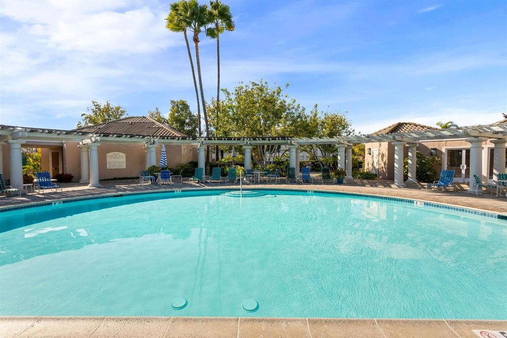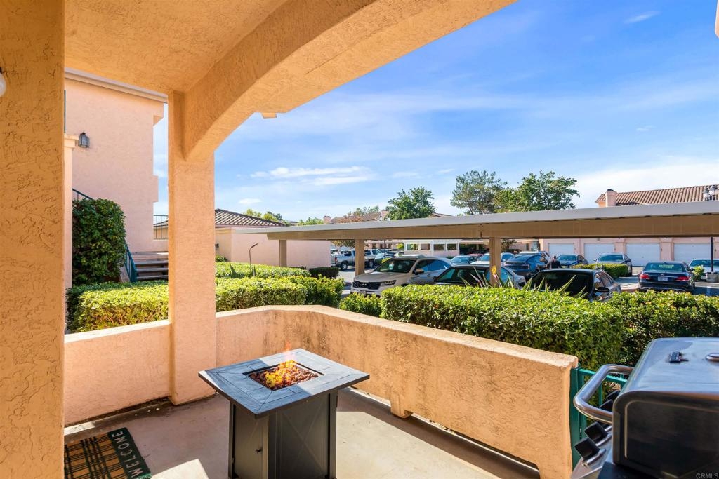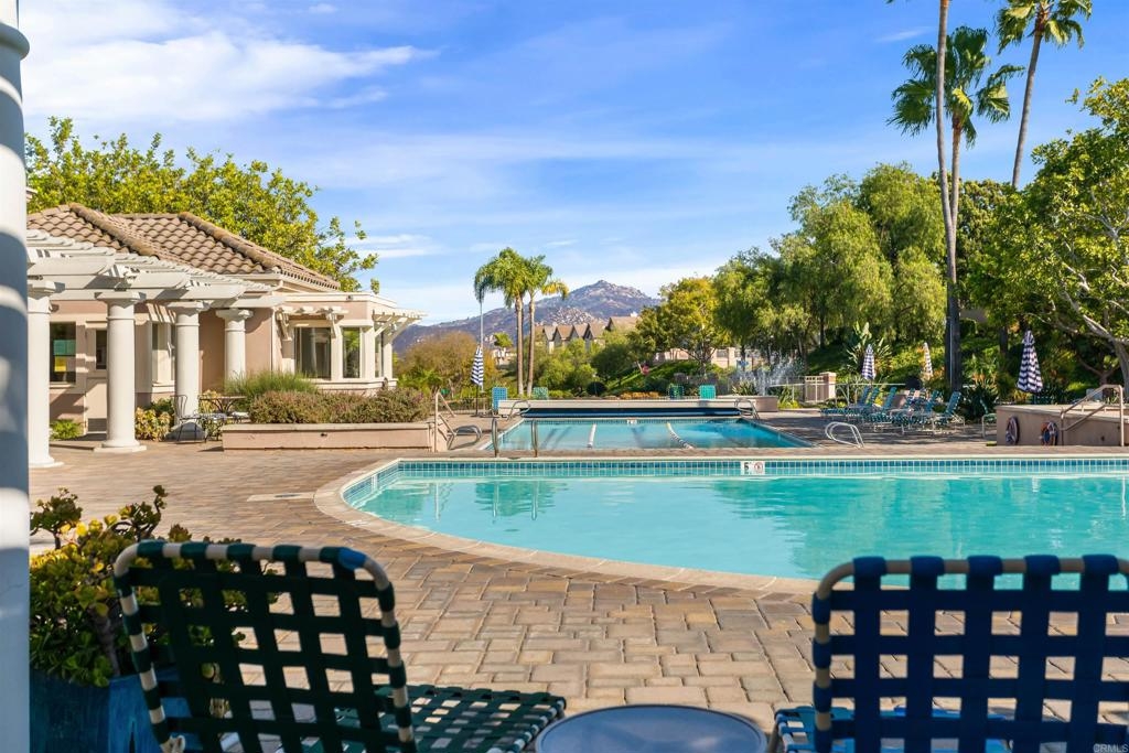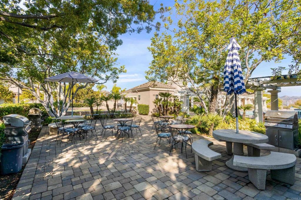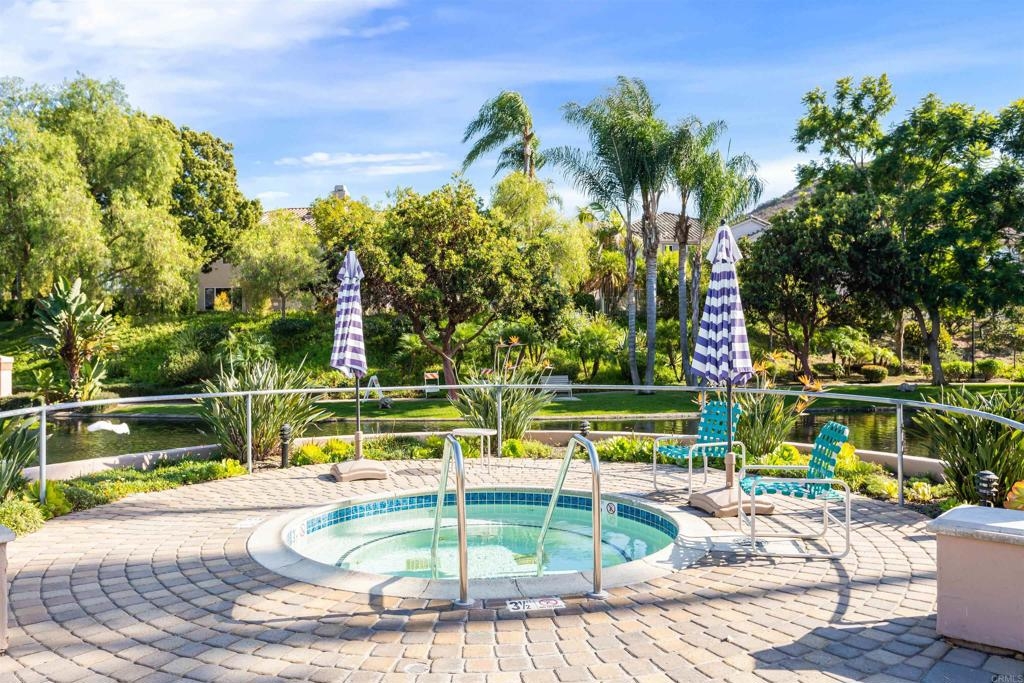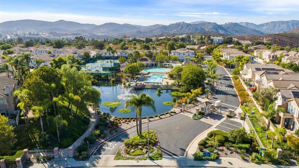 Fantastic open floorplan located in the popular Bernardo Vista Del Lago guard gated community. Modern upgrades throughout include luxury vinyl plank flooring, new paint, new appliances and 4 inch baseboards in this sunlit corner unit. Kitchen has new quartz counters, newer appliances, custom painted cabinets and new hardware. Large bathroom highlighted by new vinyl floor tile and new gleaming quartz slab countertops. Plenty of storage and full sized stackable washer and dryer. Convenient ground floor unit with spacious lush patio and mature landscaping. Complex features gorgeous resort style amenities including 3 pools, spas, clubhouse, fitness room, EV chargers, game room, 4 tennis courts, basketball courts, playground, feature pond with water feature and walking paths. Located in the highly acclaimed Poway Unified School. easy commuter access to I-15, shopping schools, restaurants and downtown.