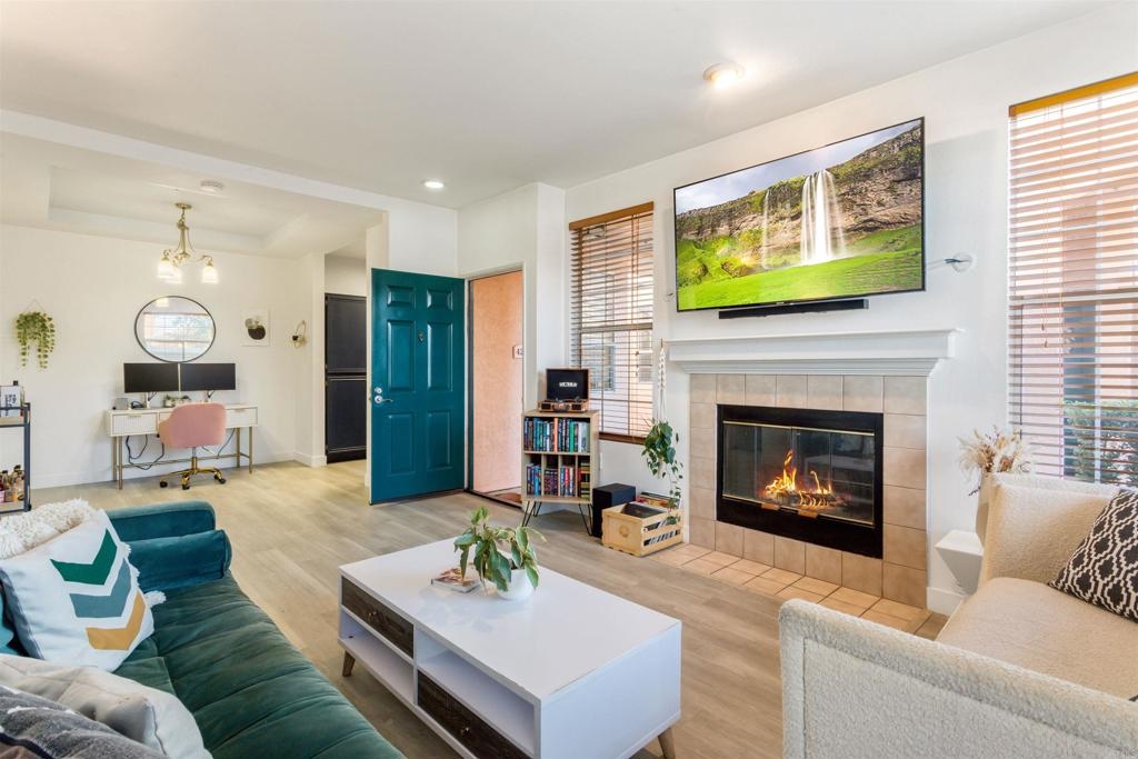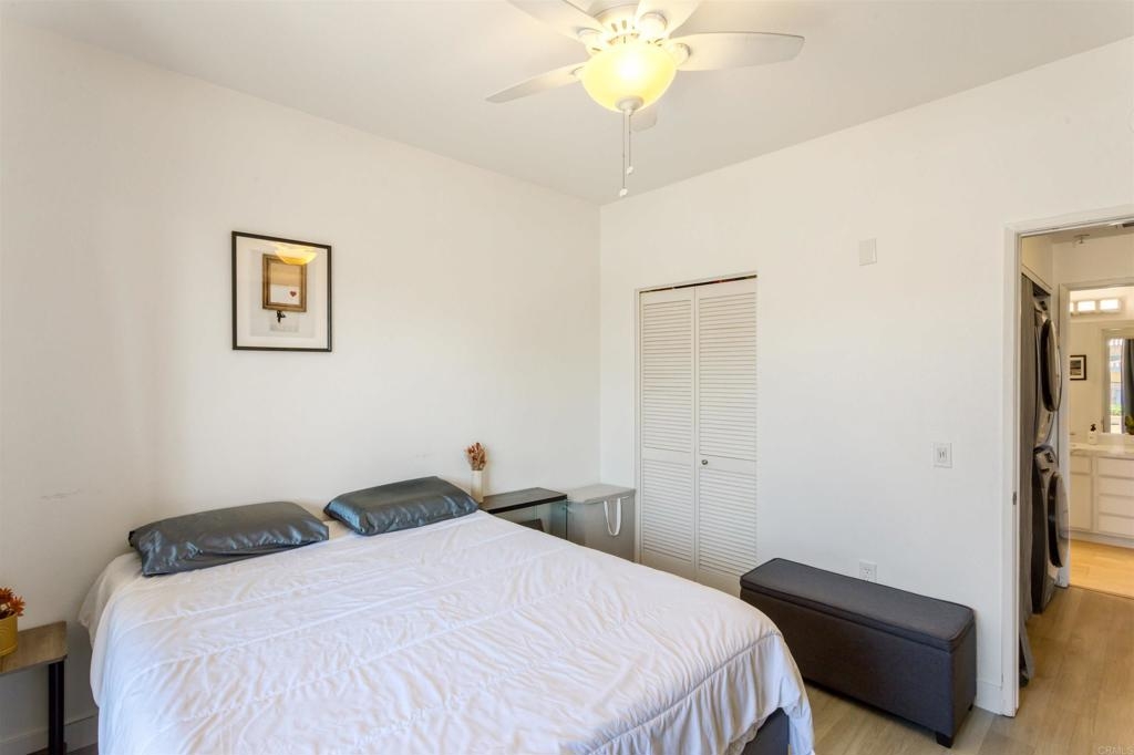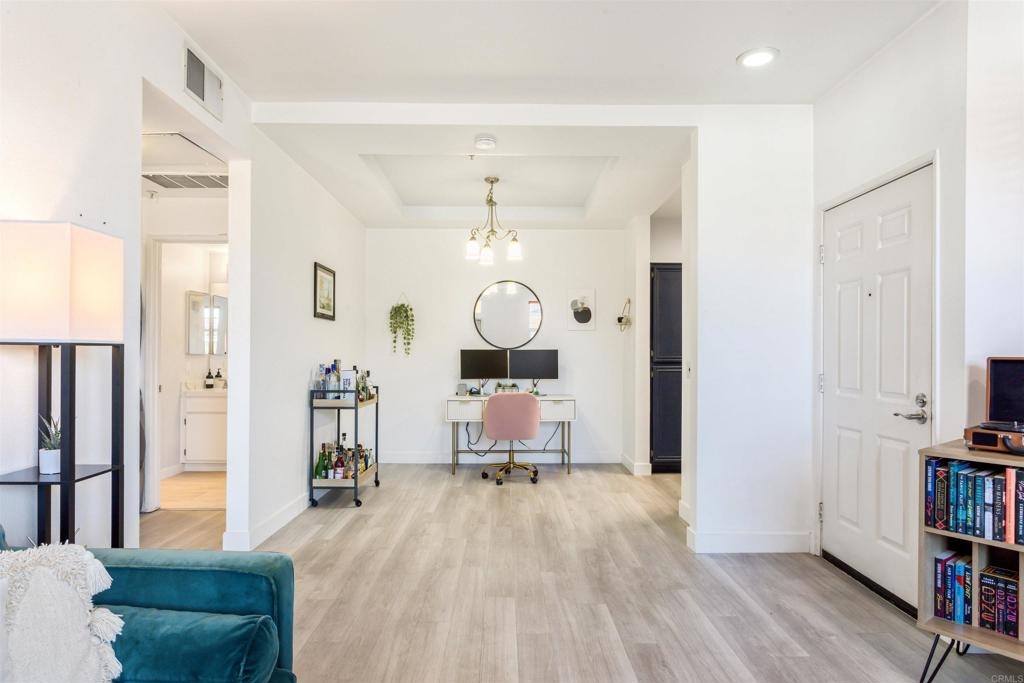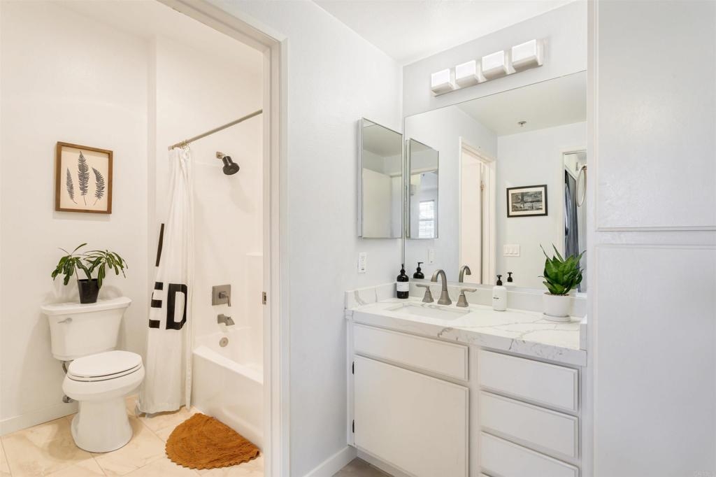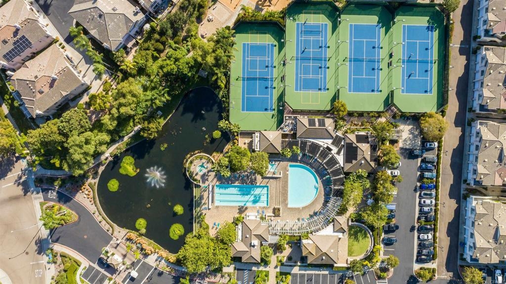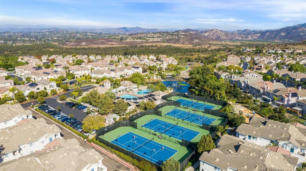 Fantastic open floorplan located in the popular Bernardo Vista Del Lago guard gated community. Modern upgrades throughout include luxury vinyl plank flooring, new paint, new appliances and 4 inch baseboards in this sunlit corner unit. Kitchen has new quartz counters, newer appliances, custom painted cabinets and new hardware. Large bathroom highlighted by new vinyl floor tile and new gleaming quartz slab countertops. Plenty of storage and full sized stackable washer and dryer. Convenient ground floor unit with spacious lush patio and mature landscaping. Complex features gorgeous resort style amenities including 3 pools, spas, clubhouse, fitness room, EV chargers, game room, 4 tennis courts, basketball courts, playground, feature pond with water feature and walking paths. Located in the highly acclaimed Poway Unified School. easy commuter access to I-15, shopping schools, restaurants and downtown.
