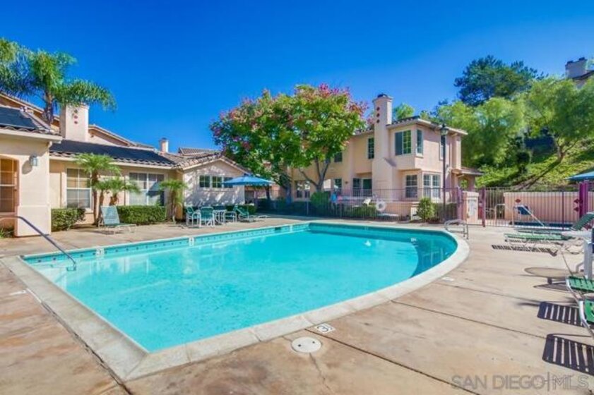 Experience resort-style living in the desirable gated community of Morada at Bernardo Vista Del Lago . This beautifully updated downstairs 1-bedroom, 1-bath, Rare 1-car garage home welcomes you with soaring ceilings, abundant natural light, and elegant luxury wood flooring throughout the living and dining areas. The spacious bedroom features a walk-in closet and private patio access, while the living room also opens to a serene outdoor space complete with a large storage closet. A full-sized washer and dryer are conveniently tucked in the hallway, and the kitchen boasts brand-new appliances—all included. Unique to this home is a private garage with extra storage, in addition to ample guest parking. Community amenities include two sparkling pools, a spa, tennis courts, a fitness center, a clubhouse, and a billiards room. Ideally located just off I-15—minutes from shopping, dining, Westfield North County Mall, and the trails of Lake Hodges. HOA covers water, trash, exterior maintenance, and access to all amenities. A turnkey opportunity in one of San Diego’s most sought-after neighborhoods!