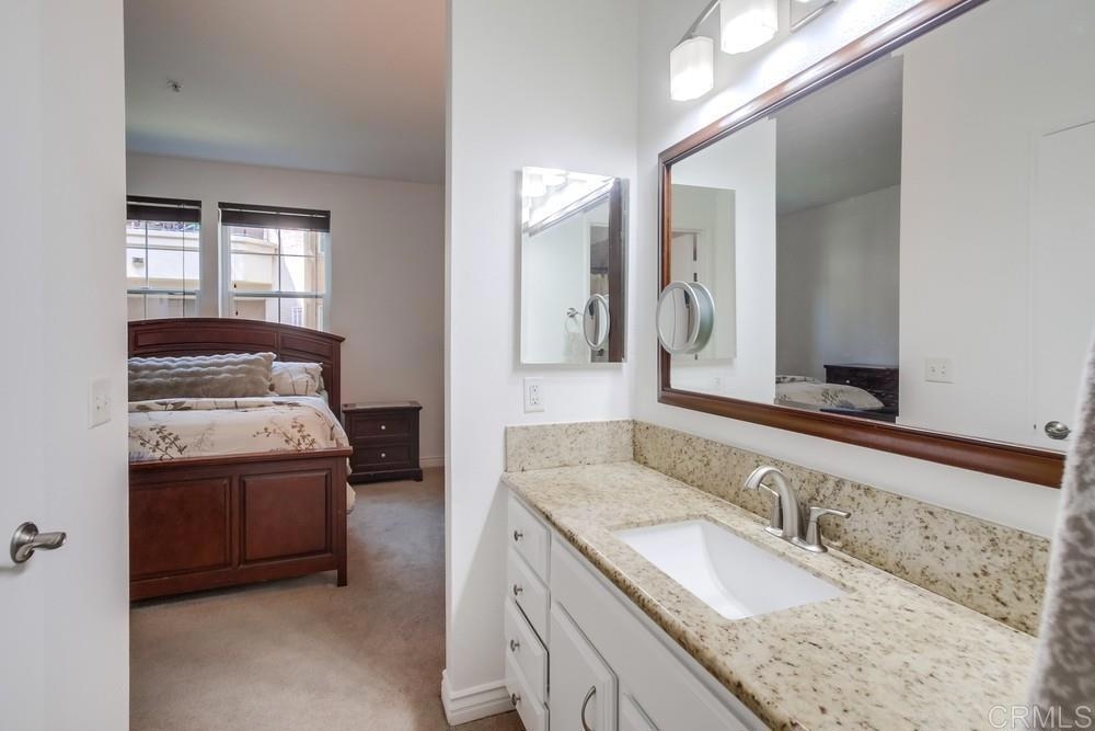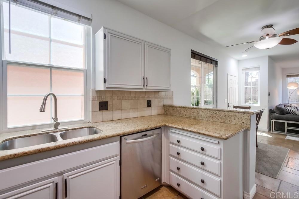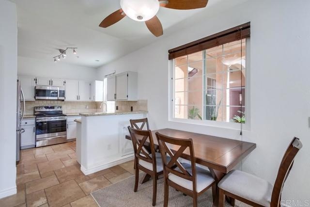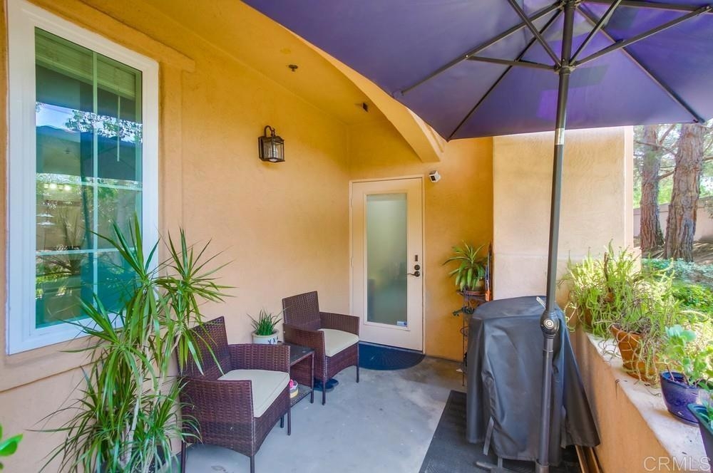 NEW PRICE! BRING AN OFFER! Tremendous opportunity with VA assumable loan at 3.6%! Enjoy resort style living with all the amenities in this beautifully updated, private end unit ground floor condo tucked in a park like setting. Located in the coveted gated community of Morada in Bernardo Vista Del Lago. Rarely available single story floorplan with generously sized dual master suites and open concept living area. Freshly painted interior and brand new dual pane windows throughout offer plentiful natural light and great insulation. Large living room with gorgeous travertine floors and lovely fireplace. Updated kitchen with granite countertops and custom backsplash with stainless appliances. Upgraded refrigerator, washer and dryer 2024. Lovely patio with storage area off of living room is perfect for BBQing, container gardening, and relaxing. Residents can enjoy multiple pools and spas, community clubhouse with billiards, exercise room, tennis and pickleball courts, a basketball court, dog park, playground area, and a large garden area complete with pond and fountain. Community also features EV charging stations. There is a 24-hour guarded entrance for an added layer of security. Located in the award-winning Poway Unified School District and just minutes from Lake Hodges, hiking trails, golf courses, wineries, and top-rated schools, this property offers the best of Rancho Bernardo. Just two minutes from Interstate 15, this community is ideally situated for an easy commute. HOA includes water, sewer, trash, and amenities. Community is VA and Fannie Mae approved. Definitely a must see!