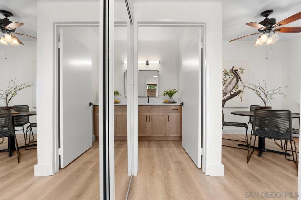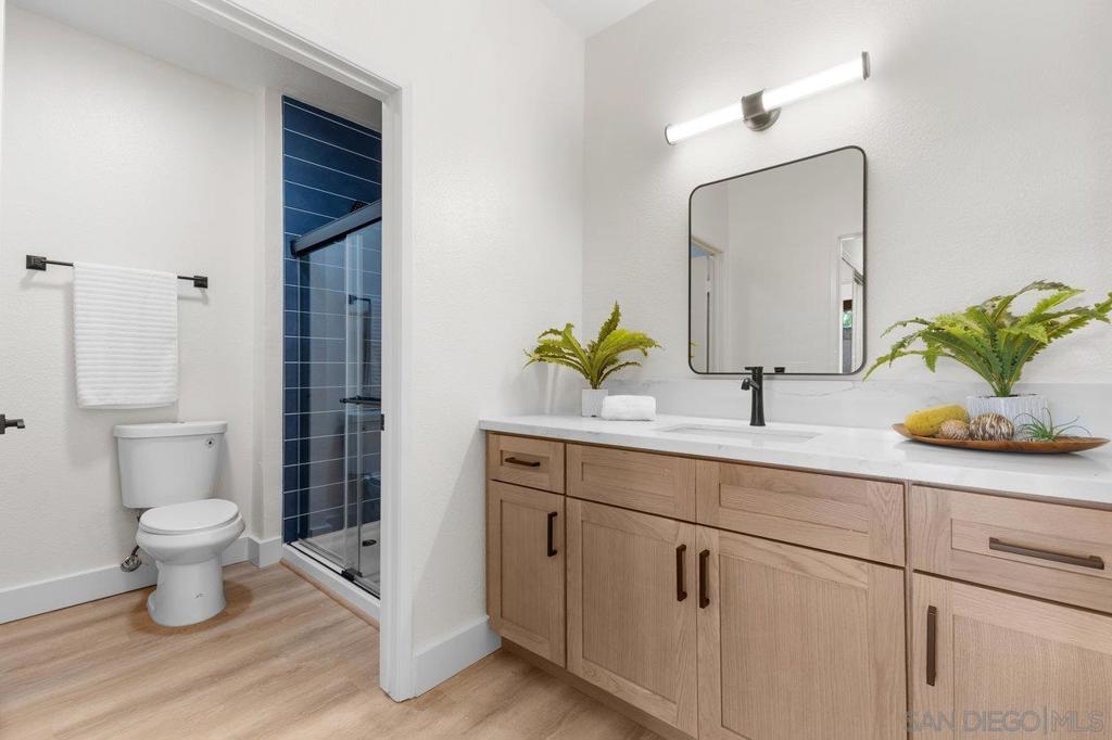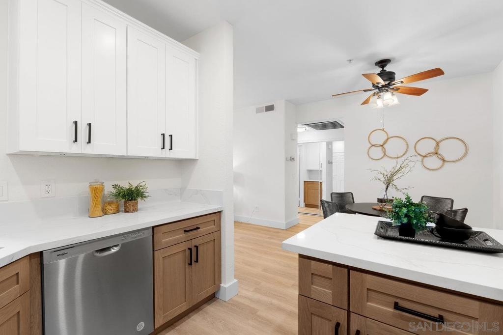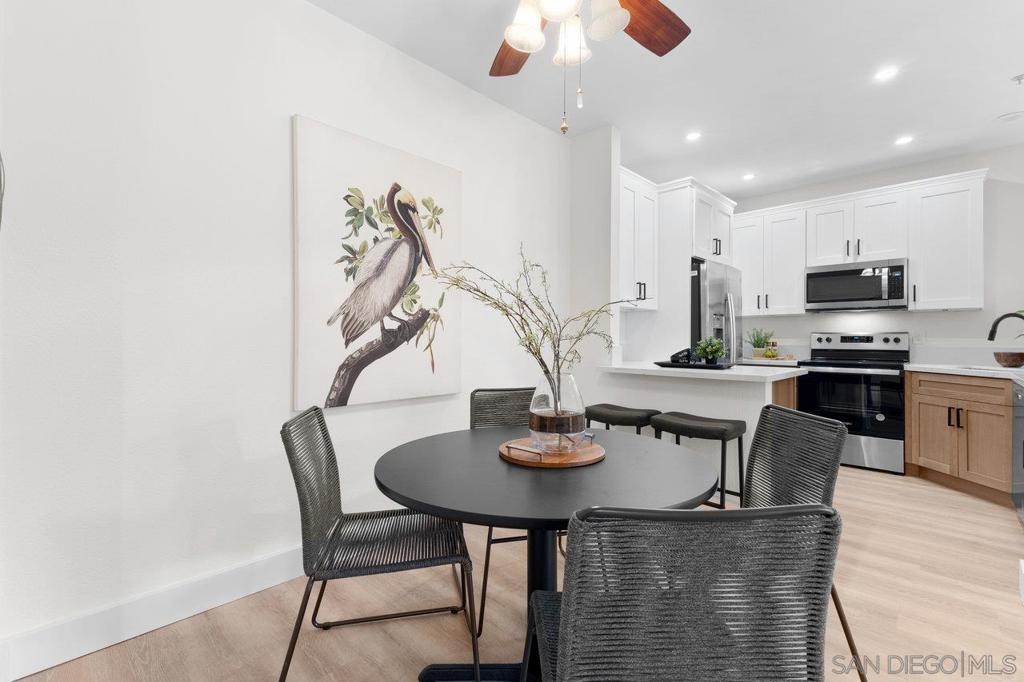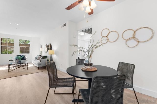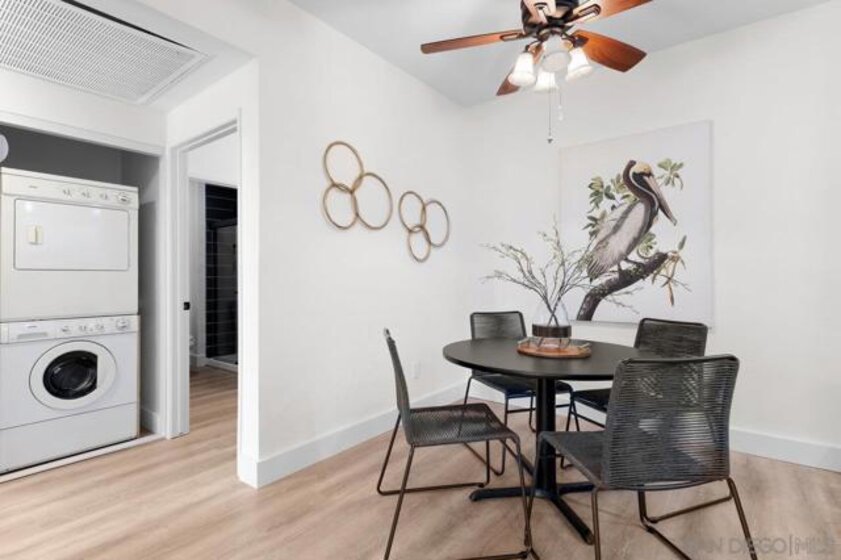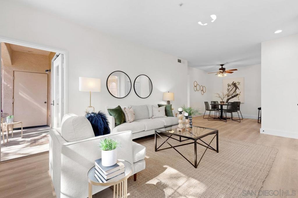 Enjoy resort-style living in beautiful home located in the desirable gated community of Morada at Bernardo Vista del Lago. Downstairs unit has expansive vaulted ceilings and tons of natural light and PARKING SPACE! Gorgeous luxury vinyl wood floors throughout the living room, dining area & spacious bedroom with walk-in closet. Access your private patio from the living room or your bedroom, and large storage closet on patio. In the hallway you'll find a full sized washer & dryer, and they convey along with all new appliances. Home was just renovated. Home includes a private garage with extra space for storage, where many only have an assigned spot in the carport. Additionally there is ample guest parking. The amenities are stupendous with 2 pools, tennis courts, an exercise room, billiard room & clubhouse. Conveniently located just off I-15, and 1 exit from the Westfield Escondido Mall with great restaurants. Explore nearby biking & hiking trails of Lake Hodges. HOA includes water & trash, exterior maintenance & all amenities.