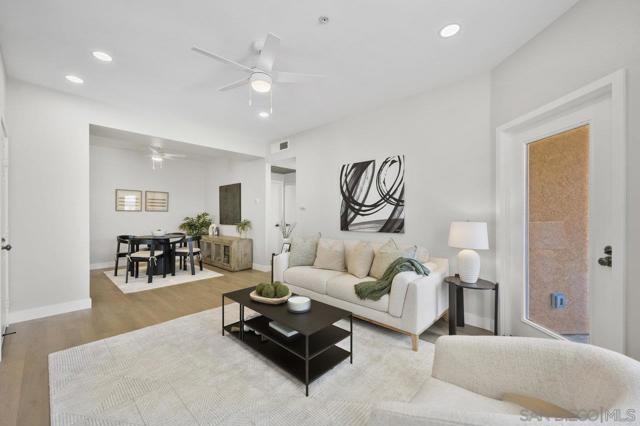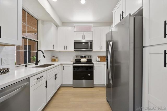 Value Range $450,000-$475,000. Welcome to this beautifully upgraded first floor unit in the prestigious Morada Complex. This stunning home boasts luxury vinyl plank flooring and baseboards throughout, dual pane windows, and a fireplace in the living room. The living room also features a ceiling fan and recessed lighting, creating a bright and airy space. See the supplement for additional features. Welcome to this beautifully upgraded first floor unit in the prestigious Morada Complex. This stunning home boasts new luxury vinyl plank flooring and new baseboards throughout, dual pane windows, and a fireplace in the living room. The living room also features a ceiling fan and recessed lighting, creating a bright and airy space. The dining room is equipped with a ceiling fan and offers ample space for entertaining. The highly upgraded kitchen is a chef's dream, featuring custom white shaker cabinets with self closing cabinets and drawers, all brand new Whirlpool appliances, new, beautiful quartz countertops with tile backsplash and new plumbing fixtures with a new deep kitchen sink. The spacious bedroom includes a huge walk-in closet with built-in shelves, recessed lighting, and a sliding door that opens to a private patio. The bathroom is equally impressive with beautiful tile floors, a 9ft high custom tile shower enclosure with a luxurious rainfall showerhead and custom shower door, a lighted mirror and semi custom white shaker vanity with tall cabinet and quartz countertop and new plumbing fixtures. Additional features of this unit include a private patio area, and a one-car parking garage. The Vista Del Lago community offers an array of amenities, including four tennis courts, pools, spas, an exercise room, a banquet facility, and EV charging stations in the Morada parking area. This home is perfect for those seeking luxury, convenience, and a vibrant community. Don't miss out on this exceptional opportunity!