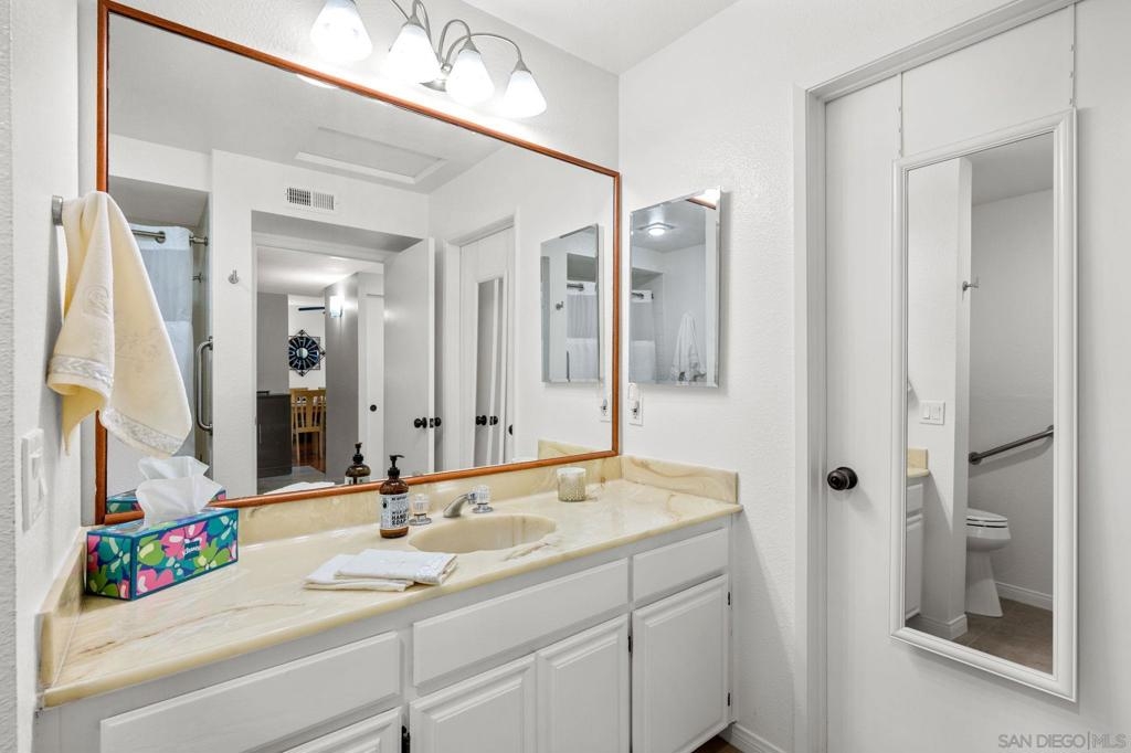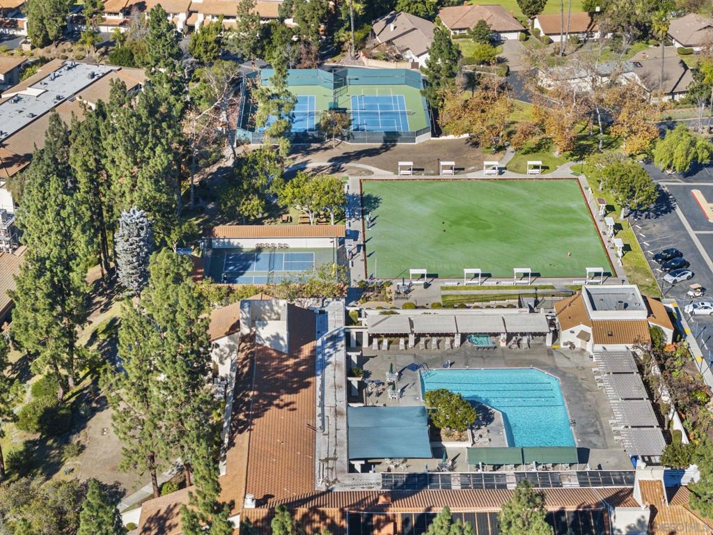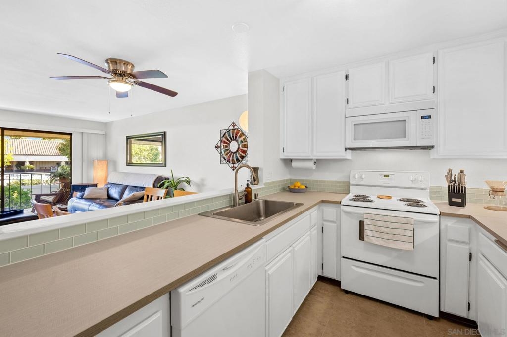Meticulously maintained, turnkey condo in the Oaks North Village 55+ community. Exceptionally spacious one bedroom. Recent upgrades include: interior paint, ceiling fans, updated kitchen countertops and glass tile backsplash, oversized kitchen sink and faucet, added bathroom cabinetry, updated light switches, outlets, and vent covers. OVERSIZED garage is approximately 29 feet long and 10 1/2 feet wide with ample room to park a car, plus a golf cart and have additional room for storage. This top floor, east-facing unit provides beautiful morning sunshine and a cool, quiet, and private environment. Enjoy a large private balcony with a view of tall pine trees. The building is access-controlled and features an elevator for those that wish to avoid the stairs. Ample open visitor parking. Just 25 minutes to the beach, 10 minutes to two local performing arts centers and walking distance to the fabulous master community center featuring: pickleball, tennis, pool, spa, sauna, fitness center, lawn bowling, ceramics, woodshop, art, billiards, ping-pong, library, hiking club and the Oaks North golf 27-hole course. Homeowner fees include high-speed Internet, premium cable TV, water, sewer, trash, roof, and exterior building maintenance and common landscape maintenance as well as master insurance policy. Come see it today!