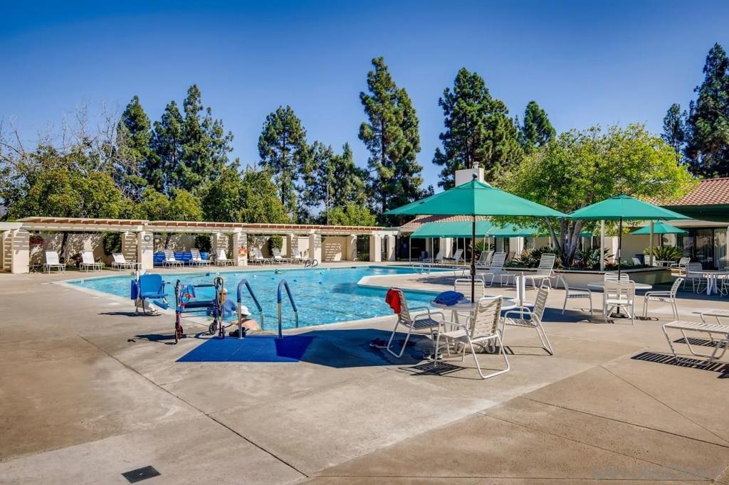 This GEM is an updated single-level unit located on the ground floor, bathed in natural sunlight with a private patio and view of the greenbelt. Hardwood floors in living room, new Luxury Vinyl Plank flooring in hallways and master, Retro Anlin Bayview bronze dual pane sliders and window (2021), and interior laundry; LG stackable washer & dryer (2019). Welcome to Oaks North, a 55+ community situated in scenic Rancho Bernardo! A resort-like development designed with something for everyone. Amenities include; gym, swimming pools, tennis courts, lawn bowling, pickleball, and many other activities at the Oaks North Community Center. Other nearby activities include, golf, hiking, fishing, shopping & dining. Equipment: Dryer, Range/Oven, Washer Other Fees Type: , Sewer: Sewer Connected Topography: LL