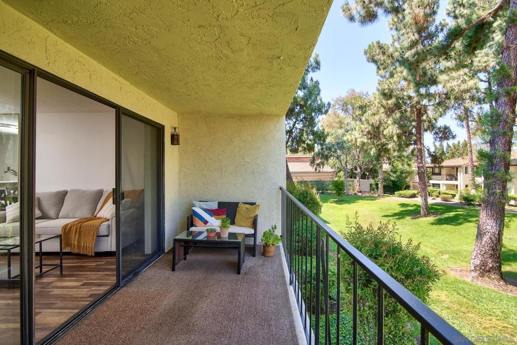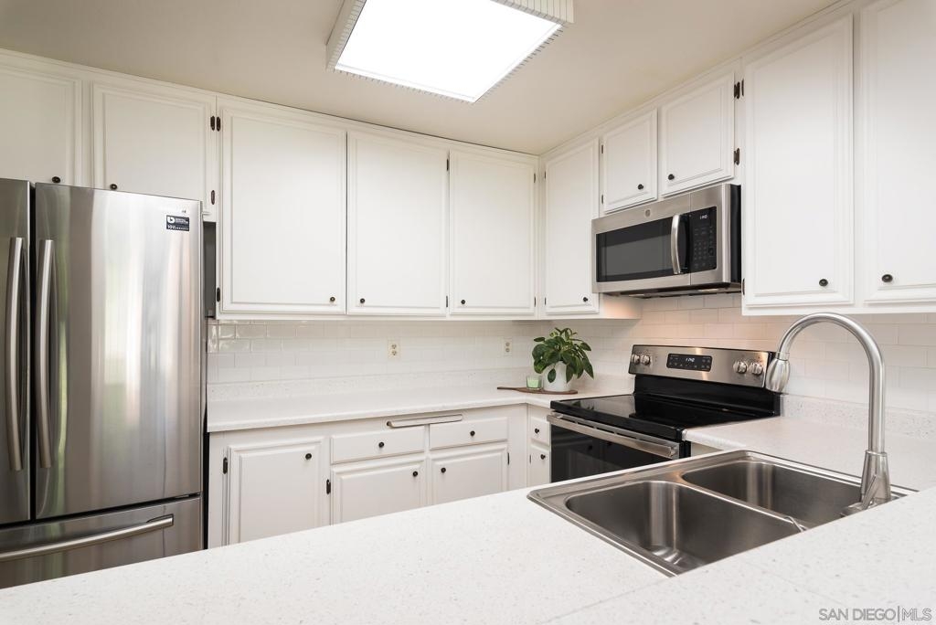 Welcome to Oaks North Village, a highly desirable resort-style 55+ community in Rancho Bernardo. This charming single level 1BR/1BA condo is on the main level and offers an open-concept design. The condo includes washer/dryer and refrigerator. With a secure and gated entrance, you will have easy access to the unit with no need for stairs or elevator. The balcony gives view to the lush greenbelt for a serene and relaxing outdoor space. The condo includes a spacious single car garage. HOA fee includes trash and water. Opportunities to meet neighbors abound with clubs, events, and activities including gym access, tennis, pickleball, lawn bowling, billiards, ping pong and many more. Become a local and enjoy the Rancho Bernardo Winery, weekly farmers market, restaurants and grocery stores, all in close proximity. A beautiful condo for you to call your luxury home.