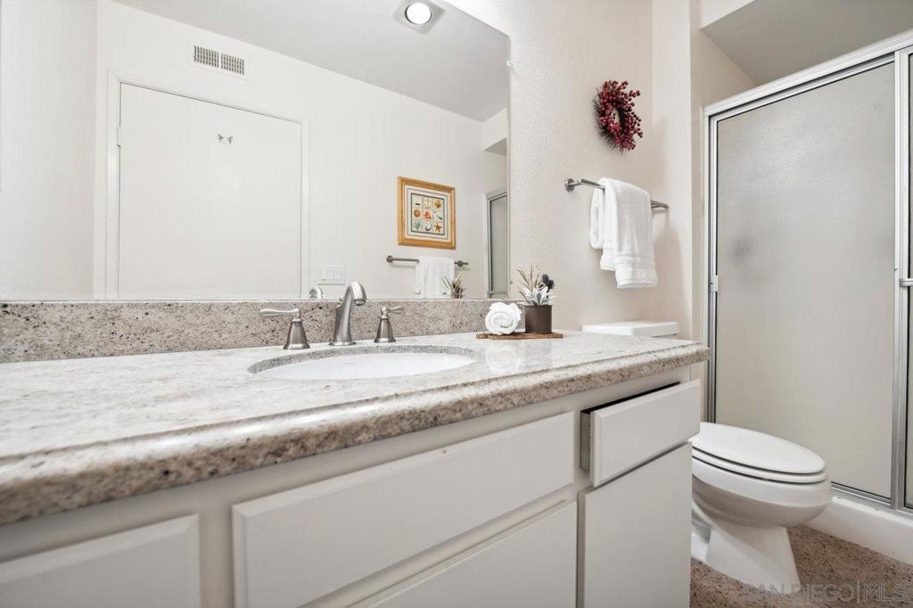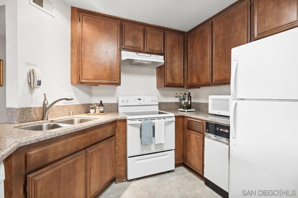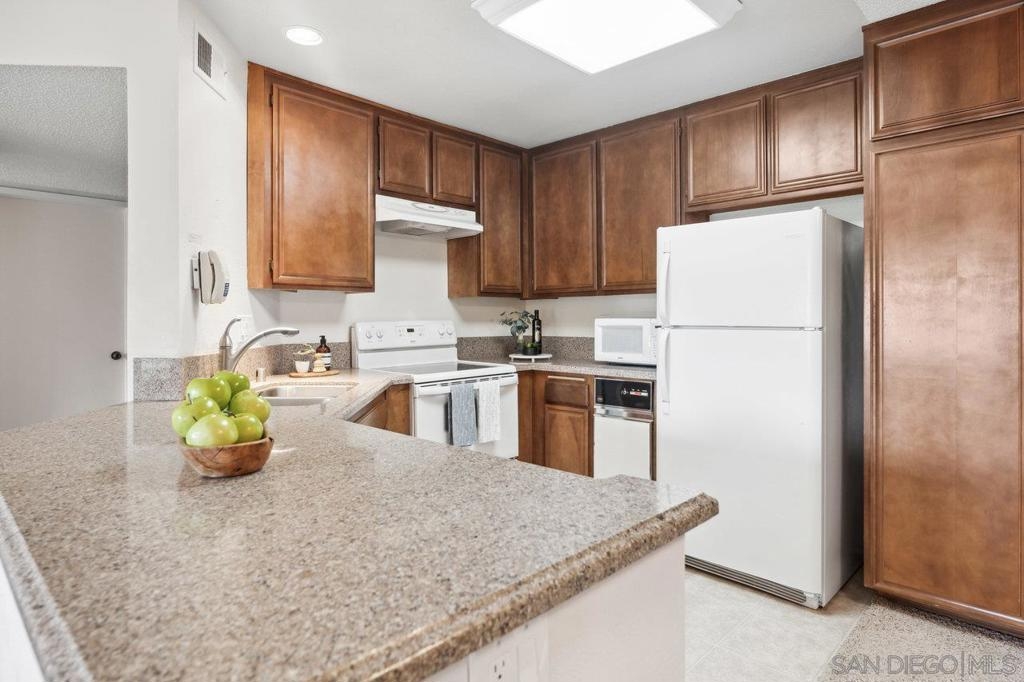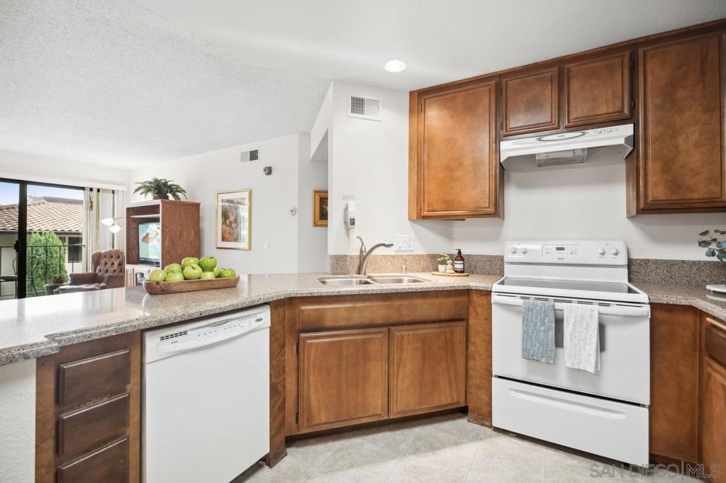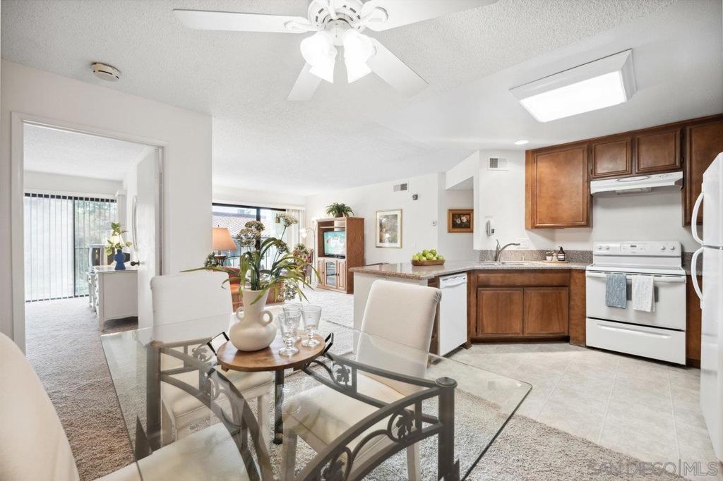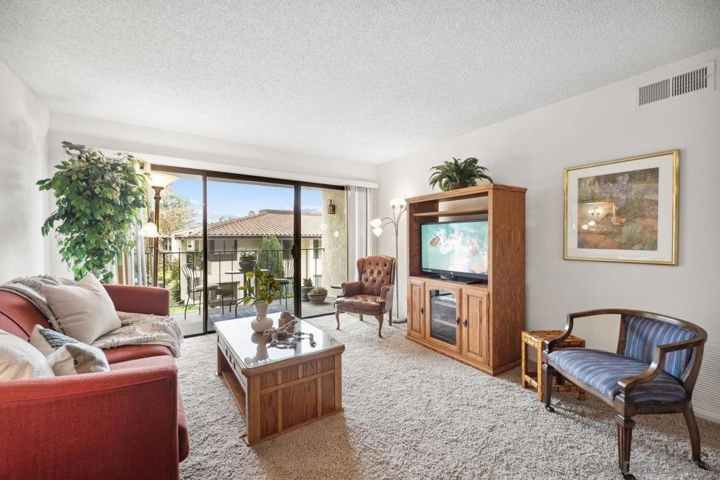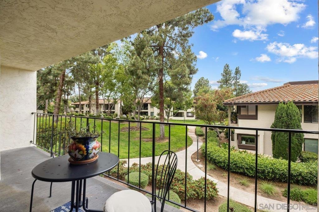 Welcome to the esteemed Rancho Bernardo 55+ community, where resort-style living intertwines with serenity and comfort, offering a truly luxurious lifestyle. You'll feel a sense of exclusivity and utmost security when you step inside the gated entrance. As an end unit with an entrance on the main level, you'll enjoy added privacy and easy accessibility. Open floor plan blended with the natural light creates an atmosphere that is both welcoming and comforting. Kitchen features wood cabinetry, upgraded countertops and opens up to the dining space, complete with built-ins, and extends further into the living room, ensuring a seamless flow throughout the home. The spacious balcony awaits your presence, inviting you to dine outdoors while relishing the awe-inspiring views of the lush greenery that surrounds you. Imagine looking out onto a picturesque courtyard or a breathtaking greenbelt, providing a tranquil escape from the world outside. Additional features include dedicated laundry space and oversized garage that easily accommodates both your car and golf cart. The community offers an extensive range of amenities, dive into the refreshing pool, relax in the spa, play a match on the tennis courts or pickleball courts, stay active in the gym, indulge in some quiet reading at the library, or explore your creative side in the ceramics and woodworking areas. This complete resort experience is right at your doorstep, allowing you to live life to the fullest without ever leaving your community. With a short drive, you'll find yourself surrounded by an array of shopping options... diverse culinary delights, and the renowned Bernardo Winery, providing endless opportunities for entertainment and exploration.