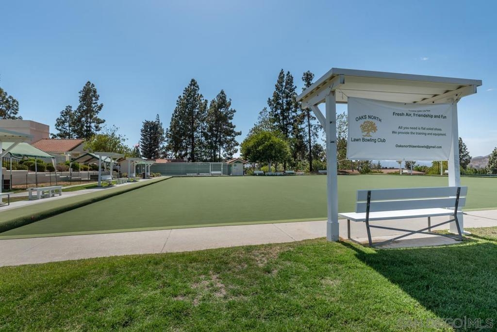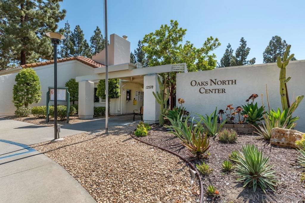 Stunning 55+ Oaks North Village 1st floor end unit. Newer laminate floors, updated kitchen w/ granite counters/ newer appliances, beautiful spa-like bath remodels w/ quartz counters/fixtures. Spacious master suite w/ Berber-style carpet includes closet stack W/D, plenty of storage. Spare bedroom w/ murphy bed great for a home office. Newer dual pane windows/ oversized 1 car garage w/ storage/workshop, and patio space overlooking park-like greenbelt perfect for relaxing in the serene environment. See supp. The vibrant 55+ Oaks North Village community is one of the most coveted retirement developments in Rancho Bernardo. Incredible amenities include the community Oaks North Center with library, pool and spa, tennis courts, pickleball courts, lawn bowling, exercise room, locker rooms, meeting rooms, billard room, wood shop, art/sewing room, a large multi-use auditorium with kitchen and gorgeous landscaping grounds, open space and beautiful grounds throughout. Plenty of excellent golf course options abound throughout Rancho Bernardo for the golf enthusiast and local wineries nearby for wine lovers. Unit 123 is an excellent location on the end of the building and on the first level allowing for a ton of additional natural light to enter the space, while offering a great view across the greenbelt just outside the private patio. Relax and enjoy the peaceful and quiet surroundings while having a ton of activities and amenities to enjoy year-round. This residence has been beautifully updated and maintained offering a fresh, neutral color palette with upgrades in all the right places. The kitchen was remodeled to include new granite countertops, upgraded appliances and fixtures, and modern stainless steel hardware. Newer laminate floors extend throughout the living spaces of the home and into the bathrooms. Large living space with access to your private patio and views out into the greenbelt add to the appeal. The master suite has Berber-style carpeting, along with a spa-like master bathroom complete with newer cabinetry, quartz counters, new fixtures and lighting and convenient full size stacked washer and dryer in the closet. The spare bedroom has a murphy bed which easily folds up into a workstation perfect for a work at home option and guest room combined. The hall bathroom was also tastefully updated to match the rest of the home so the colors and materials flow seamlessly. There is also a large oversized 1 car garage with an additional 9X9 foot workshop at the rear perfect for tinkering on projects or additional storage. Do not lift a finger and just move right into this turn-key opportunity! Complex Features: ,,,,,,, Equipment: Dryer, Range/Oven, Washer Other Fees Type: , Sewer: Sewer Connected Topography: LL,GSL Frontage: Open Space