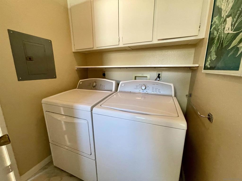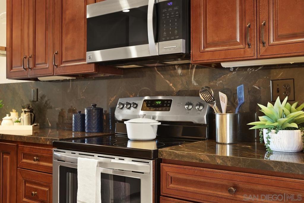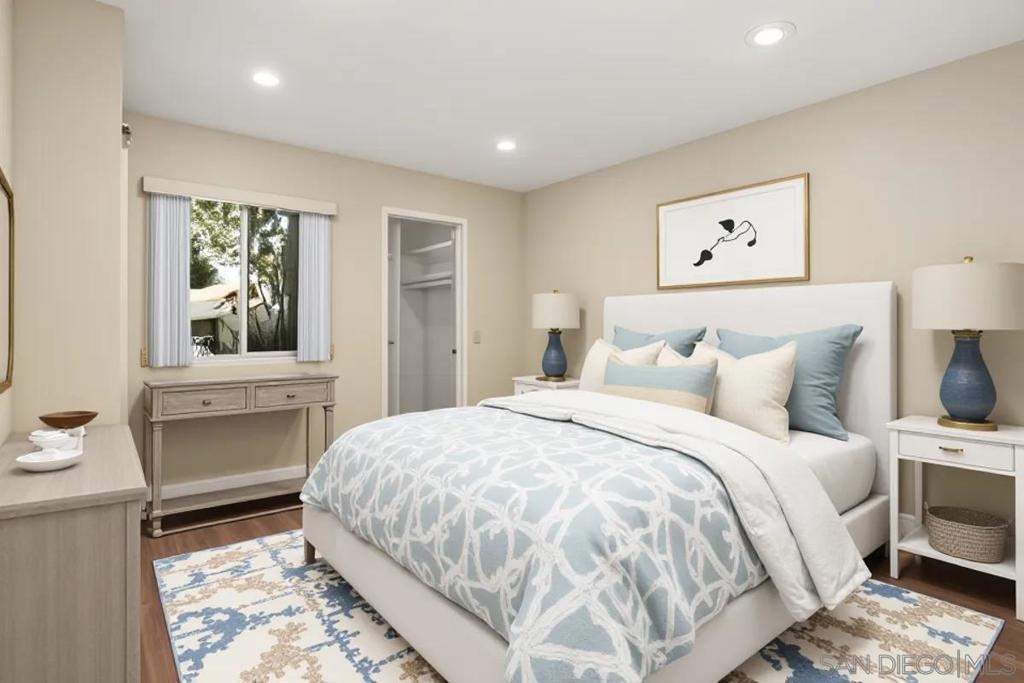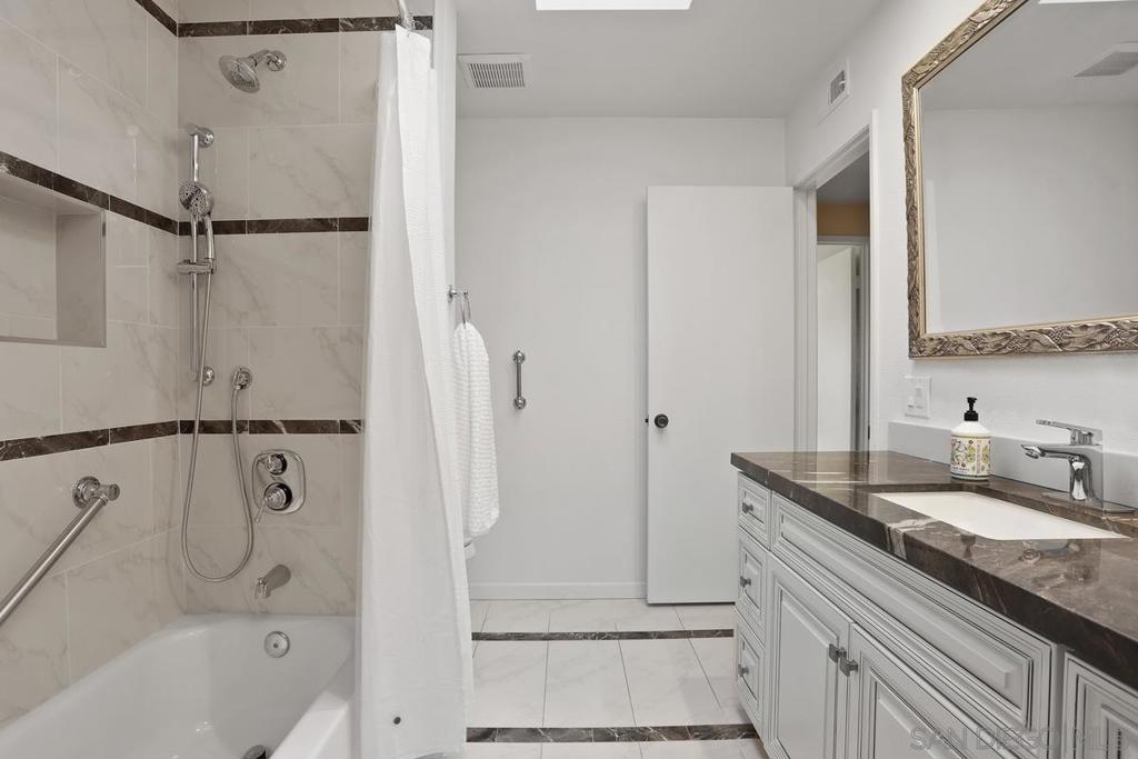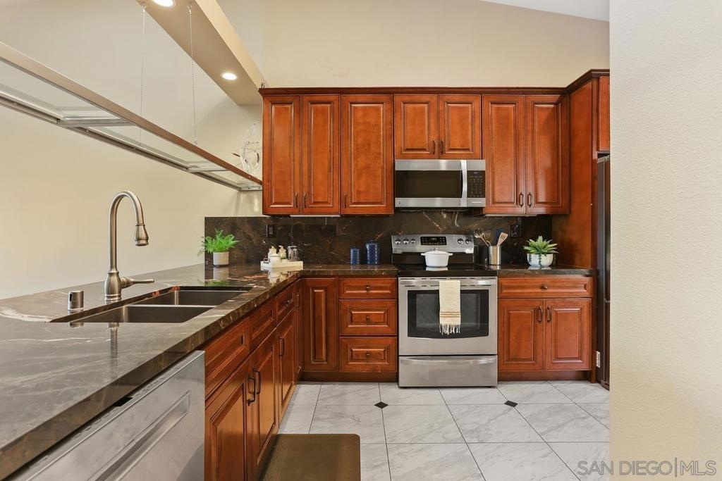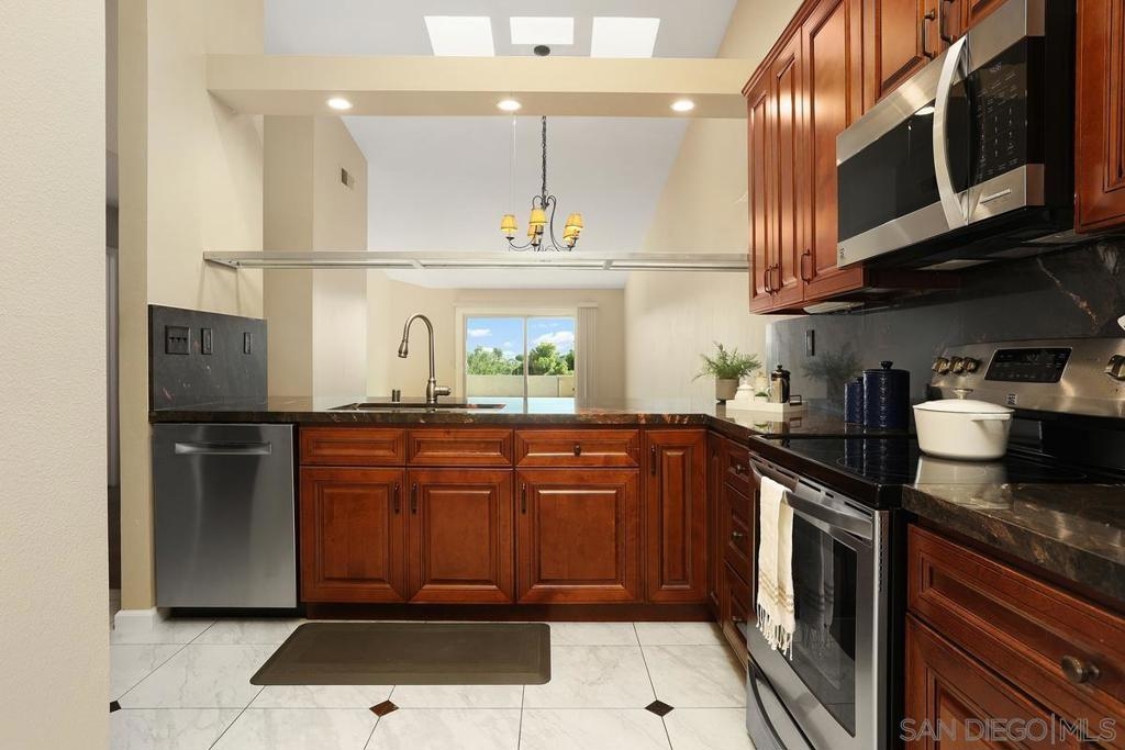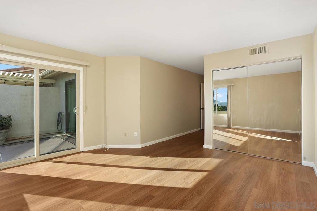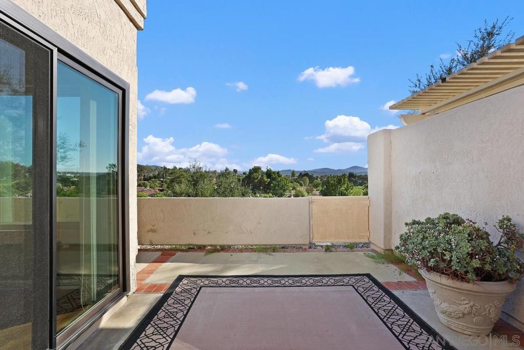 This charming, cozy single-story home at the top of Oaks North Villas offers sweeping panoramic views and no direct rear neighbor. It features a gated courtyard, vaulted ceilings, skylights, and fresh interior paint, creating a bright and airy ambiance. The remodeled kitchen is perfect for entertaining, with granite countertops and seating, beautiful cherry wood cabinets with pull-out drawers, and stainless steel appliances. The home includes dual bedroom suites for maximum comfort and privacy. One suite has a walk-in closet and soaking tub, while the second offers a large walk-in tiled glass enclosed shower, mirrored closet doors, and direct access to the rear patio for enjoying the breathtaking views. Additional highlights include vinyl plank and tile flooring, an interior laundry room with upper cabinetry, sink, and countertop. There is direct access to the garage, which has built-in closet/cabinetry for extra storage. The private rear patio is ideal for unwinding and enjoying the views! Residents of Oaks North, a 55+ community, enjoy amenities such as a clubhouse, heated pool and spa, pickleball, and tennis courts. The front yard landscaping and roof is also maintained by the HOA. The home is located just minutes from the Bernardo Winery and the Oaks North Community Center.