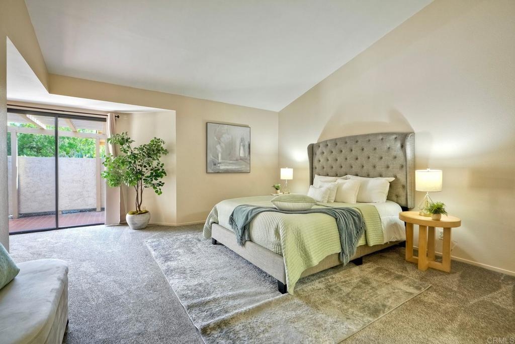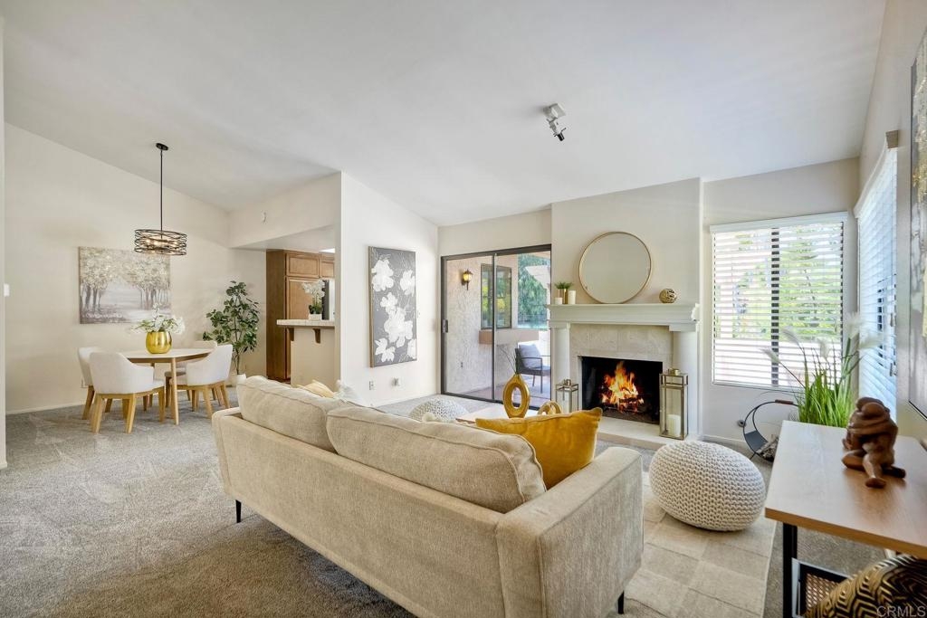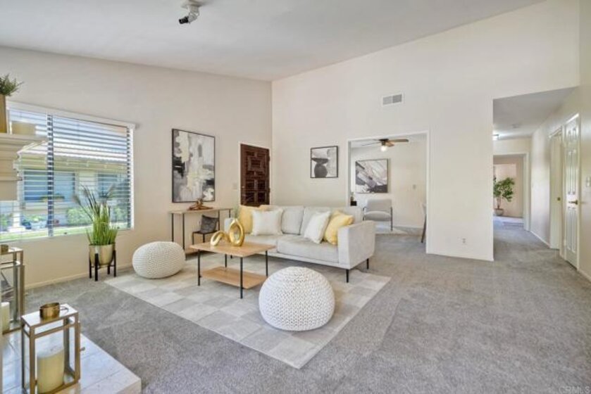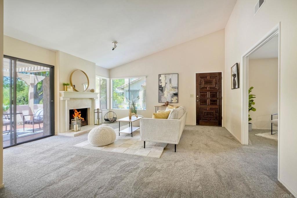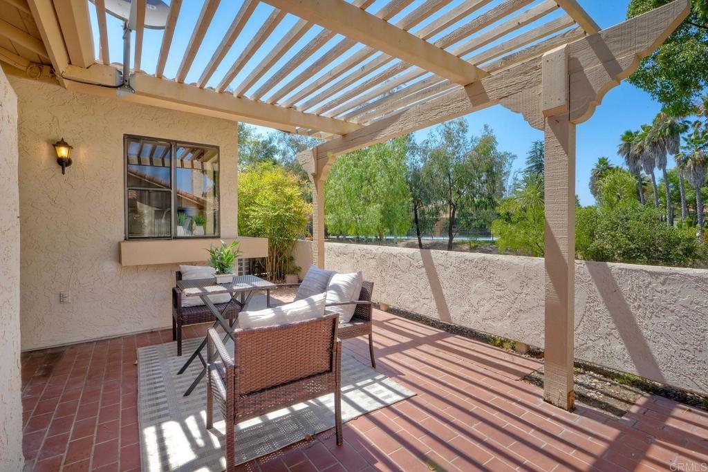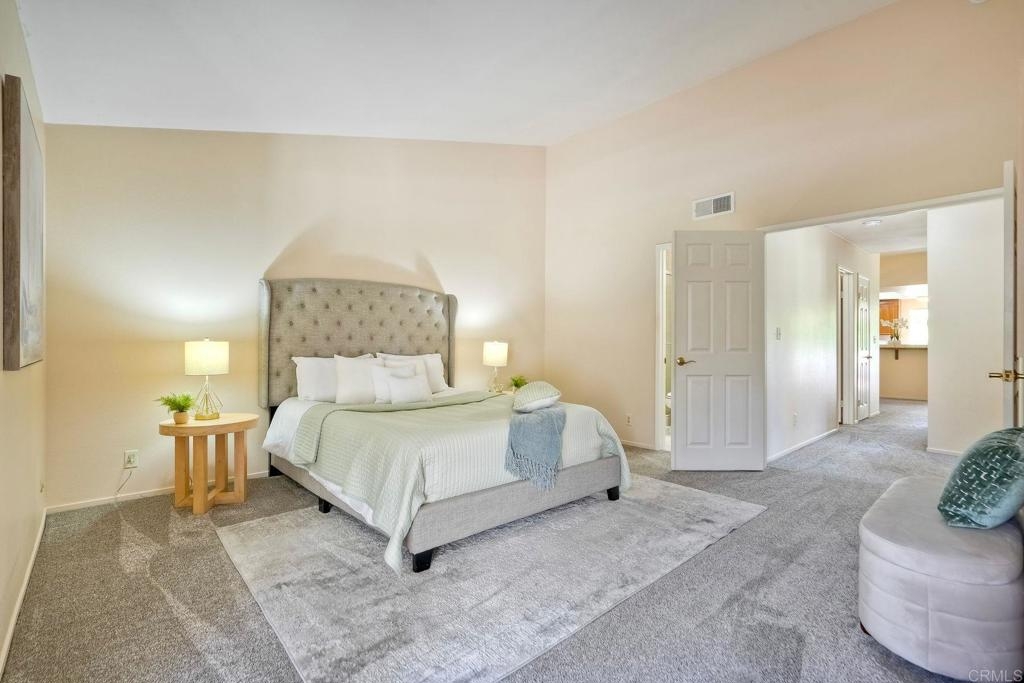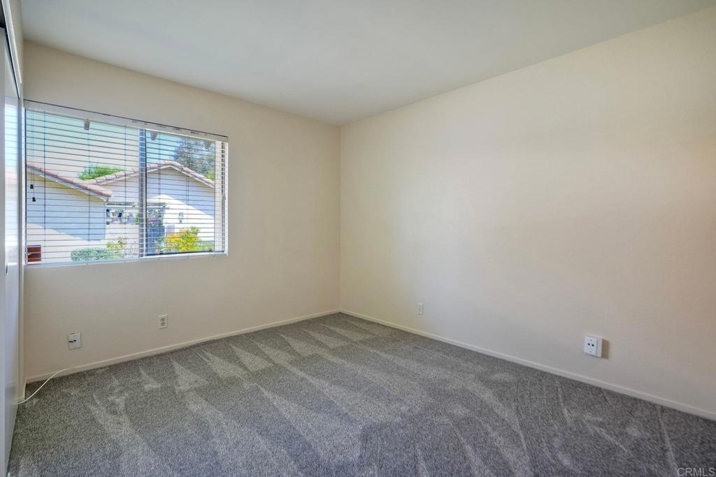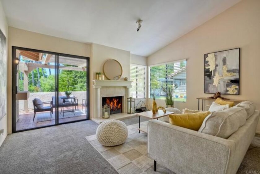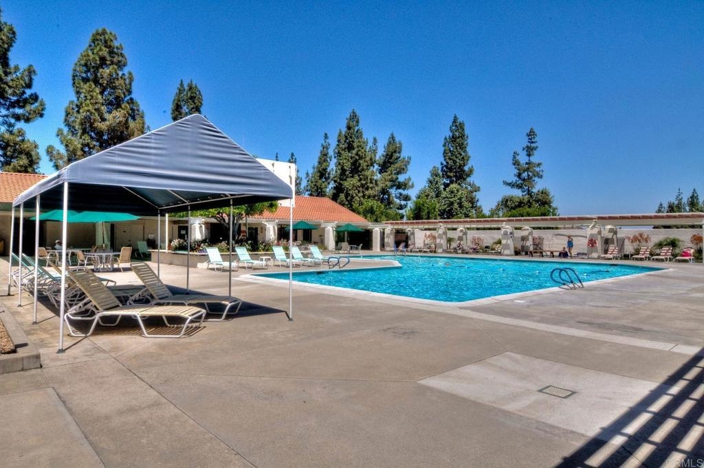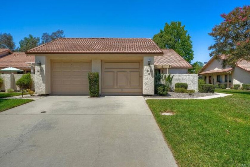 Prime location in the sought-after Oaks North Villas — a 55+ active adult golf course community! This single-story end-unit condominium lives like a detached home, with vaulted ceilings and no one above you, creating a bright, open, and private feel. As you enter, you’ll appreciate how natural light fills the family room and kitchen. The back patio is perfect for entertaining or relaxing, offering a park-like setting that overlooks the greenbelt and community grassy area. Additional highlights include indoor laundry, direct access from the one-car attached garage, newer HVAC, newer carpeting, and a new refrigerator, washer, and dryer. The primary bedroom features cathedral ceilings, a large walk-in closet, and its own private patio. The upgraded primary bathroom offers a newer vanity and a step-in shower with a custom tile surround. Conveniently located between the Rancho Bernardo Winery and the Oaks North Golf Course, this home also gives you access to the Oaks North Community Center, which offers swimming, pickleball, tennis, and many other activities. This beautiful home is a must-see!