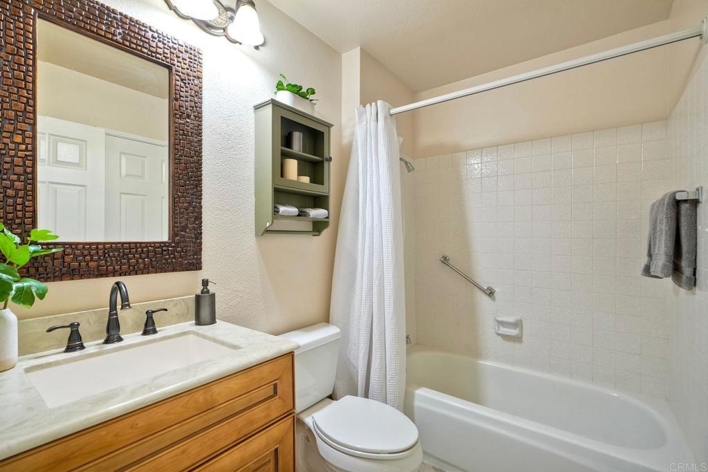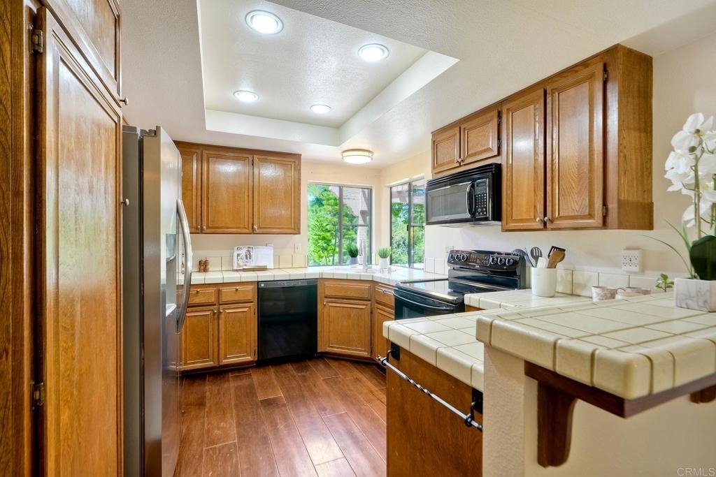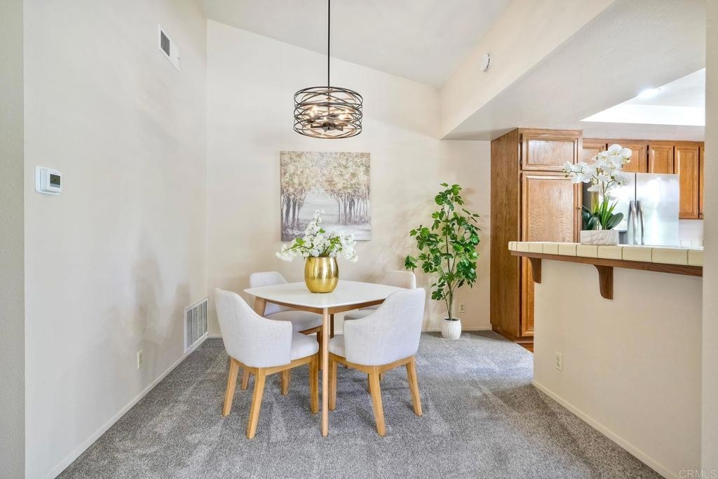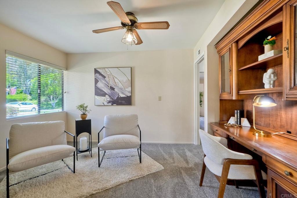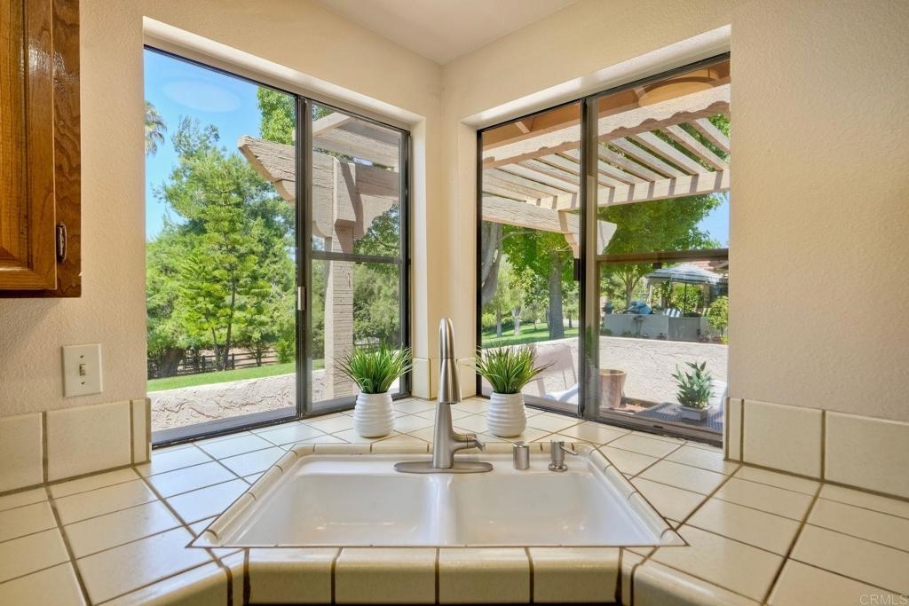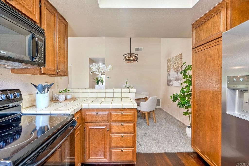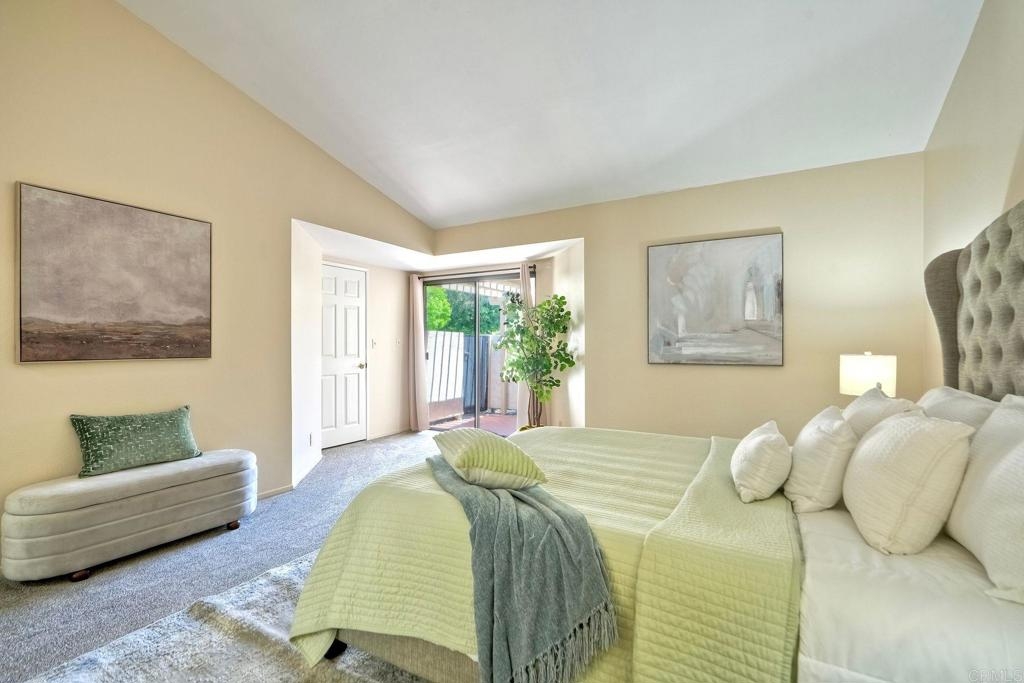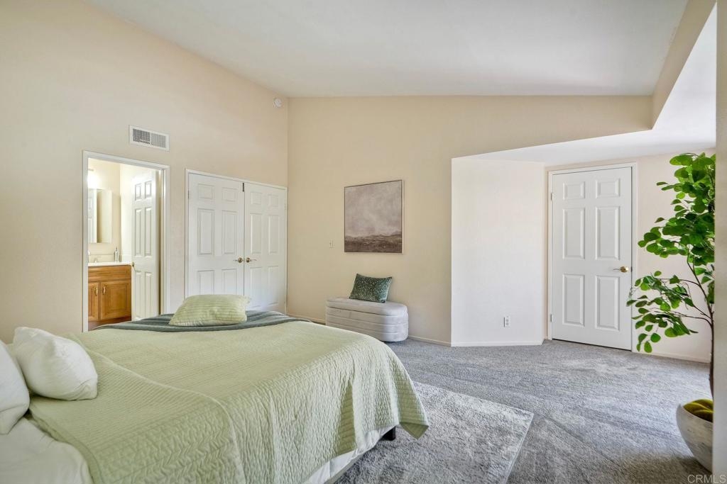 Prime location in the sought-after Oaks North Villas — a 55+ active adult golf course community! This single-story end-unit condominium lives like a detached home, with vaulted ceilings and no one above you, creating a bright, open, and private feel. As you enter, you’ll appreciate how natural light fills the family room and kitchen. The back patio is perfect for entertaining or relaxing, offering a park-like setting that overlooks the greenbelt and community grassy area. Additional highlights include indoor laundry, direct access from the one-car attached garage, newer HVAC, newer carpeting, and a new refrigerator, washer, and dryer. The primary bedroom features cathedral ceilings, a large walk-in closet, and its own private patio. The upgraded primary bathroom offers a newer vanity and a step-in shower with a custom tile surround. Conveniently located between the Rancho Bernardo Winery and the Oaks North Golf Course, this home also gives you access to the Oaks North Community Center, which offers swimming, pickleball, tennis, and many other activities. This beautiful home is a must-see!