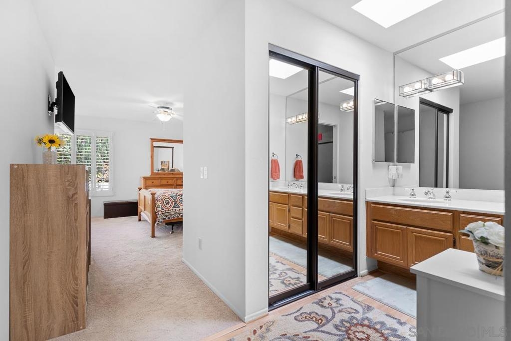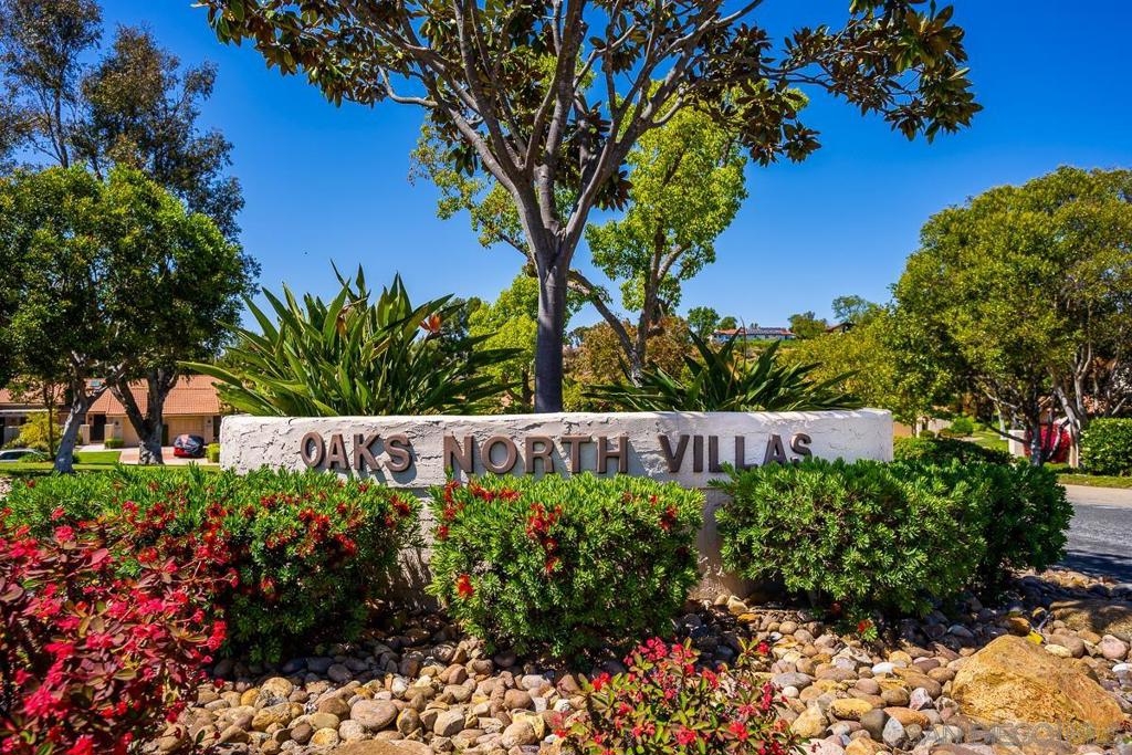 Welcome to picturesque Oaks North Villas - Rancho Bernardo's premiere 55+ community. The welcoming private courtyard will lead you to the entry of this single level home. Inside you'll find many great features such as vaulted ceilings, skylight in the living/dining room, laminate flooring throughout and a spacious kitchen with tons of cabinets. The owner's suite has dual closets, vanity counters with ensuite private bath & a skylight. The second bedroom has walk in closet with direct access to the guest bath. The laundry room includes a sink, additional storage cabinets & direct access from kitchen to attached one car garage. Relax in the private backyard patio. Equipment: Dryer, Washer Sewer: Public Sewer Topography: LL