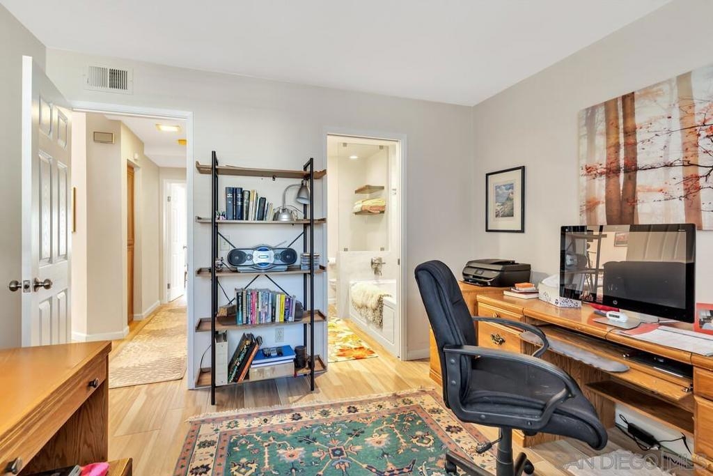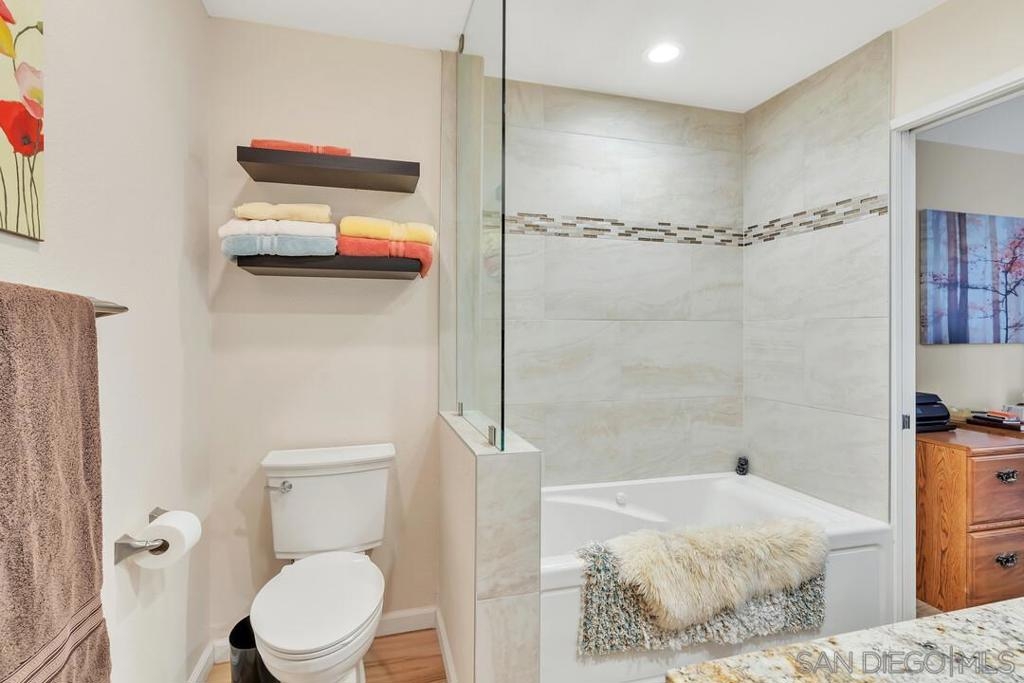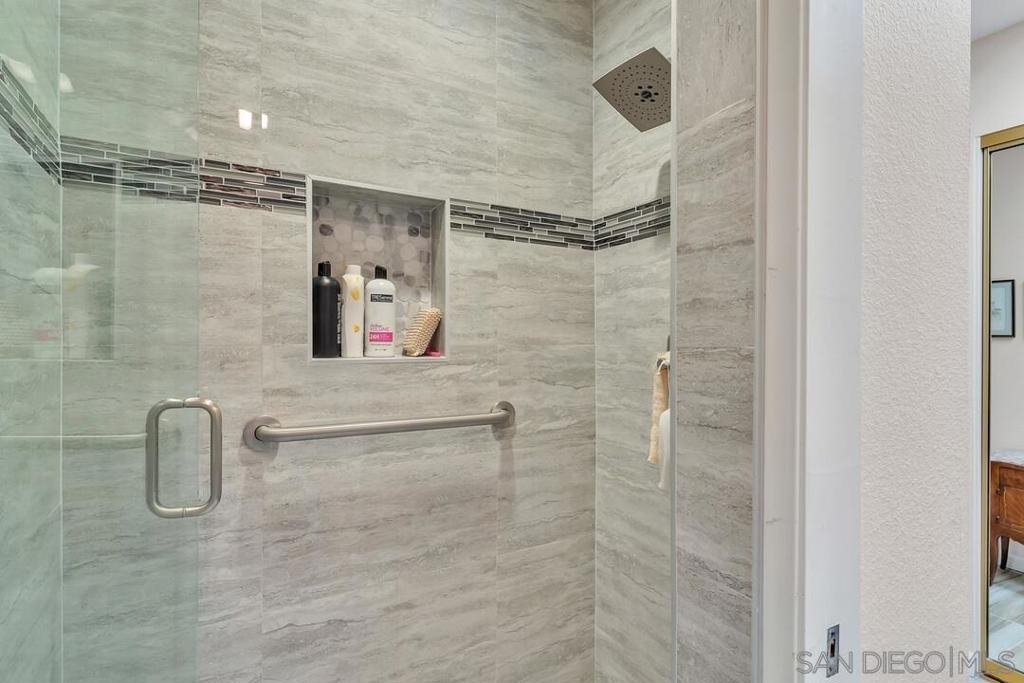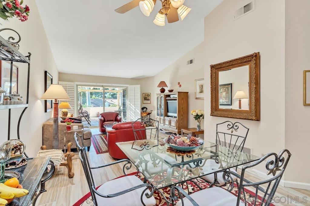 Welcome to this beautiful updated home located on a quiet, picturesque street in Oaks North Villas - Rancho Bernardo's premiere 55+ community. As you enter through the private courtyard, you'll find this single level home has many great features such as vaulted ceilings & skylight in the living/dining room; spacious and updated kitchen with loads of storage, and new wood grain tile flooring throughout. The master bedroom has private access to the backyard patio and offers spacious closet with ensuite private bath, skylight and updated shower and vanity. The second bedroom with new luxury wood grain tile flooring, walk in closet and direct access to the guest bath with remodeled bathroom. The sizable laundry room with additional storage cabinets has direct access from kitchen to attached one car garage. Private backyard patio offers the perfect place to relax and enjoy San Diego's year round weather. HOA covers front yard and roof maintenance. Oaks North Community center offers its residents great recreational/social activities, pool, tennis & pickle ball courts, fitness center, library and amenity room. This is a perfect home for those looking to downsize and enjoy the social and recreational activities of a vibrant community close to shopping and restaurants. Equipment: Garage Door Opener Sewer: Sewer Connected Topography: LL