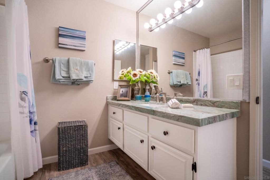Welcome to picturesque Oaks North Villas - Rancho Bernardo's premiere 55+ community. The welcoming private courtyard will lead you to the entry of this single level home. Inside you'll find many great features such as vaulted ceilings, skylight in the living/dining room, luxury vinyl plank flooring throughout and a spacious kitchen with tons of cabinets, quartz counters & stainless appliances. The owner's suite has dual closets, new vanity counters with ensuite private bath & a skylight. The second bedroom has walk in closet with direct access to the guest bath. The laundry room includes a sink, additional storage cabinets & direct access from kitchen to attached one car garage. Relax in the private backyard patio has Saltillo tiles, pergola covering and lush landscape. HOA covers front yard and roof maintenance. Oaks North Community center offers its residents great recreational/social activities, pool, tennis & pickle ball courts, fitness center, library and amenity room. Home is located within a network of restaurants, shopping and freeways. Equipment: Dryer, Washer Sewer: Sewer Connected