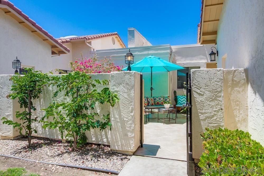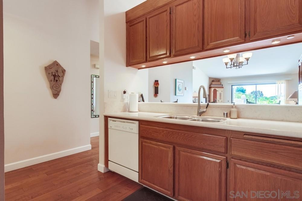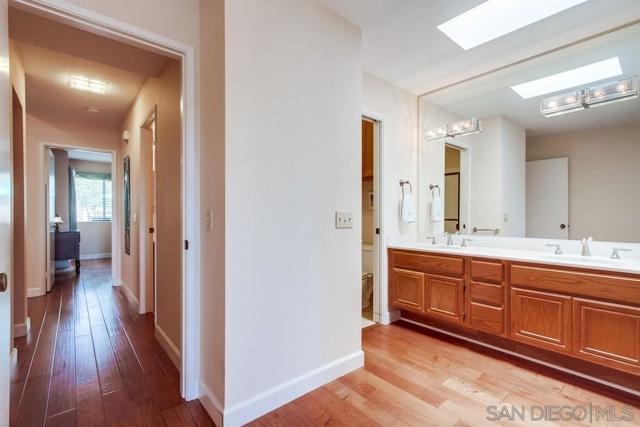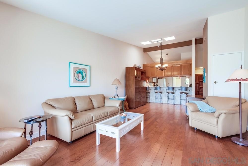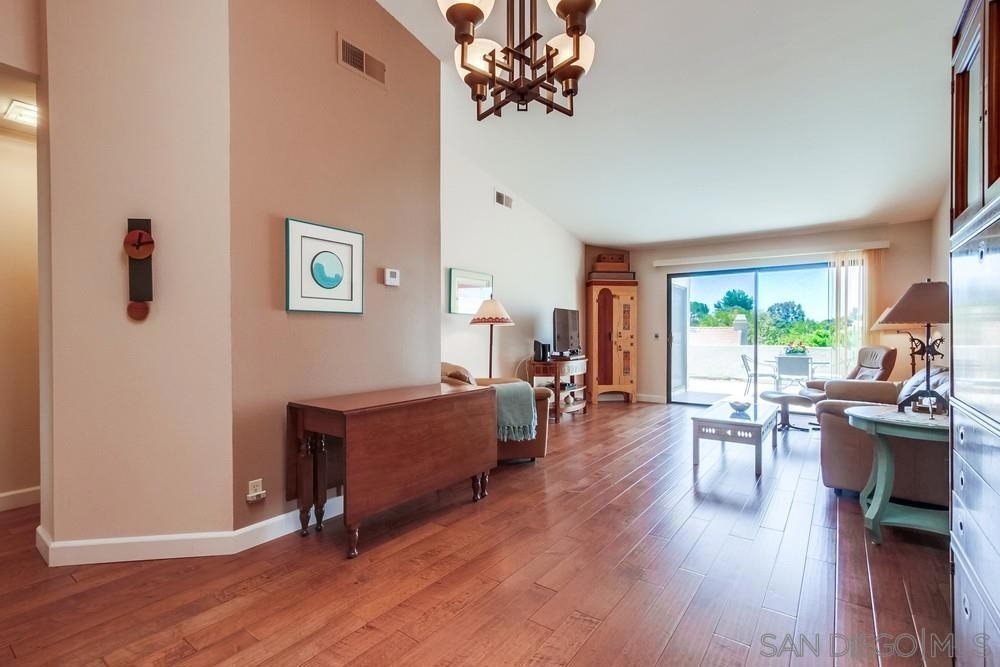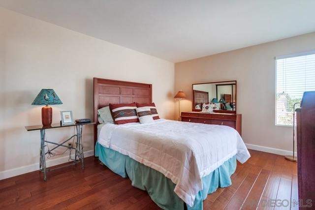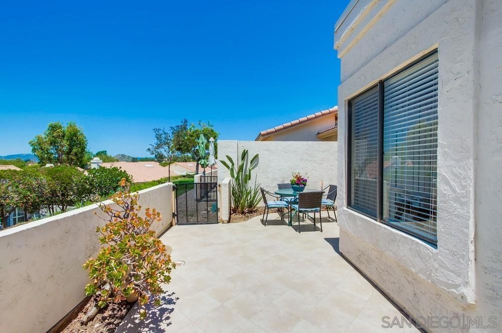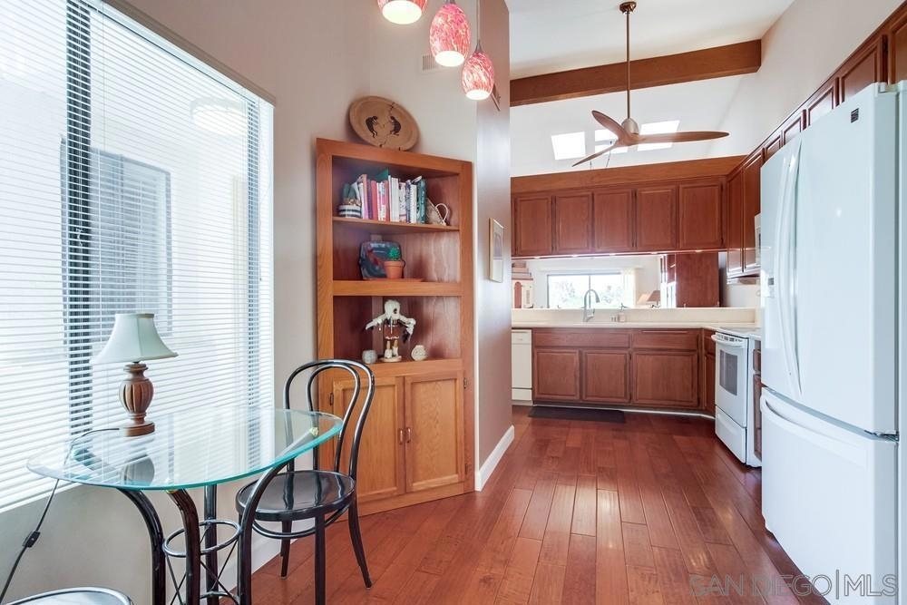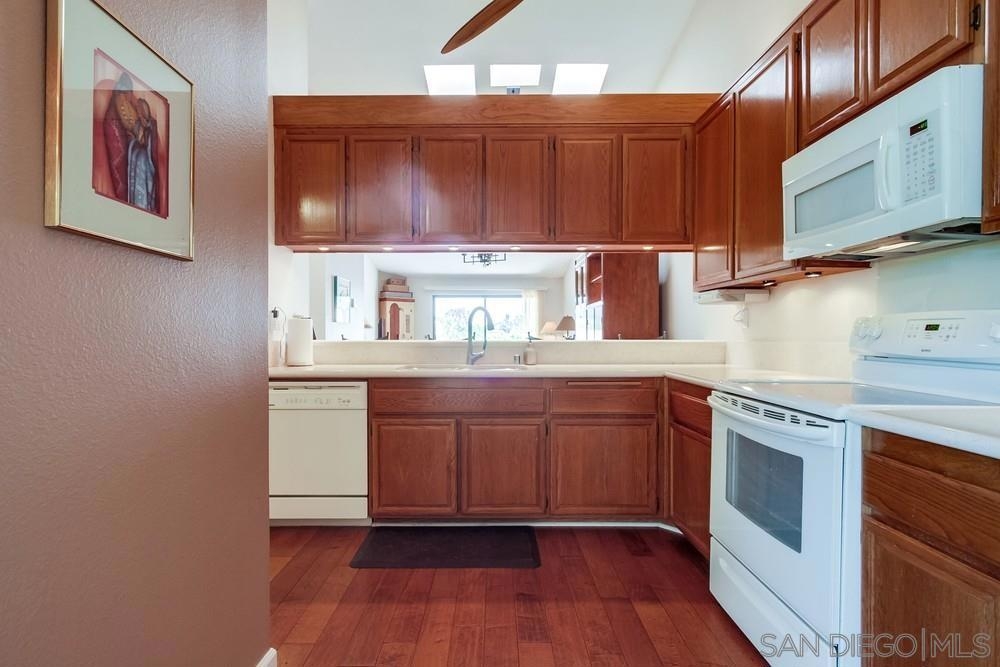 Gorgeous single story nestled on a premier quiet cul-de-sac in Oaks North. Gated courtyard entry plus a large private back patio both perfect for outdoor enjoyment. Vaulted ceilings in the living room with skylights in the dining area providing an abundance of natural light. Fabulous floorplan with wood flooring throughout. Updated kitchen with beautiful Silestone countertops, breakfast nook and ample cabinet space. Primary bedroom features a dual sided closet plus slider to the rear patio. Second bedroom has a large walk in closet. Indoor laundry with tile floors plus an attached garage with direct home access. This home is absolutely meticulous and one you won't want to miss! Oaks North is Rancho Bernardo's Premier 55+ community. The Oaks North Community Center features a pool, pickle ball, tennis court, lawn bowling, a library, gym, art classes and numerous clubs. The RB Winery is also nearby with incredible restaurants and shopping. You'll love this beautiful neighborhood. Welcome Home!