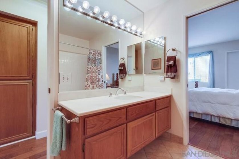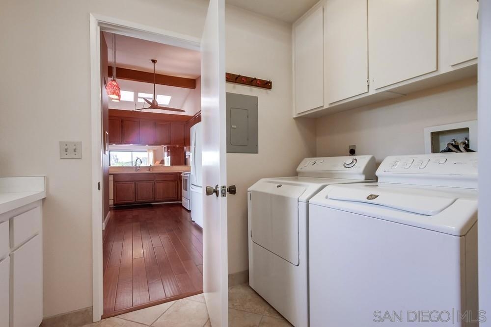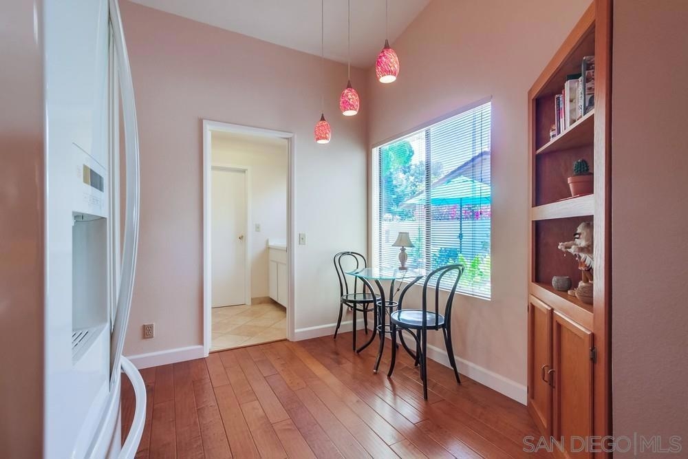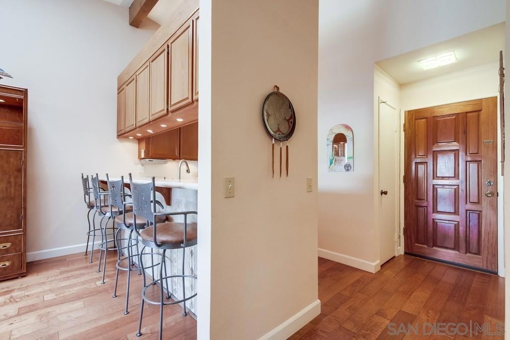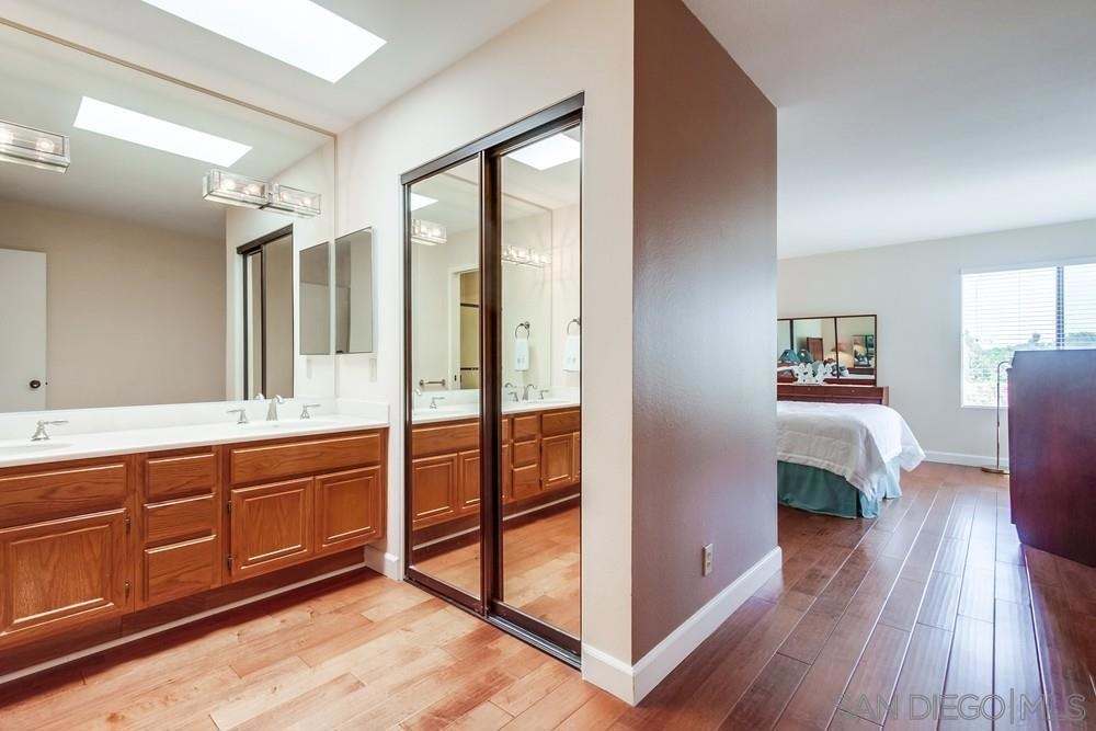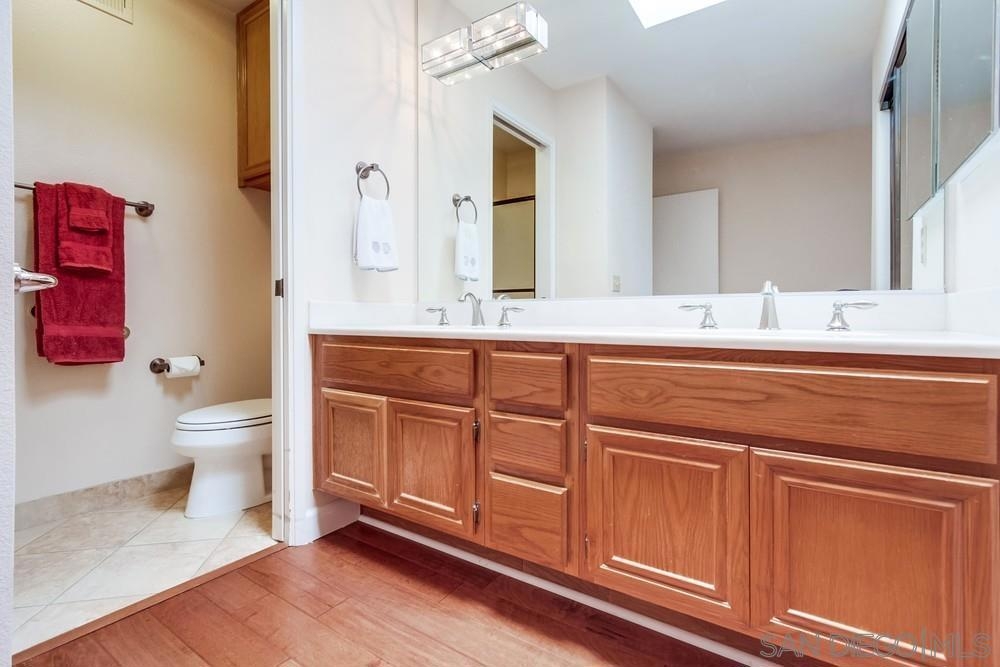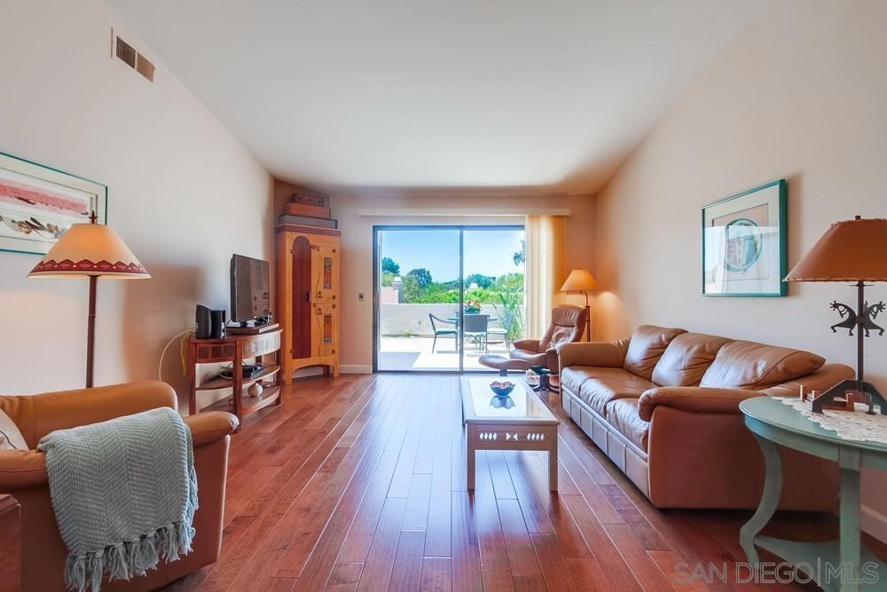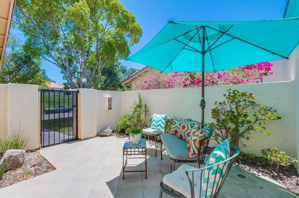 Gorgeous single story nestled on a premier quiet cul-de-sac in Oaks North. Gated courtyard entry plus a large private back patio both perfect for outdoor enjoyment. Vaulted ceilings in the living room with skylights in the dining area providing an abundance of natural light. Fabulous floorplan with wood flooring throughout. Updated kitchen with beautiful Silestone countertops, breakfast nook and ample cabinet space. Primary bedroom features a dual sided closet plus slider to the rear patio. Second bedroom has a large walk in closet. Indoor laundry with tile floors plus an attached garage with direct home access. This home is absolutely meticulous and one you won't want to miss! Oaks North is Rancho Bernardo's Premier 55+ community. The Oaks North Community Center features a pool, pickle ball, tennis court, lawn bowling, a library, gym, art classes and numerous clubs. The RB Winery is also nearby with incredible restaurants and shopping. You'll love this beautiful neighborhood. Welcome Home!