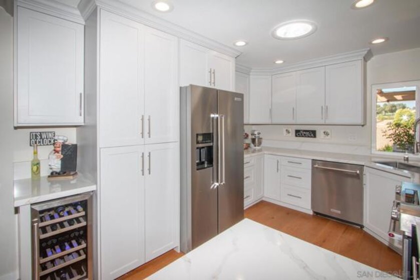 Turn-key highly upgraded immaculate home! Move right into this pristine, beautifully upgraded 3BD/2BA in 55+ Oaks North Villas home w/expansive views of mountains & open space. End unit w/private entry. Master w/en suite BA & walk-in closet, gorgeous shower. Bright, gourmet kitchen w/custom cabinets & quartz counters. Shaker cabinets, doors, baseboards & hardware throughout. Open concept living/dining room w/vaulted ceilings & hardwood floors! Travertine & stone-faced gas FP w/mantel. Windows, sliders & AC replaced in 2024. Modern ceiling fans & light fixtures. Generous interior storage. Price reflects motivated sellers! Your next adventure begins w/this immaculate 3BD/2BA/1-car garage attached home in the highly desirable, active 55+ neighborhood of Oaks North. Turn-key property that has been extensively updated since 2022 offers worry-free living. Quiet back patio w/expansive views of The Trails and peaceful front courtyard off master suite for enjoying sunny afternoons. Open floor plan w/vaulted ceiling, neutral decor. Beautiful travertine & stone-faced gas FP w/wood mantel. Oak hardwood floors installed in 2024 (engineered, wide plank). Gourmet kitchen is light & bright. Custom cabinetry features pull-out shelving & deep, wide drawers. SS Kitchen-Aid appliances (2022). Built-in wine fridge w/serving area. Ample counterspace to prep & serve meals. Interior laundry room w/cabinets & tiled countertop. Stacked washer-dryer installed in 2025. Open concept living area w/separate casual dining area. Skylights in living area & master as well as Solar Tubes (2025) enhance interior natural light. Windows & sliders replaced in 2024. Shaker cabinets, doors, baseboards & hardware throughout. Wood plantation shutters. Contemporary light fixtures & ceiling fans. Private master w/gorgeous custom-tiled shower w/built-in bench, high-end brass fixtures, rain shower head. BD2 offers an extra-large walk-in closet. BD3/Optional den is adjacent to the living area. Reach-in closet w/shelves is well-lit & offers ample storage. Updated hall BA is ready for guests. Unwind and entertain on year-round red brick patio. Space for flowering & tropical plants. Partial stucco wall w/small black wrought iron gate to common area. Garage has built-in storage shelves. Open rafters for additional storage. Low maintenance exterior! Monthly HOA fees cover the maintenance for the roof, stucco, rain gutters, front walkway & landscape. Oaks North is an adult-only community w/numerous amenities & planned activities. Community center w/outstanding clubhouse, year-round heated pool w/lap lanes, in-ground spa, lighted tennis courts. Neighborhood walking paths, concrete sidewalks & 9-hole golf course. Golf cart zone streets. Leisurely walk to the nearby Bernardo Winery, just one-half mile away. Easy access to I-15, shopping, dining, healthcare facilities & places of worship.