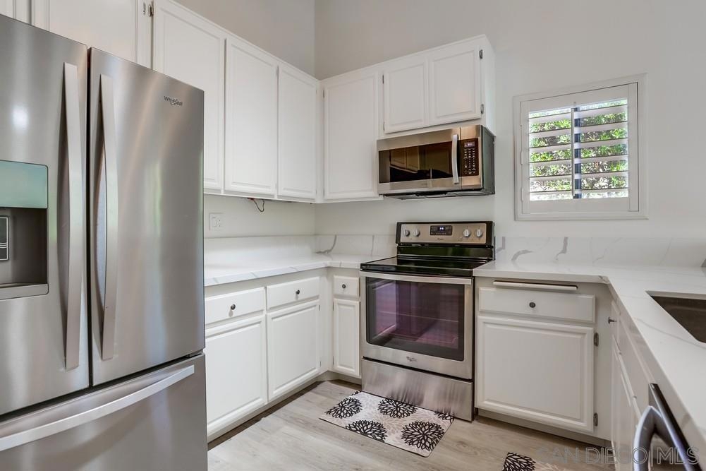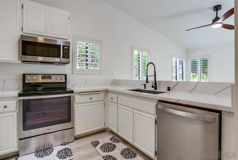 Price Improvement! Here’s your chance to own a beautifully upgraded home, ideally situated on a peaceful cul-de-sac in the sought-after 55+ community of Oaks North Villas. This residence has a primary suite that steps out onto an updated patio with a patio pergola cover that extends directly onto a lush, private park—exclusive to Villa residents. Start your day with a peaceful stroll through the manicured greenery or relax under the nearby gazebo, surrounded by the soothing sounds of local songbirds. This move-in-ready residence has been thoughtfully upgraded with high-quality finishes designed for both comfort and style. Sunlight pours into the open living spaces through large windows, creating a bright and welcoming atmosphere. The kitchen is a true highlight, featuring elegant quartz countertops, new stainless steel appliances, a modern sink and faucet, and contemporary lighting—perfect for both everyday living and entertaining. Brand-new light-toned laminate flooring and fresh neutral paint flow throughout the home, accentuated by stylish designer fixtures that enhance its clean, contemporary feel. Additional upgrades include skylights, a cozy fireplace, copper plumbing, a water softener system, newer HVAC and water heater, and a private 2-car garage with direct entry. This exceptional home blends serene park-side living with tasteful upgrades in one of San Diego's most beloved active adult communities. Don’t miss your chance to make it yours! Price Improvement! Here’s your chance to own a beautifully upgraded home, ideally situated on a peaceful cul-de-sac in the sought-after 55+ community of Oaks North Villas. This residence has a primary suite that steps out onto an updated patio with a patio pergola cover that extends directly onto a lush, private park—exclusive to Villa residents. Start your day with a peaceful stroll through the manicured greenery or relax under the nearby gazebo, surrounded by the soothing sounds of local songbirds. This move-in-ready residence has been thoughtfully upgraded with high-quality finishes designed for both comfort and style. Sunlight pours into the open living spaces through large windows, creating a bright and welcoming atmosphere. The kitchen is a true highlight, featuring elegant quartz countertops, new stainless steel appliances, a modern sink and faucet, and contemporary lighting—perfect for both everyday living and entertaining. Brand-new light-toned laminate flooring and fresh neutral paint flow throughout the home, accentuated by stylish designer fixtures that enhance its clean, contemporary feel. Additional upgrades include skylights, a cozy fireplace, copper plumbing, a water softener system, newer HVAC and water heater, and a private 2-car garage with direct entry. This exceptional home blends serene park-side living with tasteful upgrades in one of San Diego's most beloved active adult communities. Don’t miss your chance to make it yours! Oaks North is a 55+ community. Enjoy access to the clubhouse, heated pool, spa, including pickleball and tennis courts, exercise classes and more. Discovering this prime location means you're just a short walk to the Bernardo Winery, golf course, and close to shopping, restaurants, and convenient freeway access.