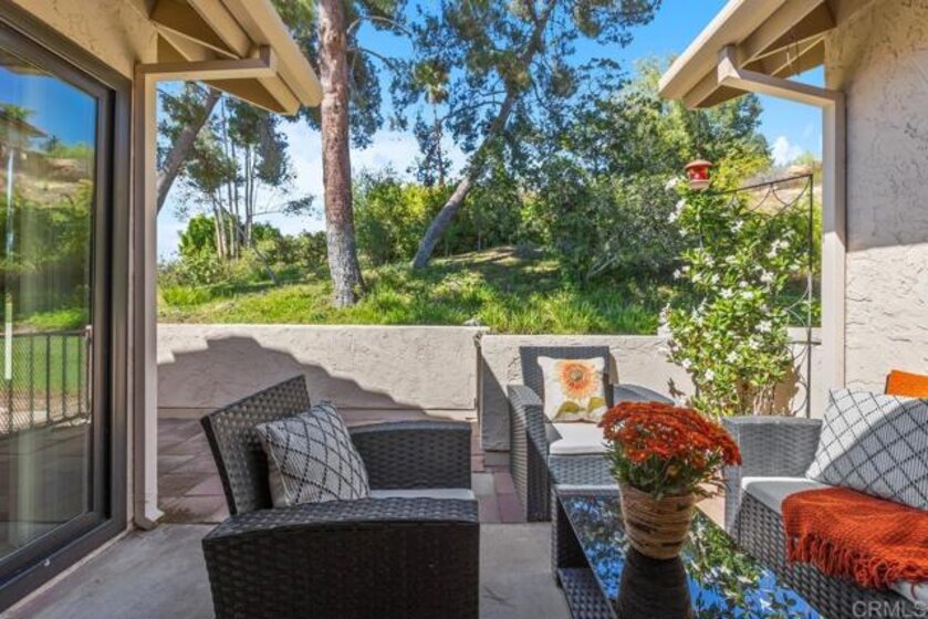 This beautifully appointed, single-level home in the active 55+ senior community of Oaks North Villas is located in a prime location along the green belt and has been nicely updated and cared for. You’re instantly greeted by the garden-like setting and the private, spacious courtyard. As you step inside, you’ll notice the freshly painted interior and vaulted ceilings that create a bright and welcoming atmosphere. The open floorplan seamlessly flows from the stylish and spacious kitchen to the inviting living spaces. The kitchen boasts new quartz countertops and backsplash, new kitchen sink, a beautiful copper light, and laundry closet. Illuminated by the skylight with remote control shade, the living and dining spaces overlook the lovely patio and garden. Through the hallway with storage closet, you’ll find two spacious bedrooms, each with a slider, and updated baths. The spacious primary room has two closets and a bathroom with a new vanity and sink. The secondary room has a nice slider that provides direct access to the front courtyard. For added convenience, the home has been updated with newer HVAC & Condenser, water heater, dishwasher, oven/range, disposal, and garage door opener and springs. With direct access to the attached garage, you can enjoy the cleanliness of epoxy floors and the ample storage in the rafters and storage cabinets. Step through one of the two dual-paned sliders from the living room or primary bedroom to enjoy the very tranquil, quiet and lovely rear landscaping. Residents receive access to the many amenities of the Oaks North Community Center including a swimming pool, spa, pickleball, tennis courts, a well-stocked library, art and sewing rooms, a wood shop, a billiards room, and multiple game rooms for card games and other activities. Also, this home is conveniently located near the Bernardo Winery, Oaks North Golf Course and farmer's market. HOA includes home exterior, roof and landscaping maintenance, fencing, gates, and limited homeowners insurance.