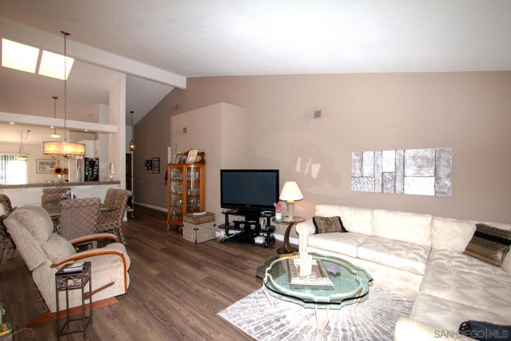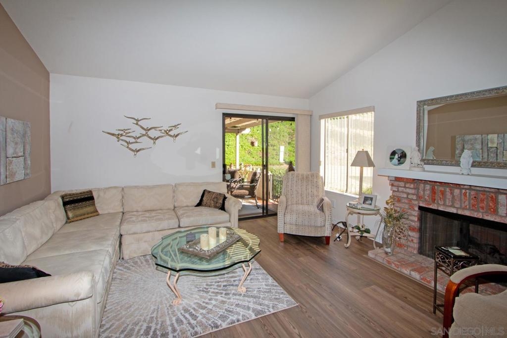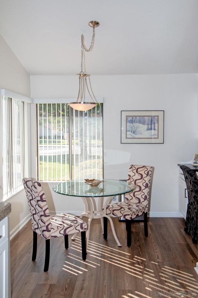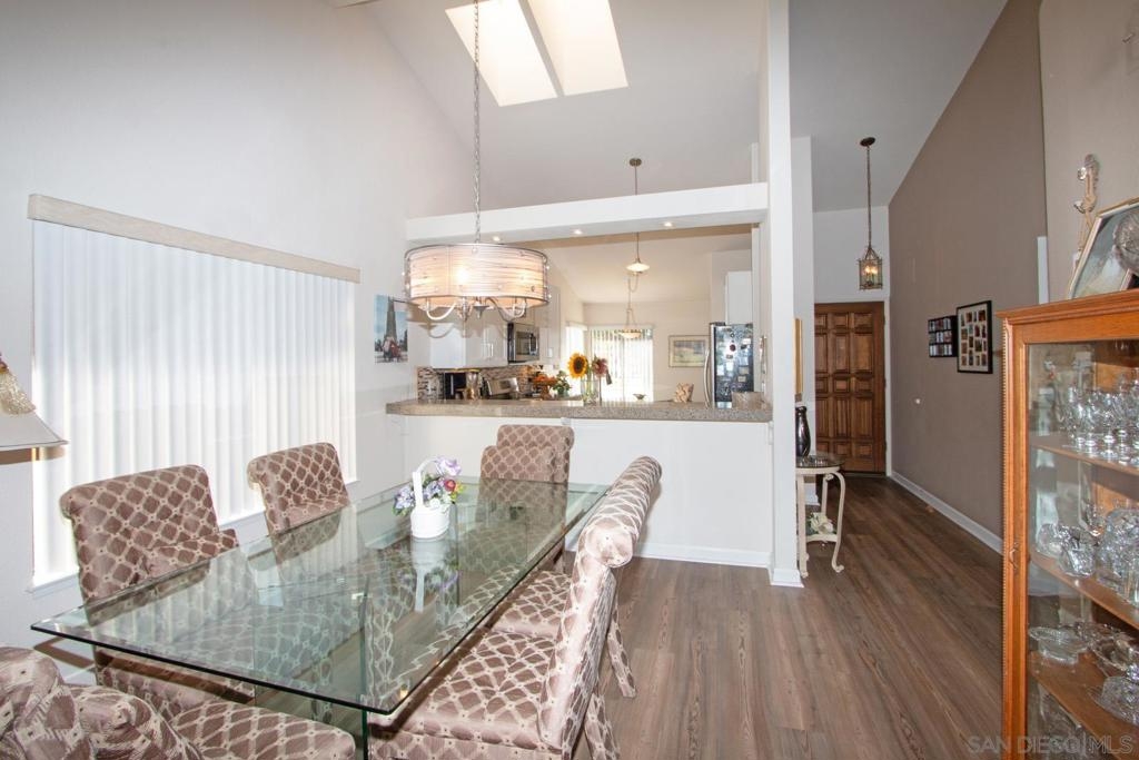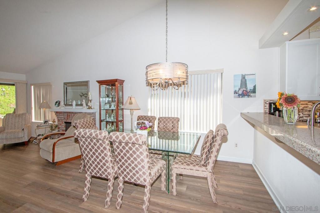 Stunning, upgraded, two-bedroom, two-bath home in popular Oaks North Villas! Light and bright, this end unit is private, and the back patio overlooks a green belt in a park-like setting. You will be cooking with gas in the eat-in kitchen with stainless steel appliances, crisp white cabinets, quartz countertops and a built-in desk with bookshelves. The formal dining room has sky lights in the vaulted ceilings. Luxury wide plank vinyl flooring throughout and carpet in both bedrooms. Curl up in front of the brick fireplace with mantle to read a good book or watch TV. The cheerful laundry area is enclosed in the garage with built-in cabinets and folding area. Updated baths with stone enclosures, upgraded cabinets and light fixtures and skylights. Enjoy coffee on the gated front patio or entertain friends and family on the large, covered back patio. Meet your friends at the Oaks North Community Center for a swim, a game of tennis, pickle ball, lawn bowling, movie night, travel club, holiday dances, fitness center or to get a book out of the library. Oaks North is a community for people 55 years old and older.