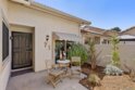 Surrounded by the serene setting of Oaks North Villas, this single-story residence offers an ideal blend of simplicity and sophistication. With recent upgrades throughout and private outdoor retreats, it’s designed for effortless living in a vibrant 55+ community. A freshly landscaped front patio sets a welcoming tone before stepping through the front door. Inside, soaring vaulted ceilings and all-new (2023) Anlin dual-pane windows and sliding doors fill the home with light, while updated fixtures and finishes (See supp) add a touch of modern elegance. The 2-bedroom, 2-bath floorplan offers both convenience and privacy, complemented by a private 1-car garage. The kitchen shines with espresso cabinetry, granite countertops, a new refrigerator and dishwasher, and a breakfast bar that opens seamlessly into the dining and living areas—perfect for entertaining. Both bathrooms have been stylishly refreshed with quartz counters, new vanities, and modern Kohler fixtures. Additional upgrades include a new HVAC system with updated ducting (2023), a new water heater (2024), new washer (2024), freshly painted doors/baseboards, new hardware, and updated secondary bedroom with fresh paint, carpet, and closet doors (2024). Distressed wood-style flooring adds warmth, while plush carpeting provides comfort underfoot. Two private patios extend your living space—one at the entry and a second off the living room and primary suite, upgraded with new porcelain tile and backing to a peaceful greenbelt. The perfect spot to enjoy your morning coffee or San Diego’s year-round sunshine. Life in Oaks North means more than just a beautiful home. Residents enjoy access to the Oaks North Community Center, with resort-style amenities including a heated pool and spa, tennis and pickleball courts, fitness center, lawn bowling, ceramics studio, woodshop, and a full calendar of clubs and activities. Move-in ready and priced to sell, this turnkey townhome is your opportunity to enjoy the best of San Diego’s 55+ lifestyle in a tranquil and welcoming setting.