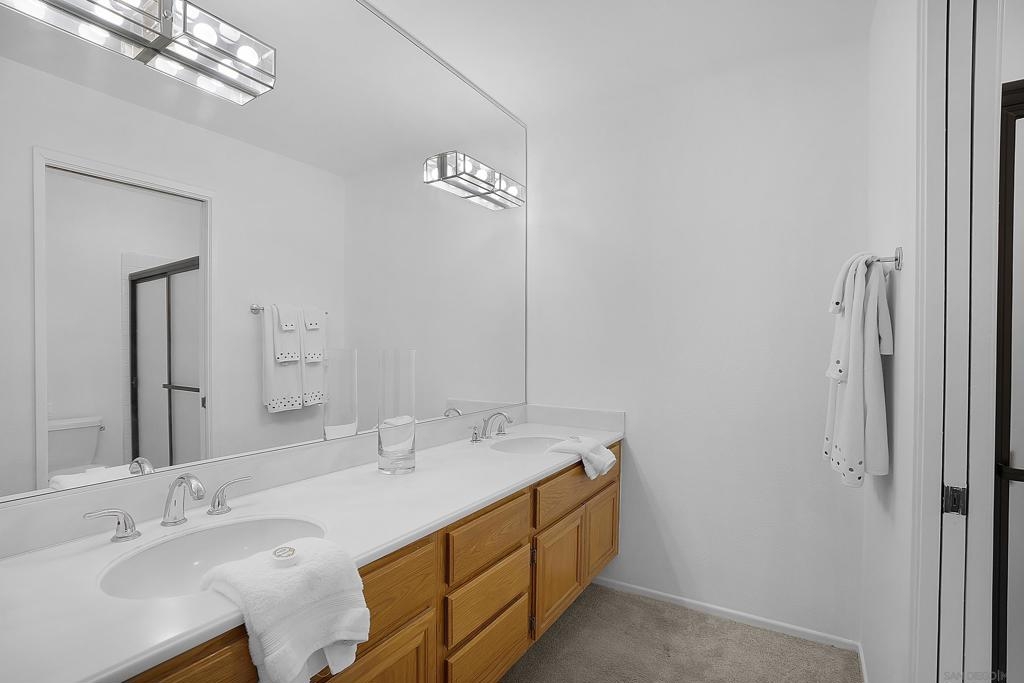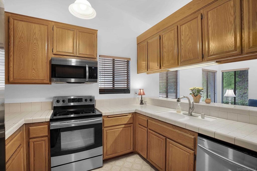 Rarely available end unit offering great value with the following upgrades. Copper plumbing throughout 2013, new water heater 2022, new AC 2019, new garage door opener/mechanics 2022, new garbage disposal 2024. This two car garage includes a custom built-in staircase to access the rafters, built-in shelves flank both sides of the garage w/ 2 full size cabinets for added storage. Offering a unique model with a bonus family room off the kitchen. Enjoy the fireplace from the living room & dining room, spacious primary suite with a walk-in closet and a private patio off the primary bedroom & family room. Relax and enjoy easy living at Oaks North Villas, a 55+ community. Rarely available end unit offering great value with the following upgrades. Copper plumbing throughout 2013, new water heater 2022, new AC 2019, new garage door opener/mechanics 2022, new garbage disposal 2024. This two car garage includes a custom built-in staircase to access the rafters, built-in shelves flank both sides of the garage w/ 2 full size cabinets for added storage. Offering a unique model with a bonus family room off the kitchen. Enjoy the fireplace from the living room & dining room, spacious primary suite with a walk-in closet and a private patio off the primary bedroom & family room. Enjoy an active lifestyle playing golf, tennis or pickleball. Something to do every day of the week at the pool, spa, exercise classes, lawn bowling and so much more. You can walk to Bernardo Winery just down the road or take in a round of golf at the Rancho Bernardo Inn and enjoy lunch in one of their restaurants. Relax and enjoy easy living at Oaks North Villas, a 55+ community.