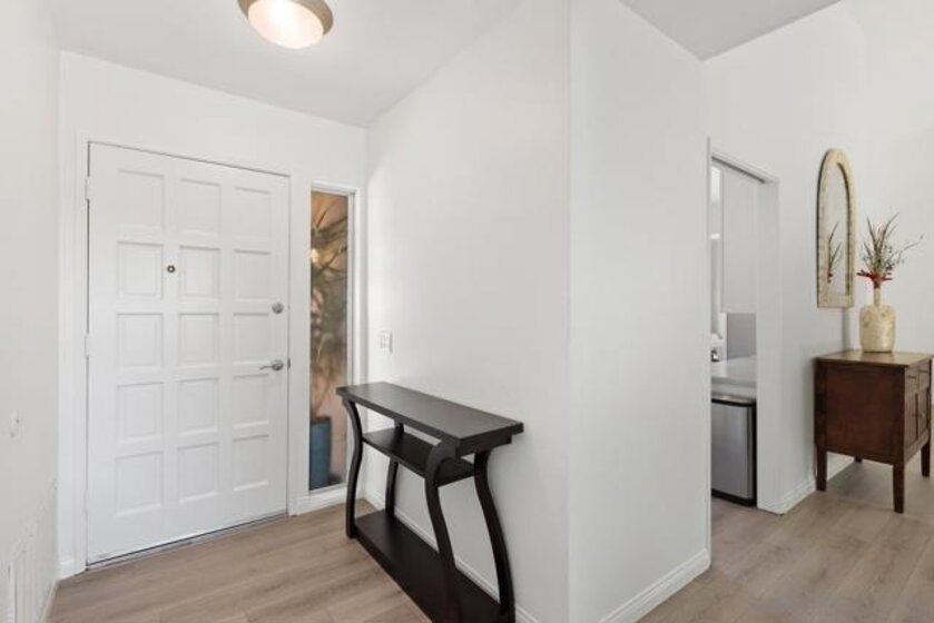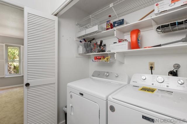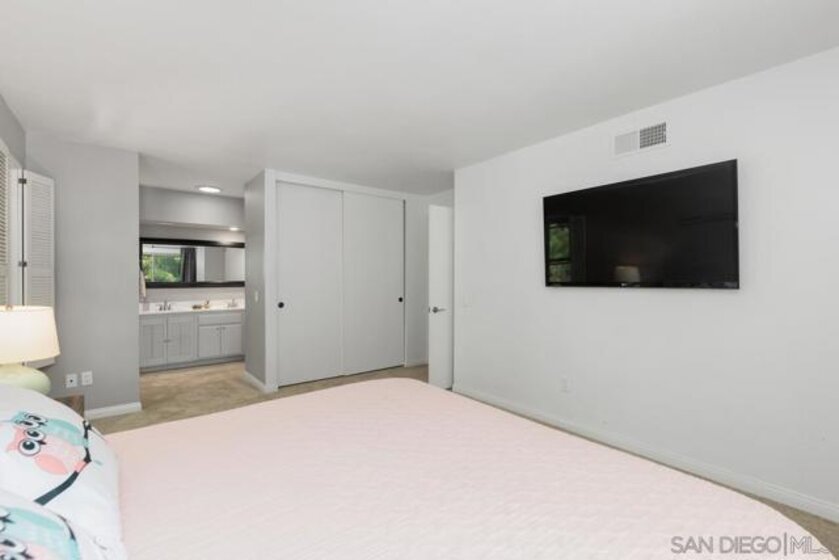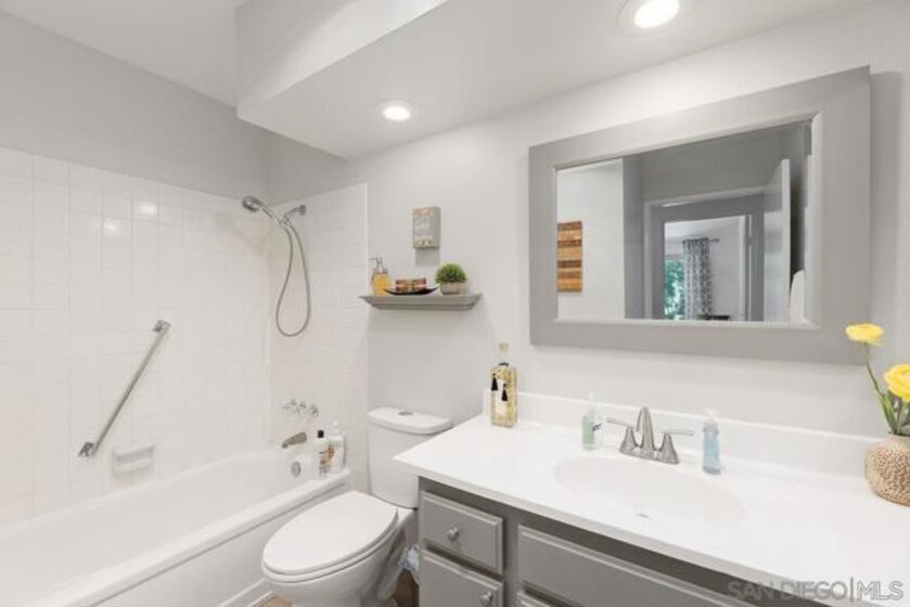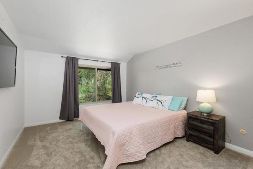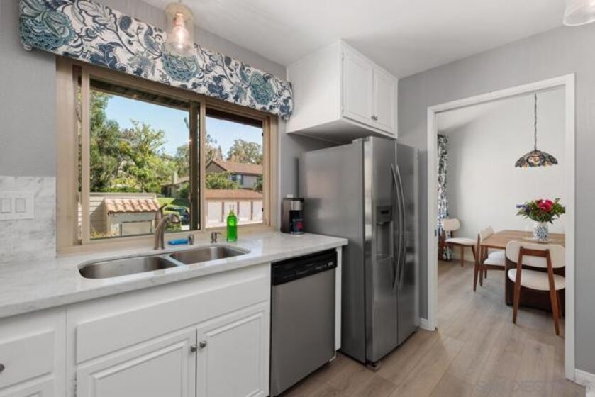Beautiful Rancho Bernardo Oaks North community 55+ , this updated upstairs end unit offers 2 bedrooms, 2 full bathrooms, and a versatile den—ideal for a home office, guest room, or hobby space. The floor plan features vaulted ceilings, plenty of natural light, and a gas/wood-burning fireplace. A private balcony overlooks the golf course, providing a cozy outdoor space. The kitchen includes stainless steel appliances, Carrera marble countertops, and ample cabinet storage. Recent updates include newer flooring, carpet, dual-pane windows, and in-unit laundry. The 1-car garage stands out with a cubby suited for a workbench or extra storage—great for tools, hobbies, or gear. Oaks North offers community amenities like a pool, tennis courts, fitness center, and social clubs. HOA covers water, trash, internet, and cable. Conveniently located near Bernardo Winery, golf, trails, shopping, and dining.
