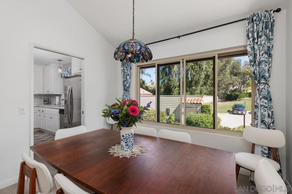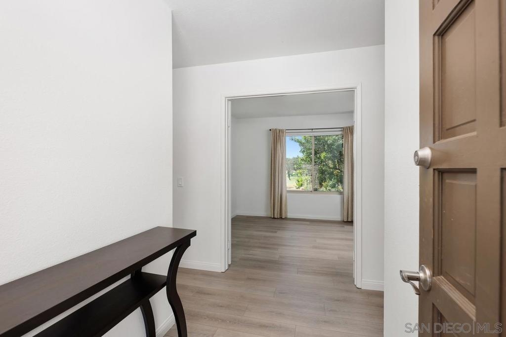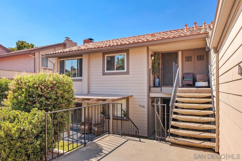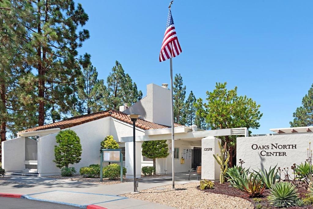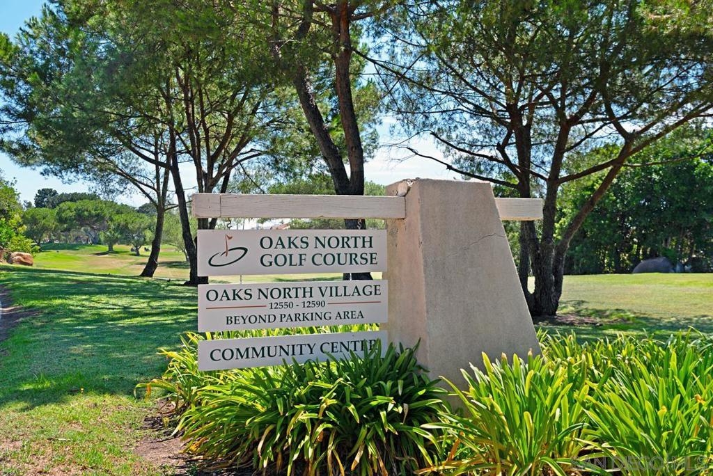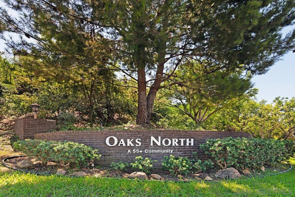Beautiful Rancho Bernardo Oaks North community 55+ , this updated upstairs end unit offers 2 bedrooms, 2 full bathrooms, and a versatile den—ideal for a home office, guest room, or hobby space. The floor plan features vaulted ceilings, plenty of natural light, and a gas/wood-burning fireplace. A private balcony overlooks the golf course, providing a cozy outdoor space. The kitchen includes stainless steel appliances, Carrera marble countertops, and ample cabinet storage. Recent updates include newer flooring, carpet, dual-pane windows, and in-unit laundry. The 1-car garage stands out with a cubby suited for a workbench or extra storage—great for tools, hobbies, or gear. Oaks North offers community amenities like a pool, tennis courts, fitness center, and social clubs. HOA covers water, trash, internet, and cable. Conveniently located near Bernardo Winery, golf, trails, shopping, and dining.
