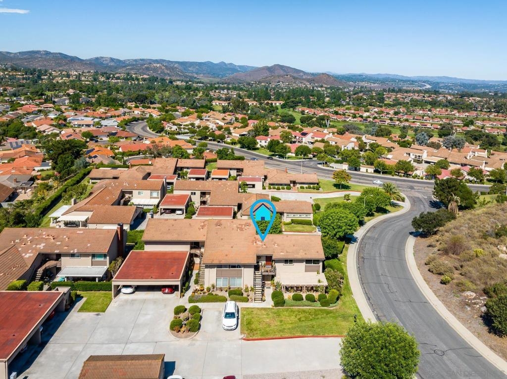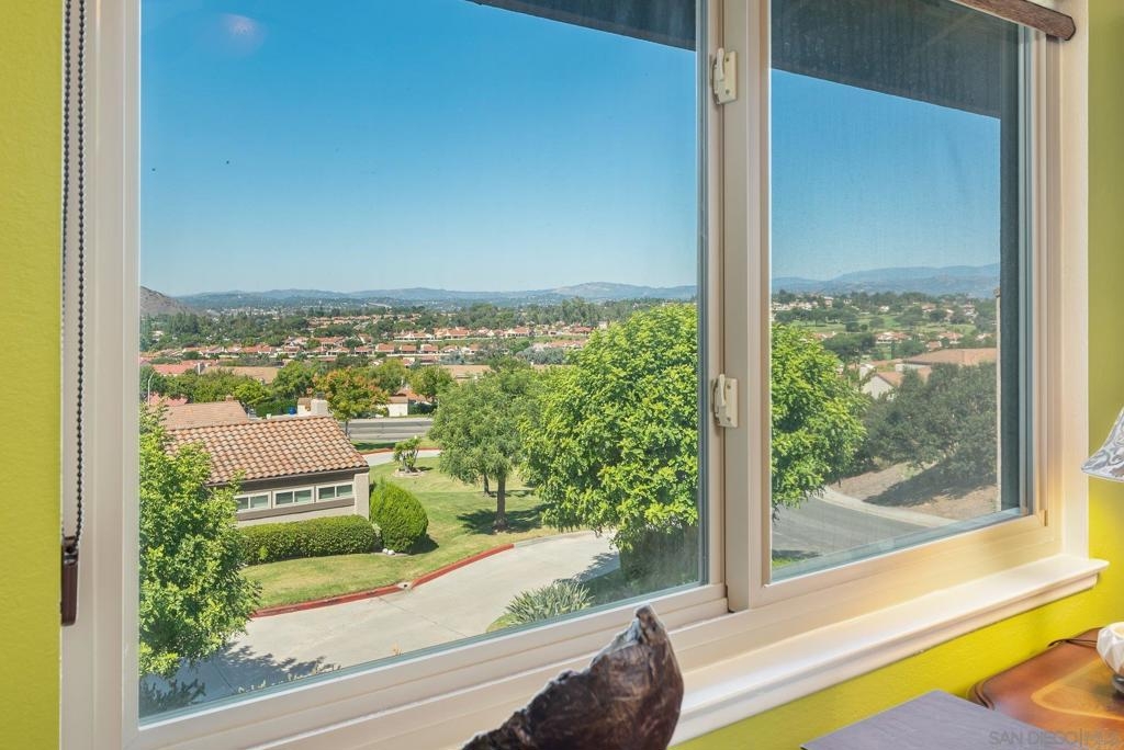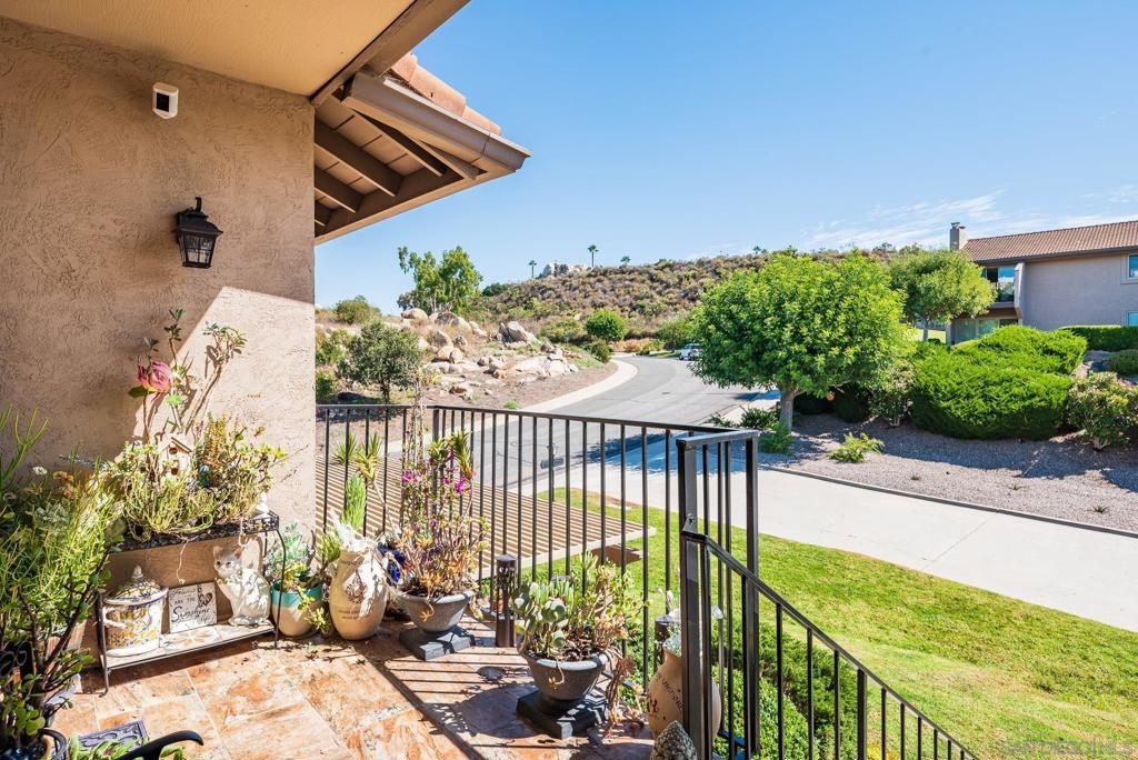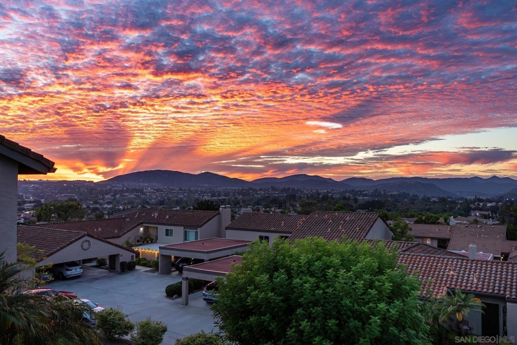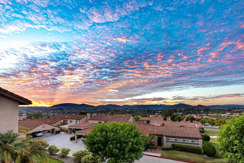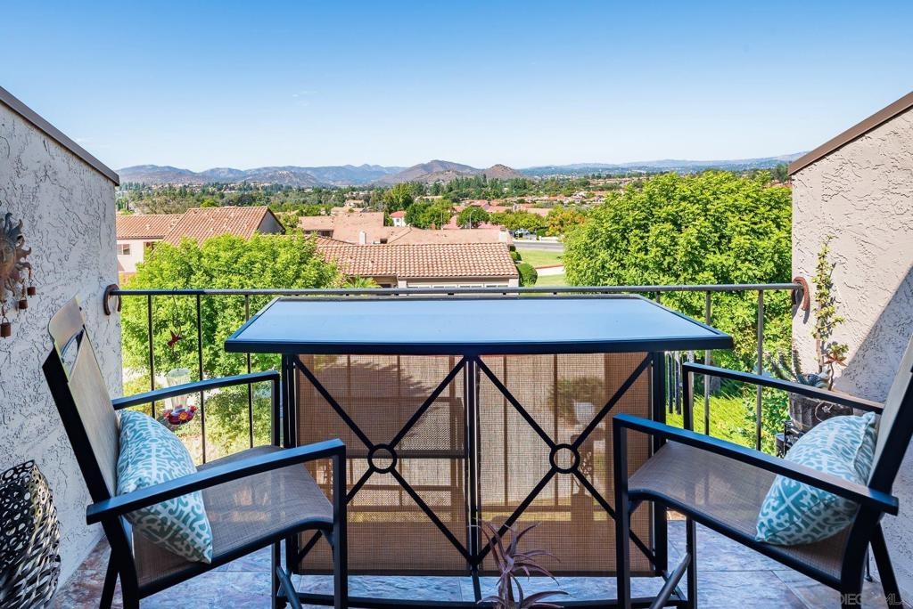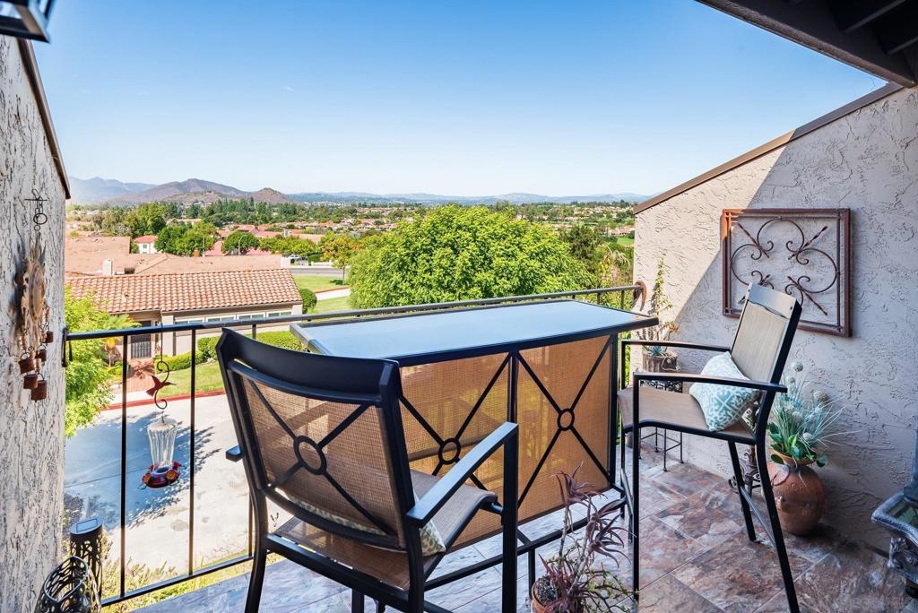 Range Priced $650,000-$675,000. PREMIUM VIEWS and LOCATION. Upper End-Unit elevated atop Plaza Maria is Highly Upgraded. Spacious plan has vaulted ceiling. Elegant custom renovations of the finest quality include systems, kitchen w/expanded entries, baths, plank floors, low-E windows, hardwood doors, Italian tile. 3rd bedroom use is office, prior was bedroom (no closet). Upscale Active 55+ living & Oaks North Community Center: pool/spas/tennis/fitness+ Some photos virtually painted.>SEE TOURS< MUST SEE in person to appreciate! Resort style living in sunny San Diego. Enjoy sunset, mountain and golf course views from the comfort of your home. Private View balcony feels heavenly. The premium location enjoys proximity to the winery & plentiful guest parking. The moment you step inside you’ll be surrounded by first-class upgrades. River rock stone entry leads to "Sonoma" luxury vinyl plank flooring that is waterproof/sound resistant & framed by hand-stained 3” wood baseboards.>The culinary custom kitchen is stunning. Solid wood cabinetry is accented by raised panel doors, crown/base molding & bronze pulls. Cabinet extension includes glass faces + upper curio shelf. Lazy Susan, spice drawer & pull-out dual eco trash bins utilize space. Sealed granite counters w/full backsplash makes for easy care. Stainless “Samsung Suite” appliance package includes double-oven, 4 burner glass cooktop + warmer & double-door refrigerator w/ filtered exterior water/ice dispenser. The deep Cascata under-mount single basin stainless sink boasts a high-arc chef’s faucet and filter switch.>All bathrooms were tastefully upgraded. The ensuite master now includes dual sink basins, Carrera marble countertops and stone shower surround to ceiling. The guest bath boasts authentic Italian tile flooring, stone counters and stone shower surround to ceiling with mosaic pattern accent.>Energy efficiency features include Low-E Windows & Slider, HVAC, Water Heater, Blown attic insulation, Whole house water softener and Solar Tubes in both bathrooms. Several doors are custom “Knotty Alder” solid wood. Electrical was added to the living room ceilings allowing for a light/fan fixture.>Membership to Oaks North Community Center, a 55+ exclusive private use recreational and social facility included. Residents can enjoy the Olympic size pool and spa with sunbathing deck, locker rooms with showers and sauna, and a fitness center. For the creative minded, there is a ceramics, art and wood shop room. Additional sports found here are tennis, lawn bowling, billiards and a game room. The large Auditorium, Library and meeting rooms complete the center. Other activities include well being classes, organized clubs, groups and gaming, and frequent entertainment events.>Oaks North public golf course and Rancho Bernardo Community Park is also nearby.