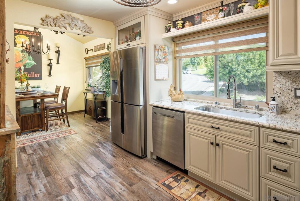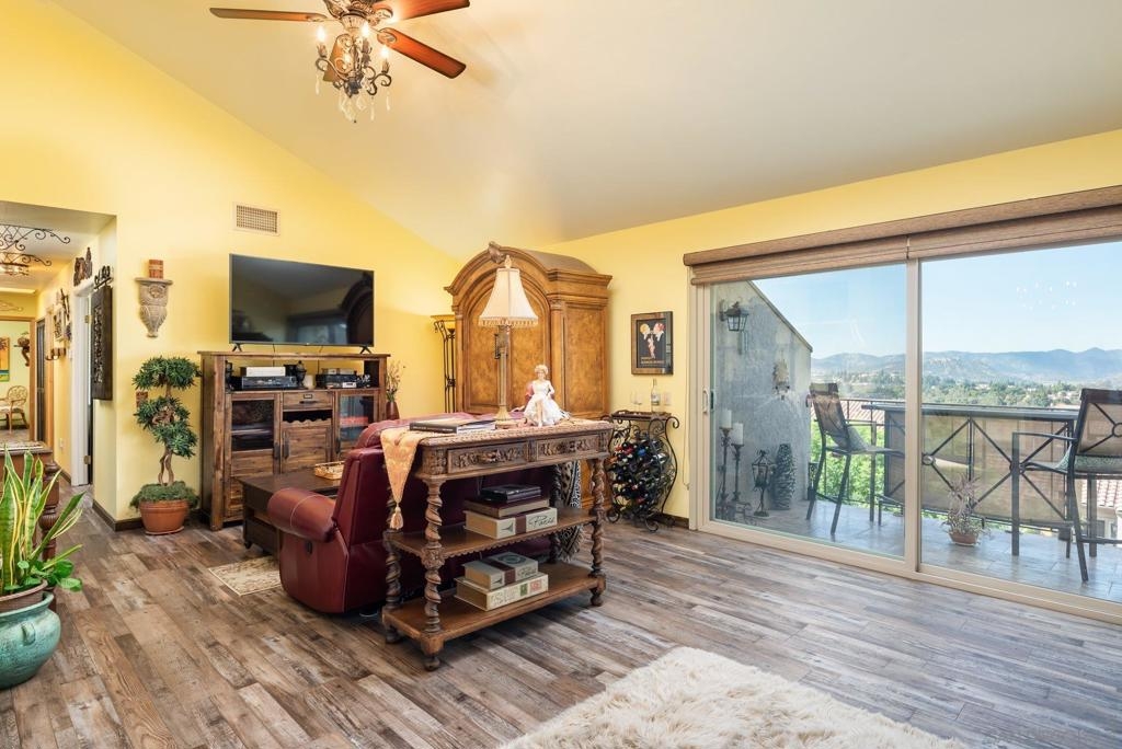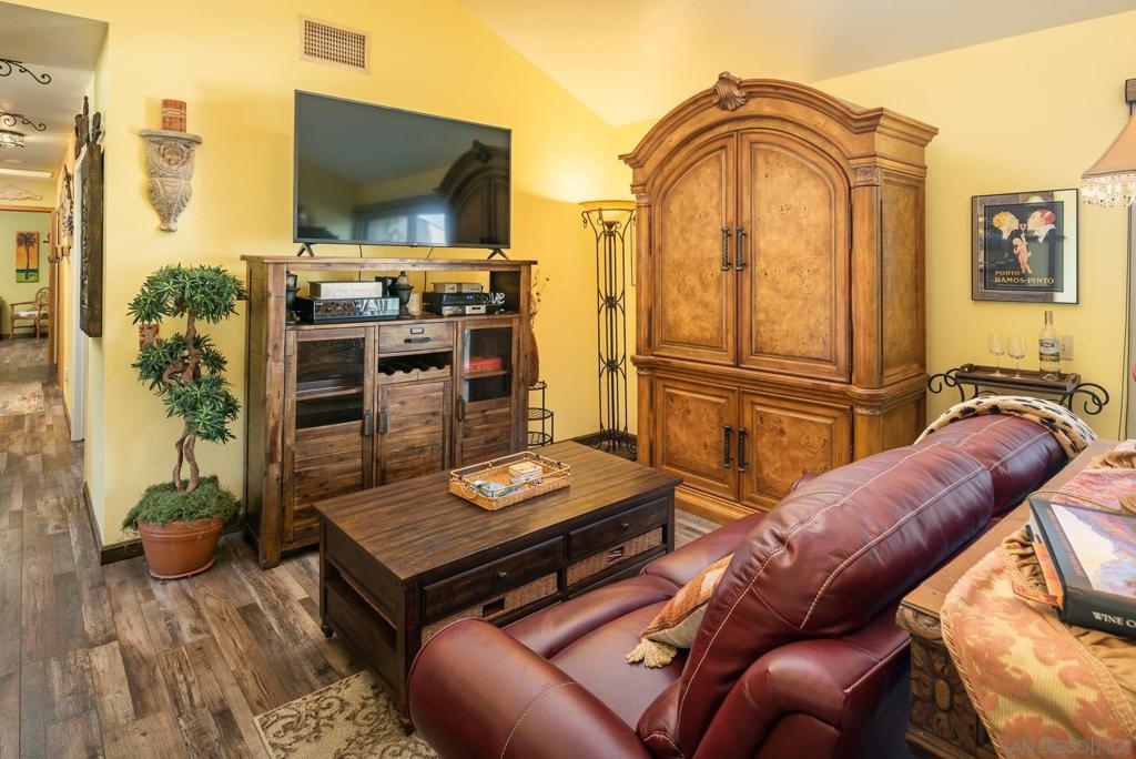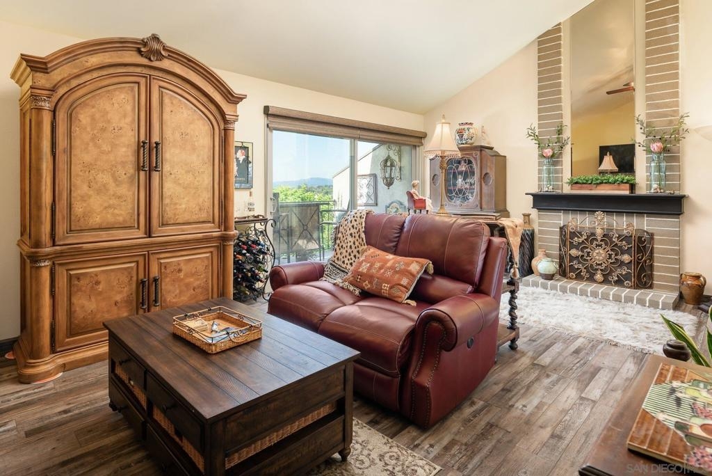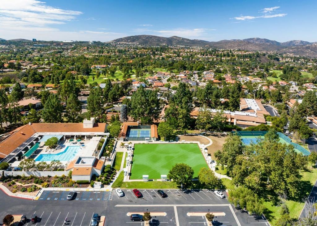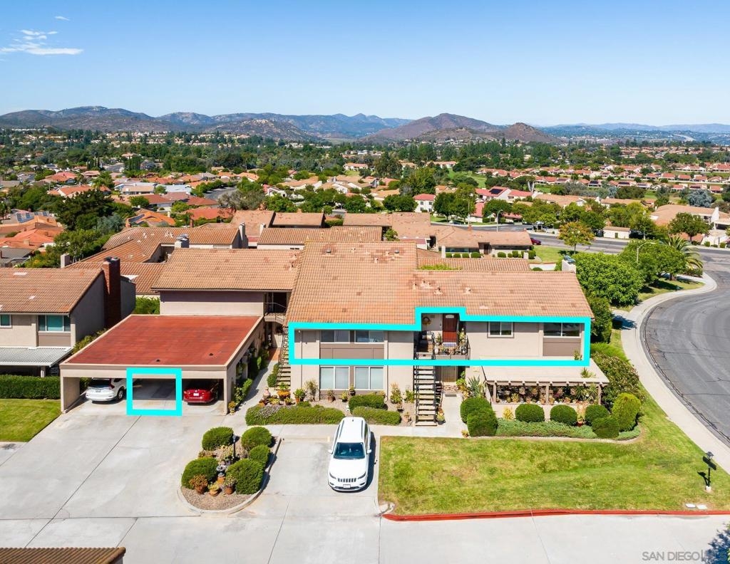 Range Priced $650,000-$675,000. PREMIUM VIEWS and LOCATION. Upper End-Unit elevated atop Plaza Maria is Highly Upgraded. Spacious plan has vaulted ceiling. Elegant custom renovations of the finest quality include systems, kitchen w/expanded entries, baths, plank floors, low-E windows, hardwood doors, Italian tile. 3rd bedroom use is office, prior was bedroom (no closet). Upscale Active 55+ living & Oaks North Community Center: pool/spas/tennis/fitness+ Some photos virtually painted.>SEE TOURS< MUST SEE in person to appreciate! Resort style living in sunny San Diego. Enjoy sunset, mountain and golf course views from the comfort of your home. Private View balcony feels heavenly. The premium location enjoys proximity to the winery & plentiful guest parking. The moment you step inside you’ll be surrounded by first-class upgrades. River rock stone entry leads to "Sonoma" luxury vinyl plank flooring that is waterproof/sound resistant & framed by hand-stained 3” wood baseboards.>The culinary custom kitchen is stunning. Solid wood cabinetry is accented by raised panel doors, crown/base molding & bronze pulls. Cabinet extension includes glass faces + upper curio shelf. Lazy Susan, spice drawer & pull-out dual eco trash bins utilize space. Sealed granite counters w/full backsplash makes for easy care. Stainless “Samsung Suite” appliance package includes double-oven, 4 burner glass cooktop + warmer & double-door refrigerator w/ filtered exterior water/ice dispenser. The deep Cascata under-mount single basin stainless sink boasts a high-arc chef’s faucet and filter switch.>All bathrooms were tastefully upgraded. The ensuite master now includes dual sink basins, Carrera marble countertops and stone shower surround to ceiling. The guest bath boasts authentic Italian tile flooring, stone counters and stone shower surround to ceiling with mosaic pattern accent.>Energy efficiency features include Low-E Windows & Slider, HVAC, Water Heater, Blown attic insulation, Whole house water softener and Solar Tubes in both bathrooms. Several doors are custom “Knotty Alder” solid wood. Electrical was added to the living room ceilings allowing for a light/fan fixture.>Membership to Oaks North Community Center, a 55+ exclusive private use recreational and social facility included. Residents can enjoy the Olympic size pool and spa with sunbathing deck, locker rooms with showers and sauna, and a fitness center. For the creative minded, there is a ceramics, art and wood shop room. Additional sports found here are tennis, lawn bowling, billiards and a game room. The large Auditorium, Library and meeting rooms complete the center. Other activities include well being classes, organized clubs, groups and gaming, and frequent entertainment events.>Oaks North public golf course and Rancho Bernardo Community Park is also nearby.