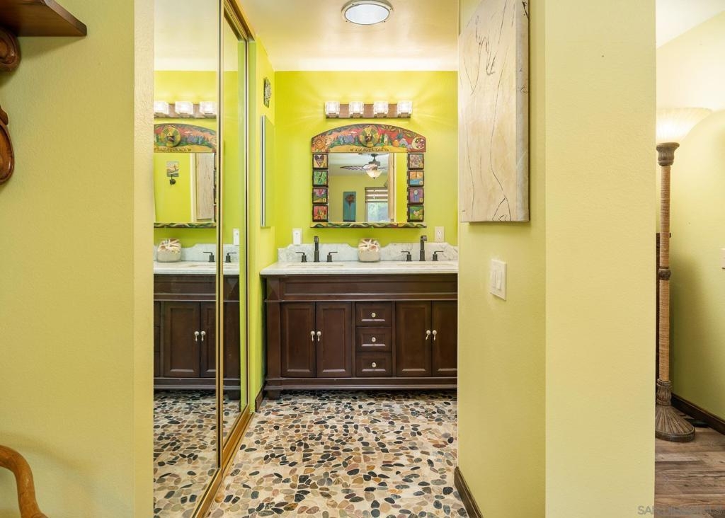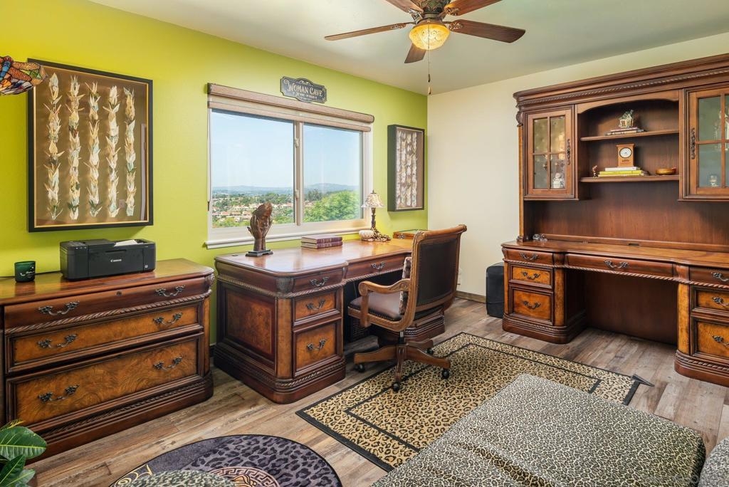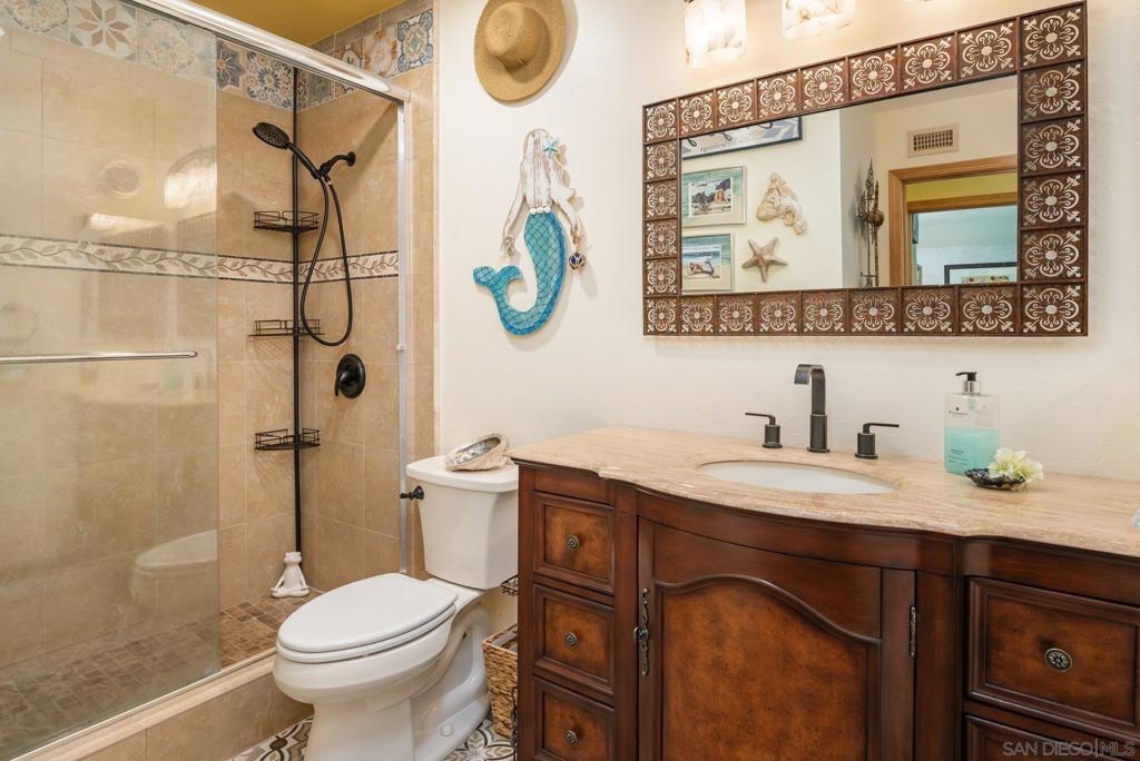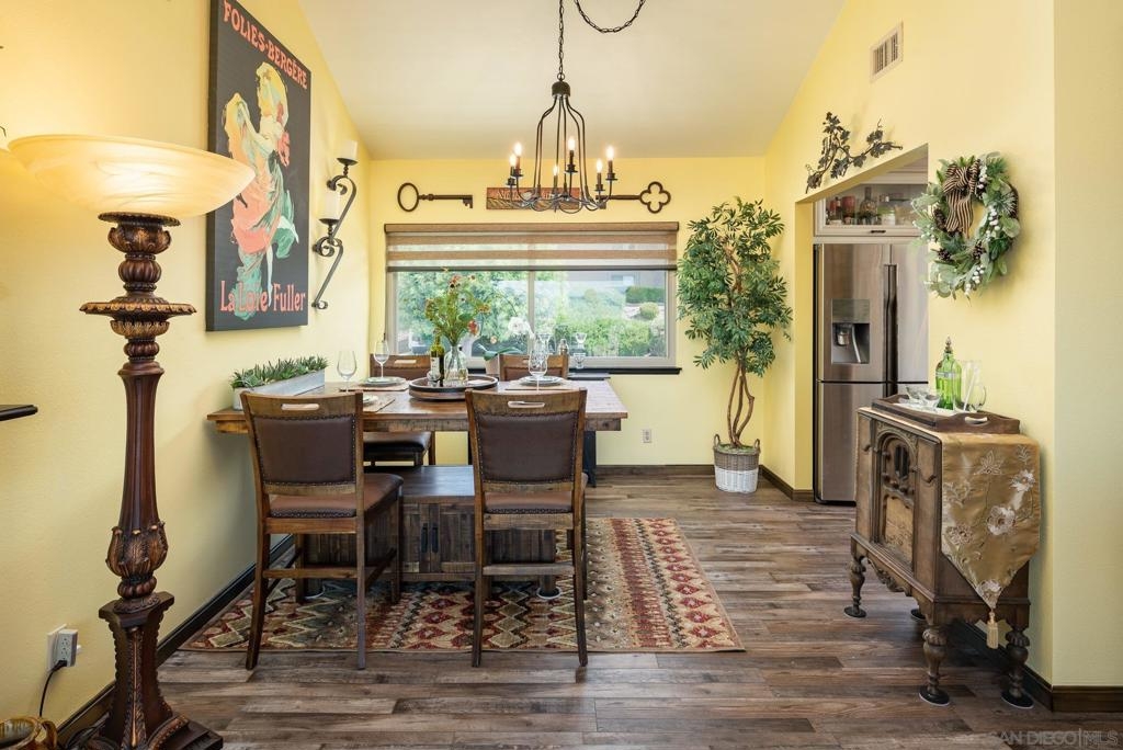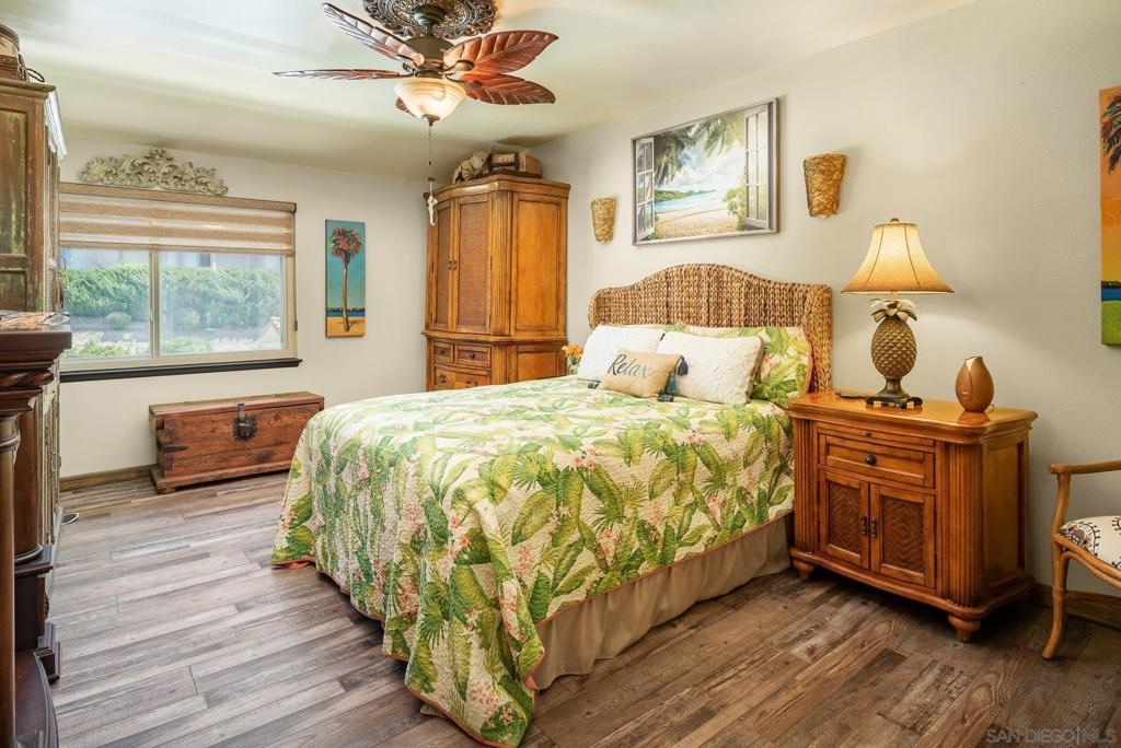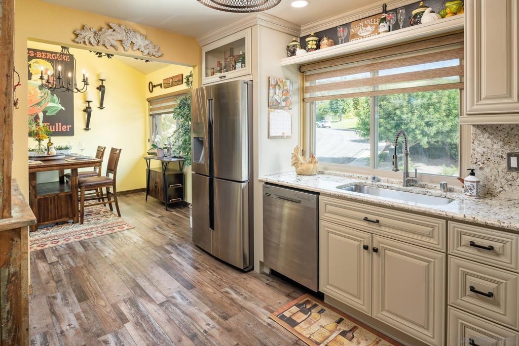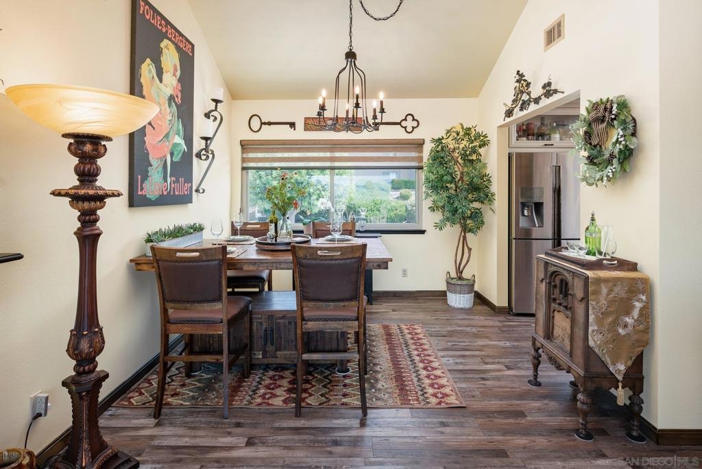 Range Priced $650,000-$675,000. PREMIUM VIEWS and LOCATION. Upper End-Unit elevated atop Plaza Maria is Highly Upgraded. Spacious plan has vaulted ceiling. Elegant custom renovations of the finest quality include systems, kitchen w/expanded entries, baths, plank floors, low-E windows, hardwood doors, Italian tile. 3rd bedroom use is office, prior was bedroom (no closet). Upscale Active 55+ living & Oaks North Community Center: pool/spas/tennis/fitness+ Some photos virtually painted.>SEE TOURS< MUST SEE in person to appreciate! Resort style living in sunny San Diego. Enjoy sunset, mountain and golf course views from the comfort of your home. Private View balcony feels heavenly. The premium location enjoys proximity to the winery & plentiful guest parking. The moment you step inside you’ll be surrounded by first-class upgrades. River rock stone entry leads to "Sonoma" luxury vinyl plank flooring that is waterproof/sound resistant & framed by hand-stained 3” wood baseboards.>The culinary custom kitchen is stunning. Solid wood cabinetry is accented by raised panel doors, crown/base molding & bronze pulls. Cabinet extension includes glass faces + upper curio shelf. Lazy Susan, spice drawer & pull-out dual eco trash bins utilize space. Sealed granite counters w/full backsplash makes for easy care. Stainless “Samsung Suite” appliance package includes double-oven, 4 burner glass cooktop + warmer & double-door refrigerator w/ filtered exterior water/ice dispenser. The deep Cascata under-mount single basin stainless sink boasts a high-arc chef’s faucet and filter switch.>All bathrooms were tastefully upgraded. The ensuite master now includes dual sink basins, Carrera marble countertops and stone shower surround to ceiling. The guest bath boasts authentic Italian tile flooring, stone counters and stone shower surround to ceiling with mosaic pattern accent.>Energy efficiency features include Low-E Windows & Slider, HVAC, Water Heater, Blown attic insulation, Whole house water softener and Solar Tubes in both bathrooms. Several doors are custom “Knotty Alder” solid wood. Electrical was added to the living room ceilings allowing for a light/fan fixture.>Membership to Oaks North Community Center, a 55+ exclusive private use recreational and social facility included. Residents can enjoy the Olympic size pool and spa with sunbathing deck, locker rooms with showers and sauna, and a fitness center. For the creative minded, there is a ceramics, art and wood shop room. Additional sports found here are tennis, lawn bowling, billiards and a game room. The large Auditorium, Library and meeting rooms complete the center. Other activities include well being classes, organized clubs, groups and gaming, and frequent entertainment events.>Oaks North public golf course and Rancho Bernardo Community Park is also nearby.