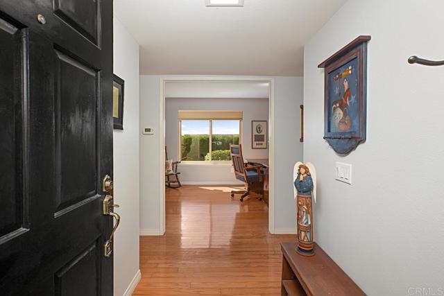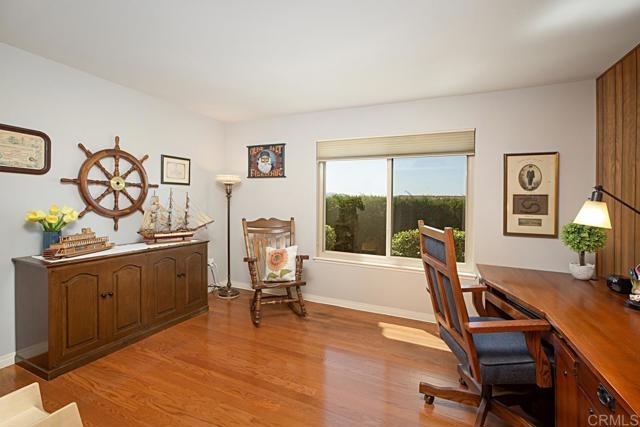Welcome to this inviting single-level home featuring 2 bedrooms plus a den/office in Oaks North (over 55 community). Enter through the tranquil, expansive patio area with a charming pergola, perfect for outdoor entertaining and relaxation. Inside discover elegant wood floors that add warmth and character to the space, creating a welcoming ambiance throughout the home. Cozy up by the designer electric fireplace (gas still in place if desired), adding a touch of luxury to your living area and just off the living space is another private patio providing a serene setting for enjoying the outdoors. The remodeled kitchen is a standout feature, boasting ample counter space, a farm sink overlooking the tranquil patio, custom cabinetry showcasing a thoughtful design focused on efficiency and style. Whether you're preparing a meal or organizing your kitchen essentials, this space is tailored to meet your needs. The remodeled baths feature quartz counters, custom cabinetry and designer tile showers, adding a touch of sophistication to your daily routine. With updated windows and upgrades throughout this home it is a real gem. The covered carport includes a spacious walk-in storage closet and easily accessible guest parking. Residents of this community can enjoy access to the Community Center which includes a pool, spa, pickle ball courts, lawn bowling, fitness center, sauna and library. Just down the street is the Bernardo Winery and farmers market on specific days. This community has so much to offer.