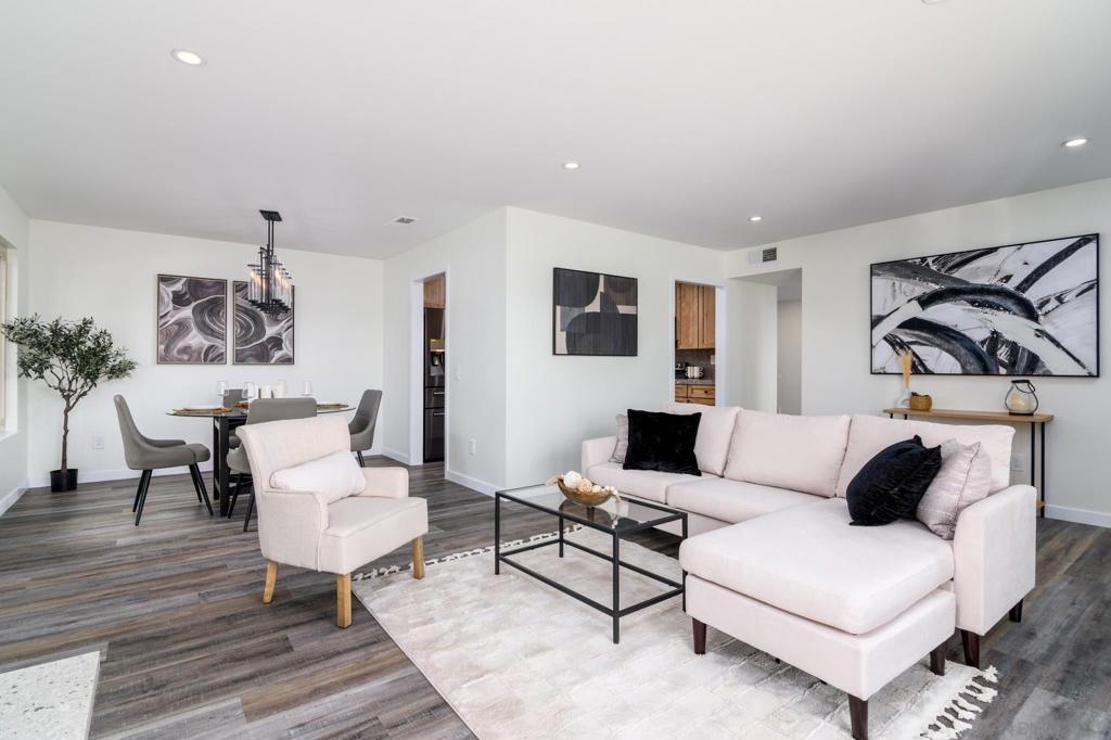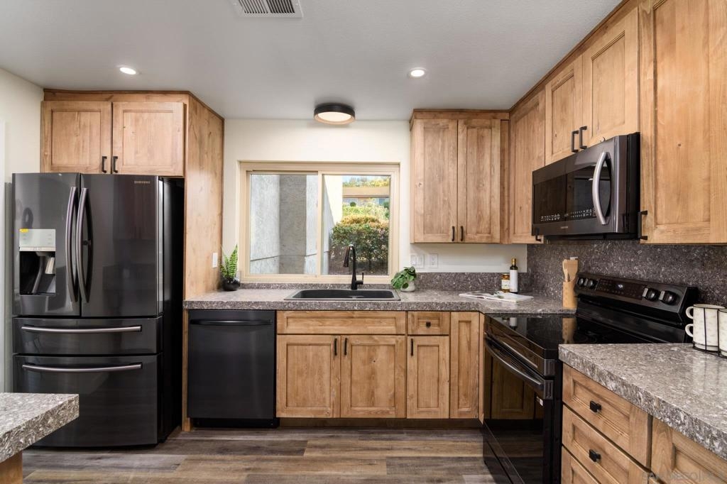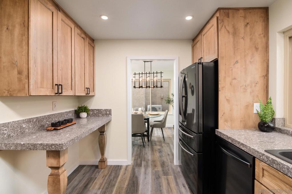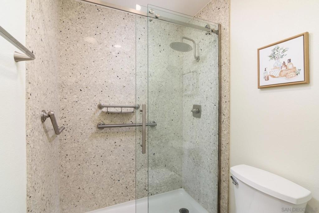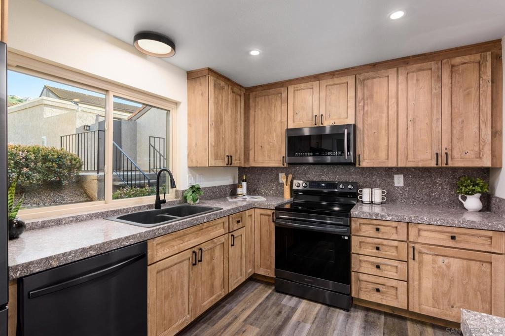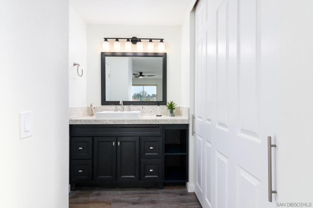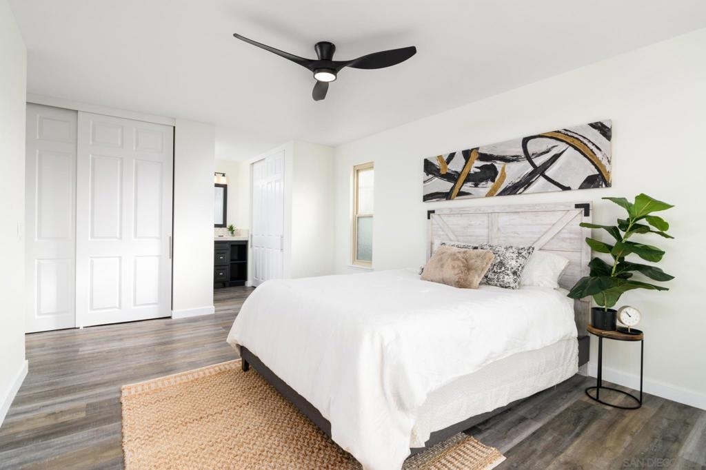 Beautifully renovated single level 2-bedroom home plus optional 3rd bedroom/office, **rare oversized 1-car garage, indoor laundry, and breathtaking panoramic mountain views!** Corner unit located in the highly desirable 55+ active community of Oaks North, this turnkey home offers both privacy and a prime location set high above the community. Full renovation includes **new oak kitchen cabinets, high-end sleek black stainless steel appliances, large deep sink, new central A/C with Nest thermostat, new dual pane vinyl windows**, new floor to ceiling designer tile fireplace with TV outlet and gas burning fireplace, luxury vinyl plank flooring throughout, upgraded baseboards and trim, modern doors, and closet organizers with new doors. Enjoy full-size indoor laundry and upgraded LED can lighting with a stylish “halo” feature throughout. Both bathrooms have been meticulously remodeled with full stone slab showers, premium "Delta" fixtures, "Kohler" sinks and toilets, new elegant vanities, and designer lighting. Enjoy gorgeous mountain and evening light views from the primary bedroom while lying in bed, complete with dual closets and a beautifully redesigned en suite bathroom. HOA dues include ***cable/internet, water, trash, and sewer,*** plus access to a resort-style community center with pool, spa, fitness center, tennis and pickleball courts, lawn bowling, social events, and more! Located in the highly desirable 55+ community of Oaks North in Rancho Bernardo, this neighborhood offers an unbeatable combination of active lifestyle, serene surroundings, and prime location. Residents enjoy resort-style amenities including a pool, spa, fitness center, tennis and pickleball courts, lawn bowling, library, and countless social clubs and activities. The community is beautifully maintained and offers stunning golf course and mountain views, along with peaceful walking paths and a friendly, welcoming atmosphere. With low HOA fees that include cable, internet, water, and access to the premier community center, Oaks North is perfect for those seeking a vibrant yet relaxed lifestyle. Just minutes from shopping, dining, golf, wineries, and the freeway, it's the ideal blend of comfort, convenience, and community.