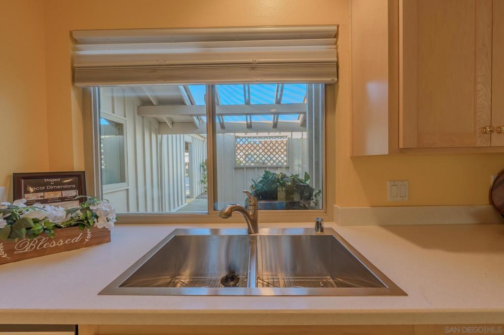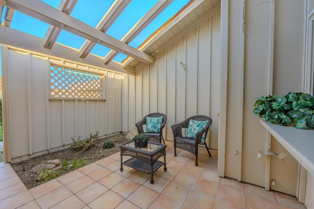 Welcome to the 55+ community of Oaks North! Light and bright single story 2-bedroom condo features 2 private tiled patios. New roof currently being installed! The kitchen has Staron counters, refaced cabinets with pullout drawers and the updated bathroom has a solar tube. Upgrades include newer window treatments, windows, doors, flooring and tile. Enjoy the covered carport with walk-in storage unit, in unit stackable laundry, and no one above or below you! HOA fees include water and cable. New roof just installed! The Oaks North Community Center features amenities like swimming, tennis, pickleball, lawn bowling and club activities.