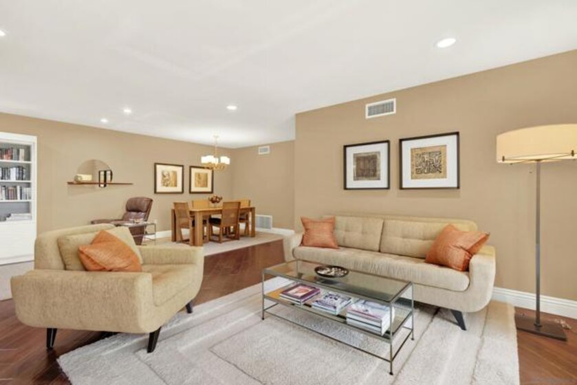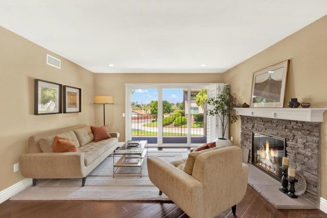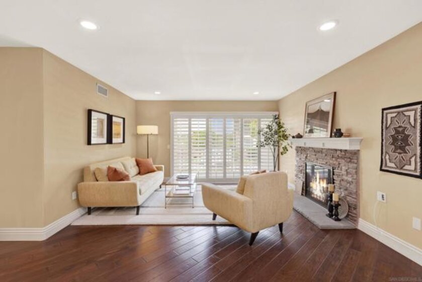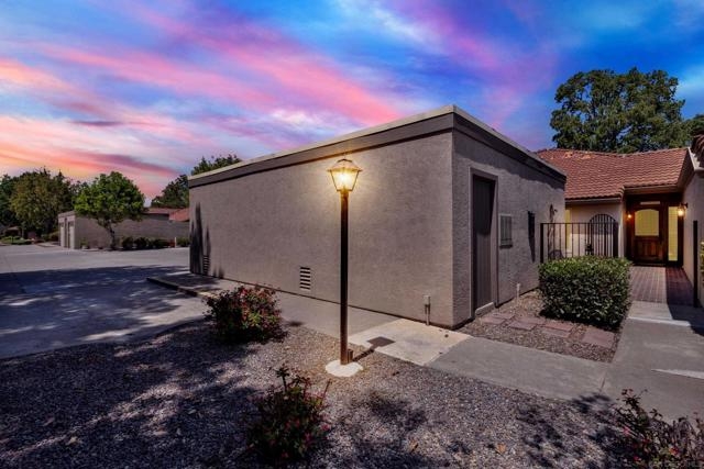 This is the one! Definitely a must see for those seeking a one story, turnkey property with a private & secluded location! With no one above or below & no steps or stairs, you will be living in a beautifully upgraded home with Patagonian rosewood engineered flooring, granite countertops throughout, high end GE appliances, recessed lighting, custom cabinetry & modernized vinyl windows. This unit has a prime location at the end of a cul-de-sac and a peek at the Oaks North Executive golf course from the living room balcony and kitchen. The living room also has a highly upgraded electric fireplace with stacked stone, a mantel and recessed lighting. The front, paver courtyard is flanked by a comfortable sitting area, remote controlled awning, custom front door & easy access to your one car garage.