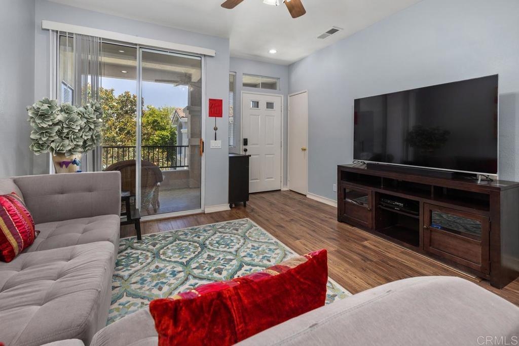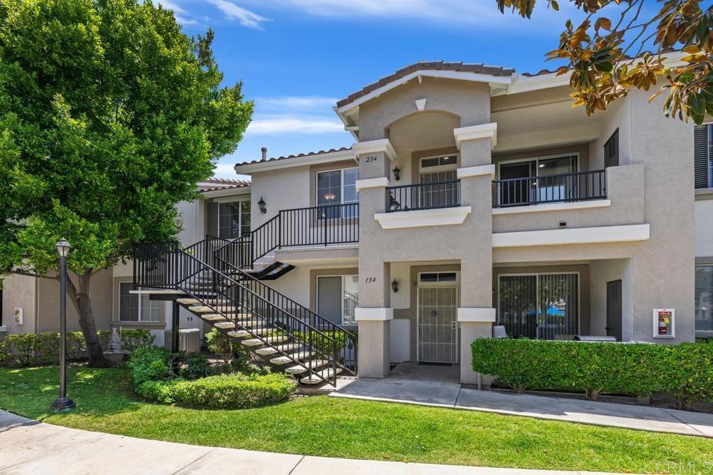 Welcome to this beautifully updated 2-bedroom, 2-bath upstairs condominium located in the highly sought-after Poway Unified School District. This home features an open-concept layout that seamlessly connects the living area to the modern kitchen, complete with gleaming cabinetry, updated countertops, and stainless-steel appliances. Enjoy the comfort of wood laminate flooring throughout the main living area, cozy carpet in the bedrooms, indoor laundry, and a spacious primary suite with an updated bath featuring dual sinks and a walk-in shower. The community offers resort-style amenities including a pool, spa, and gym. You'll also appreciate the convenience of one covered parking space, ample guest parking, easy freeway access, and proximity to public transportation, shopping, and dining. A perfect combination of style, comfort, and location—this is one you won’t want to miss!