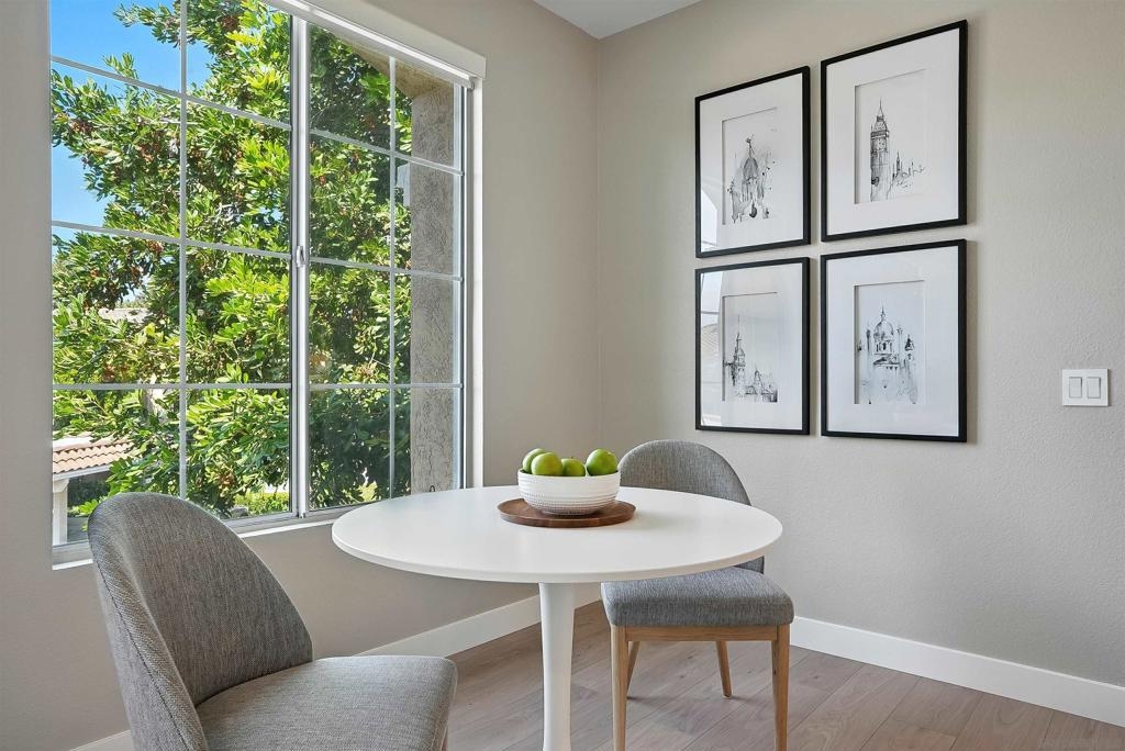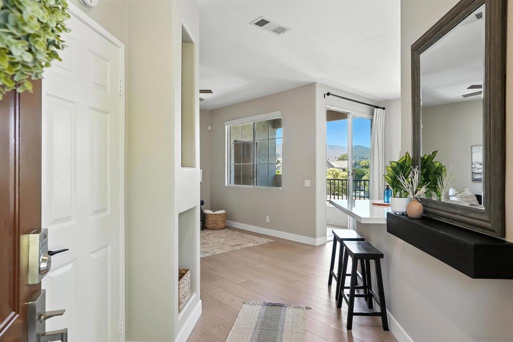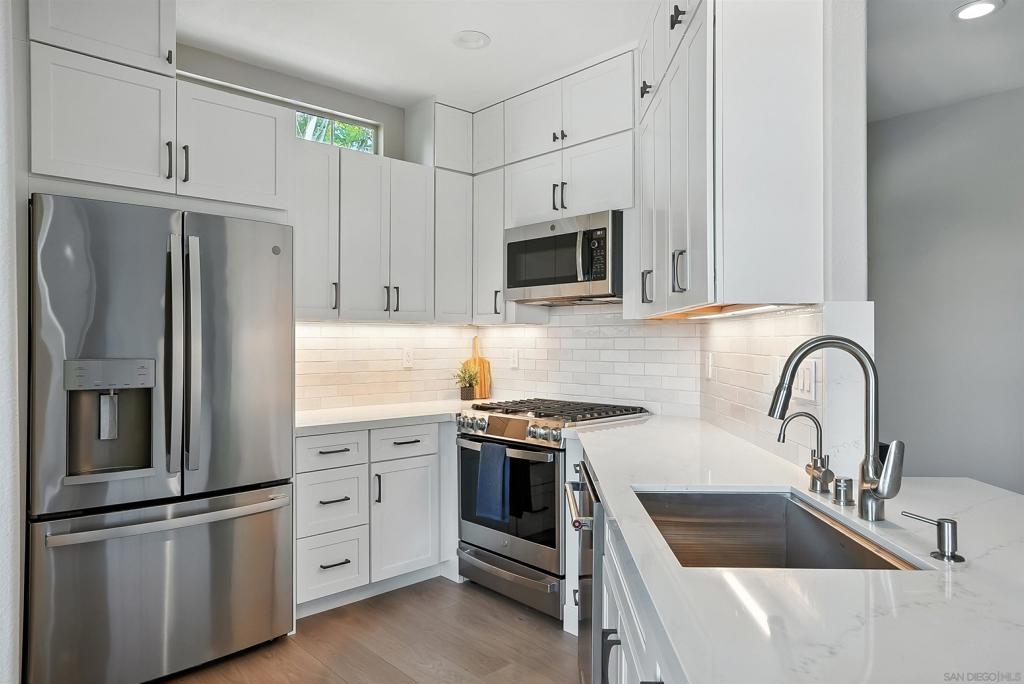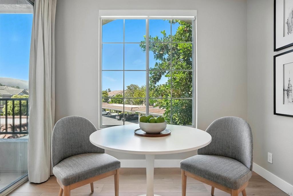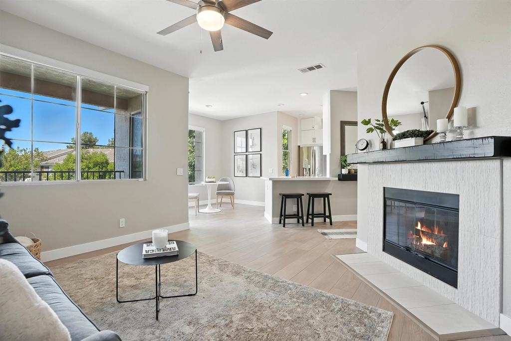 Welcome to 10728 Sabre Hill Dr, Unit 240, located in the desirable Palo Alto community of Sabre Springs, within the award-winning Poway Unified School District. This beautifully remodeled 2-bedroom, 2-bath condo offers modern upgrades, smart home features, and a prime location with easy access to I-15, State Route 56, and convenient carpool lanes. The kitchen has been tastefully updated with white stacked shaker cabinetry, soft-close drawers, quartz countertops, a ceramic tile backsplash, deep basin sink, Insta-hot filtered water, under cabinet lighting, and stainless-steel appliances including a 5-burner gas stove and side-by-side refrigerator. Throughout the home, enjoy luxury vinyl flooring with QuietWalk cork-foam underlay, LED recessed lighting, chair rail accents, and fresh paint. The open floor plan offers excellent natural light and a cozy, stone-accented fireplace with a mantle. Both bathrooms have been thoughtfully updated with new vanities, comfort-height Toto commodes, humidity-sensing fans, and stylish finishes. The Mountain View balcony features a tucked-away storage room with newer storage racks for added space. Additional highlights include ample storage with custom living room nooks, built-ins in both bedroom closets, blackout bedroom shades, in-unit full-size laundry, upgraded 6-panel doors with modern lever hardware, three ceiling fans, USB outlets, Nest thermostat, Ring doorbell, smart entry keypad, and a one-car garage with extra storage. The Palo Alto community offers resort-style amenities including a sparkling pool, spa, and fitness center, all set within beautifully maintained grounds. With top-rated schools, parks, shopping, dining, and easy commuter access nearby, this home delivers the ideal combination of comfort, security, and modern living in one of San Diego’s most desirable neighborhoods.