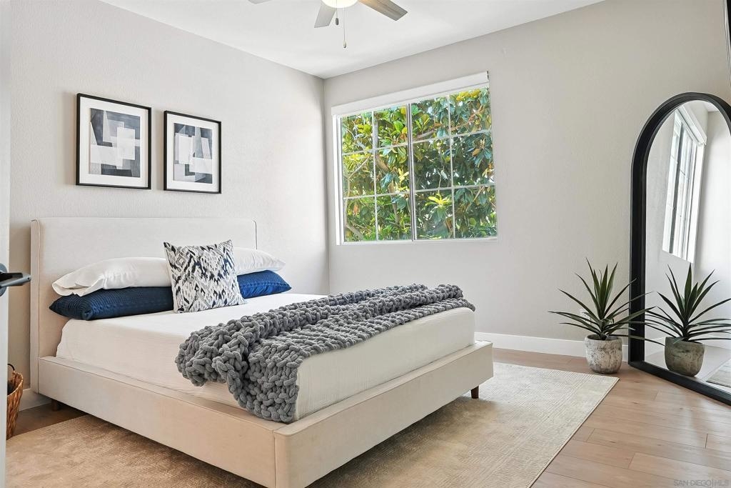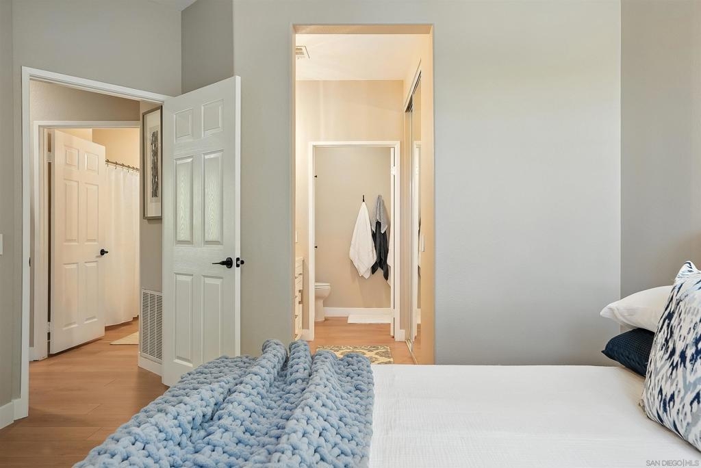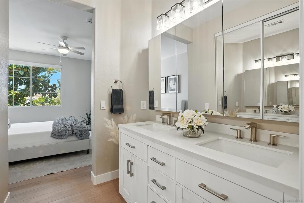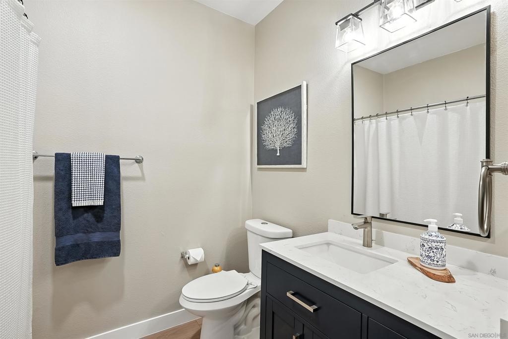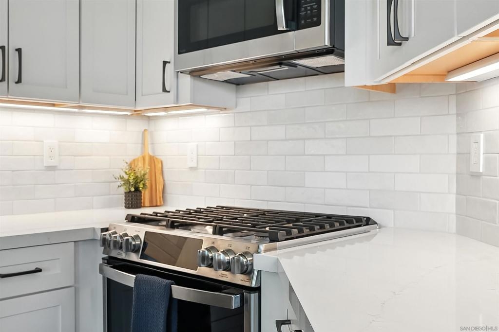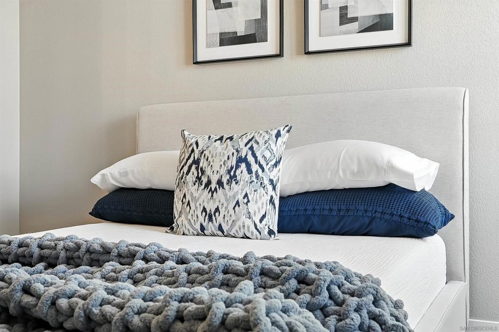 Welcome to 10728 Sabre Hill Dr, Unit 240, located in the desirable Palo Alto community of Sabre Springs, within the award-winning Poway Unified School District. This beautifully remodeled 2-bedroom, 2-bath condo offers modern upgrades, smart home features, and a prime location with easy access to I-15, State Route 56, and convenient carpool lanes. The kitchen has been tastefully updated with white stacked shaker cabinetry, soft-close drawers, quartz countertops, a ceramic tile backsplash, deep basin sink, Insta-hot filtered water, under cabinet lighting, and stainless-steel appliances including a 5-burner gas stove and side-by-side refrigerator. Throughout the home, enjoy luxury vinyl flooring with QuietWalk cork-foam underlay, LED recessed lighting, chair rail accents, and fresh paint. The open floor plan offers excellent natural light and a cozy, stone-accented fireplace with a mantle. Both bathrooms have been thoughtfully updated with new vanities, comfort-height Toto commodes, humidity-sensing fans, and stylish finishes. The Mountain View balcony features a tucked-away storage room with newer storage racks for added space. Additional highlights include ample storage with custom living room nooks, built-ins in both bedroom closets, blackout bedroom shades, in-unit full-size laundry, upgraded 6-panel doors with modern lever hardware, three ceiling fans, USB outlets, Nest thermostat, Ring doorbell, smart entry keypad, and a one-car garage with extra storage. The Palo Alto community offers resort-style amenities including a sparkling pool, spa, and fitness center, all set within beautifully maintained grounds. With top-rated schools, parks, shopping, dining, and easy commuter access nearby, this home delivers the ideal combination of comfort, security, and modern living in one of San Diego’s most desirable neighborhoods.