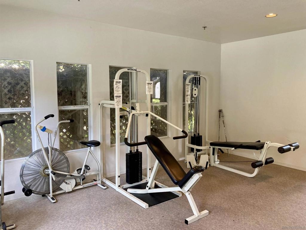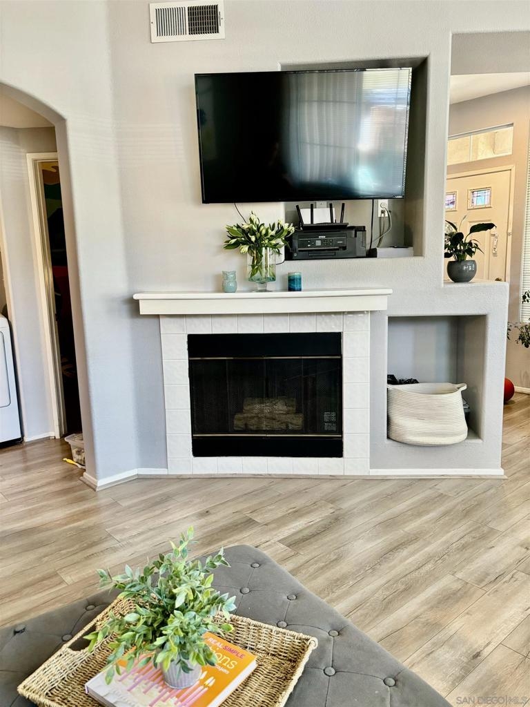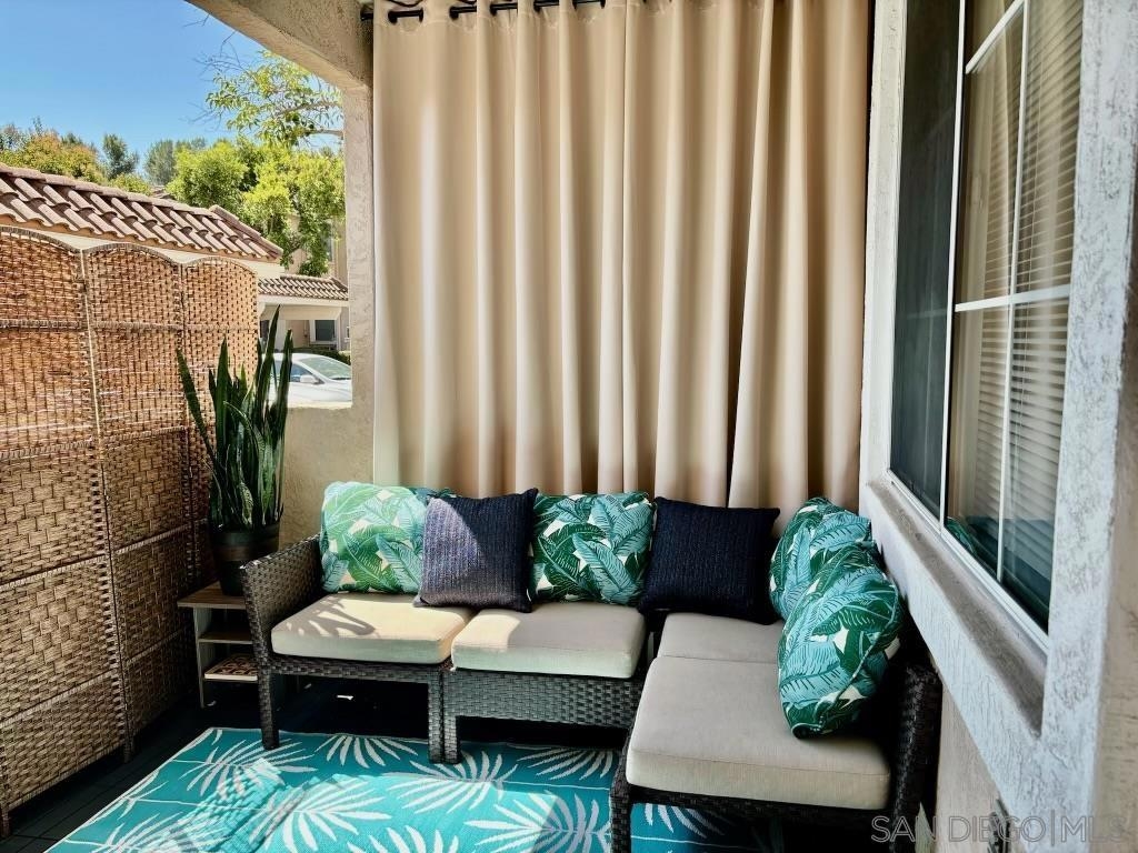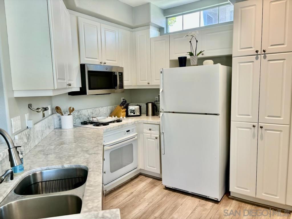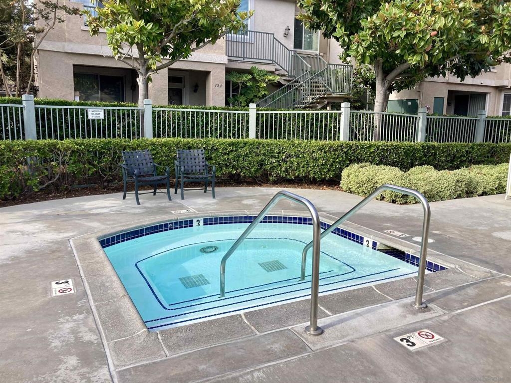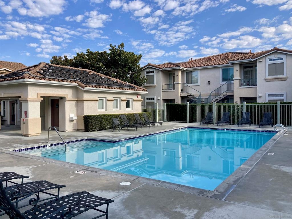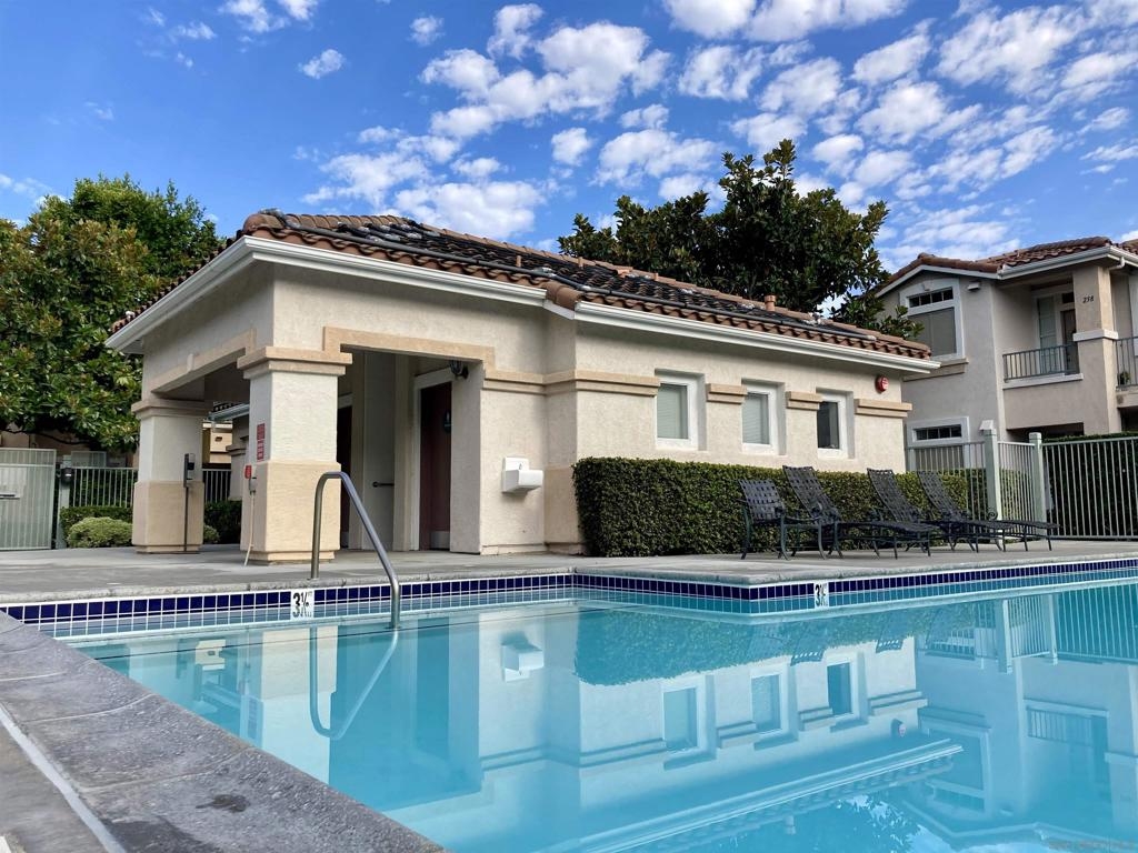 Desirable open-concept floor plan features a stunning gas burning fireplace, ceiling fans, newer air conditioning, spacious rooms, open kitchen with Carrara marble countertops, white cabinetry and two full baths! This rare downstairs unit was recently upgraded with newer appliances, attractive landscape throughout the complex. Enjoy cooking in your light, bright kitchen that includes energy-saving appliances, gas stove, and ample storage! Primary bedroom features plenty of natural light and generous closet space. Hall bath with shower over tub and single sink. Conveniently situated in-unit washer & dryer. Inviting community pool and spa are ideal for water activities and the fitness center is centrally located. Delight in nearby parks, trails, and top-rated Poway Unified School District.