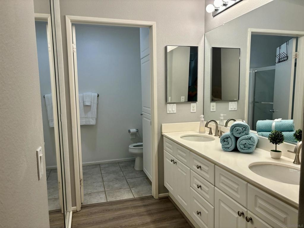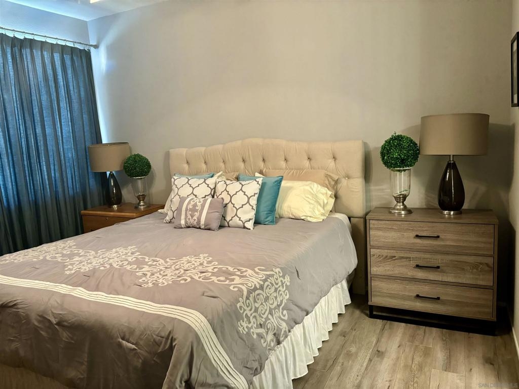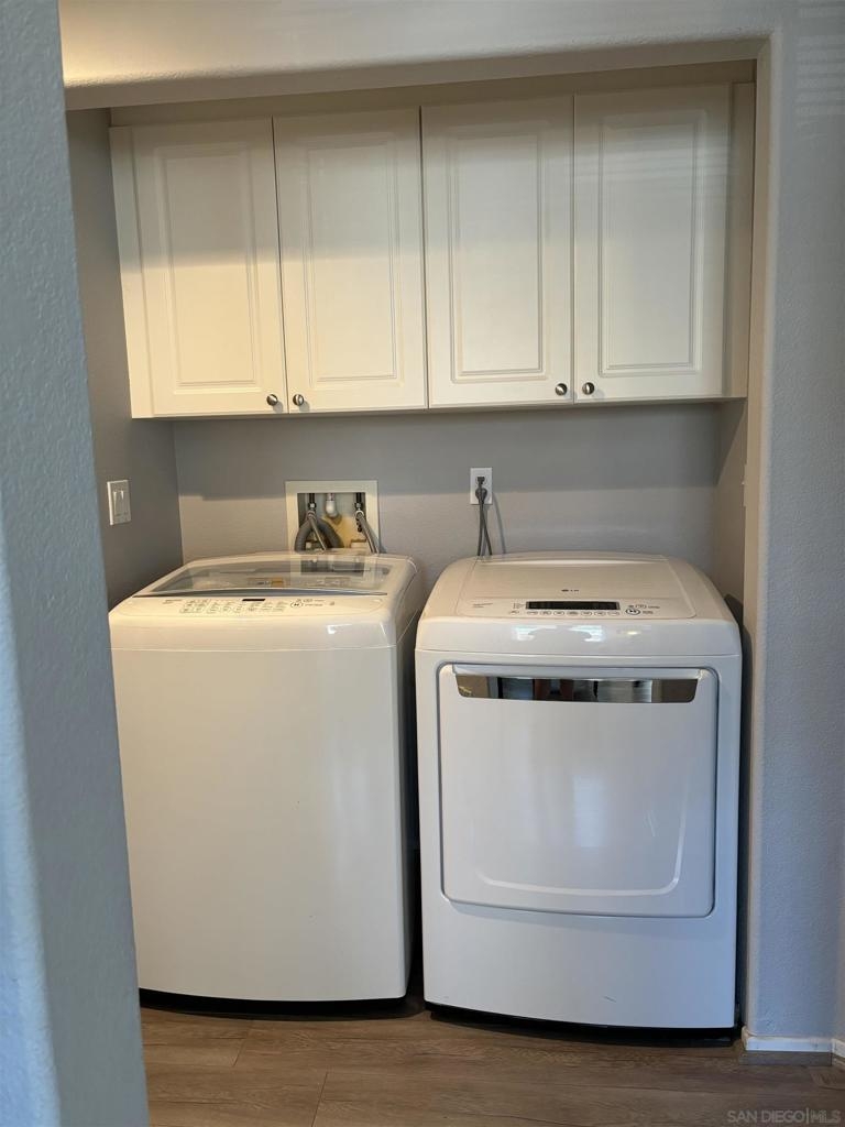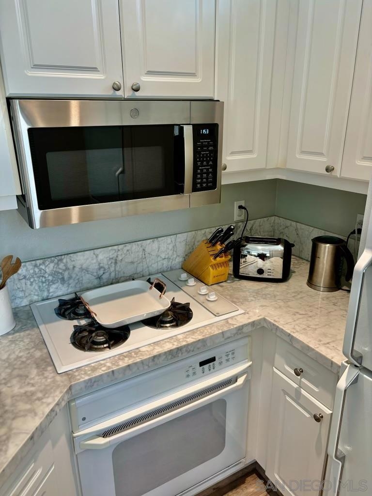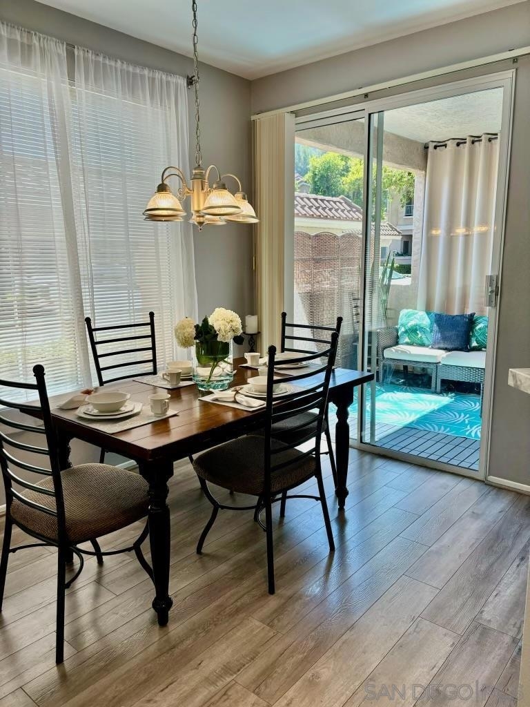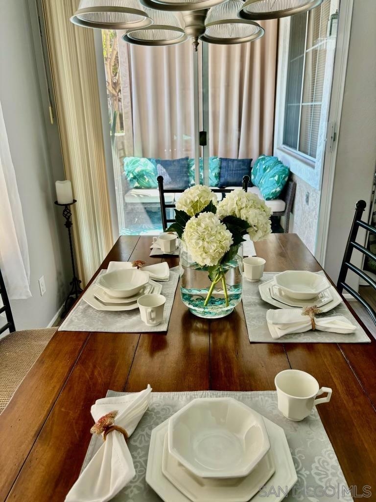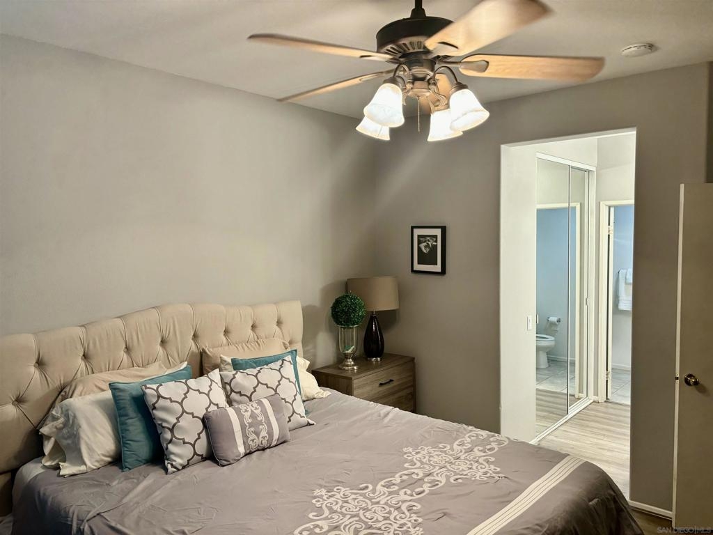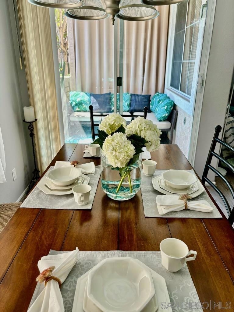 Desirable open-concept floor plan features a stunning gas burning fireplace, ceiling fans, newer air conditioning, spacious rooms, open kitchen with Carrara marble countertops, white cabinetry and two full baths! This rare downstairs unit was recently upgraded with newer appliances, attractive landscape throughout the complex. Enjoy cooking in your light, bright kitchen that includes energy-saving appliances, gas stove, and ample storage! Primary bedroom features plenty of natural light and generous closet space. Hall bath with shower over tub and single sink. Conveniently situated in-unit washer & dryer. Inviting community pool and spa are ideal for water activities and the fitness center is centrally located. Delight in nearby parks, trails, and top-rated Poway Unified School District.