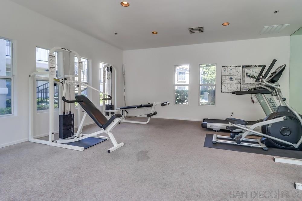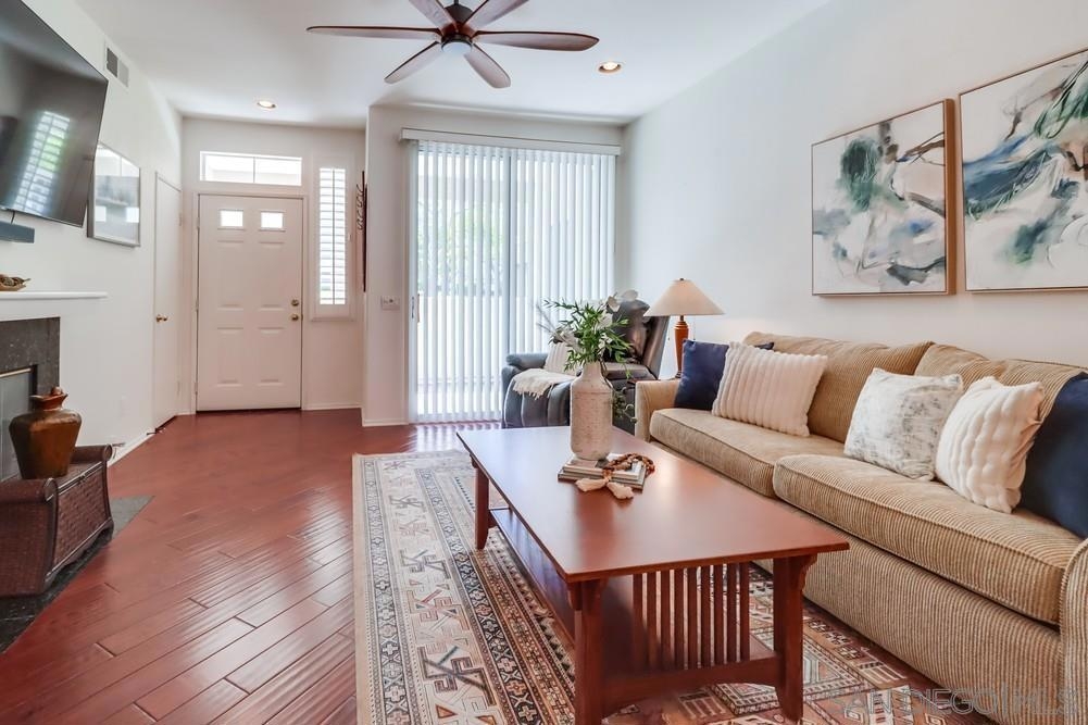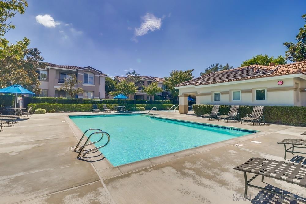 This stylish 2 bedroom, 2 bath condominium is located in the much sought-after Palo Alto community of Sabre Springs. The desirable ground level corner unit offers a premium location with an open concept layout, distressed plank hardwood floors, new carpeting, custom plantation shutters, ceiling fans, a cozy fireplace, and abundant natural light. Enjoy a spacious private patio, covered parking, and plenty of guest parking. The resort style complex features lushly landscaped grounds, a sparkling pool, spa, and fitness center. Ideally situated near top-rated schools, shopping, dining, parks, entertainment and all that San Diego has to offer. This is not to be missed!