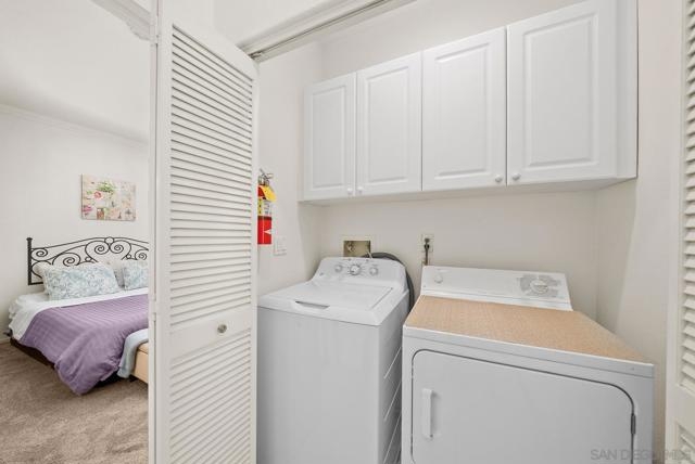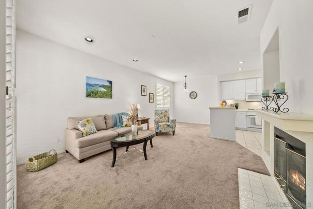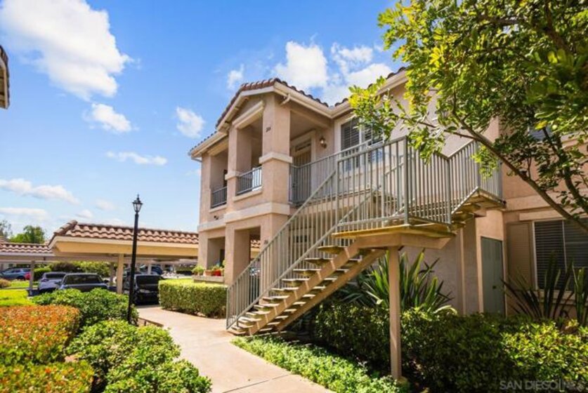 Welcome to your new home in the highly sought after Sabre Springs neighborhood! This immaculate and beautifully maintained coveted 2nd story 2-bedroom, 2-bathroom condo offers the perfect blend of comfort, convenience, and style. The open concept living room is perfect for relaxing or entertaining, featuring large windows that fill the space with natural light and a cozy fireplace. Plantation shutters and newer carpeting are throughout the home. The kitchen is equipped with a brand-new Bosch dishwasher and has a gas stove. Enjoy the privacy of your primary suite with an en-suite bathroom, two closets (one with built-in drawers) and lovely crown moulding. Both bedrooms have great natural lighting. For added convenience, the condo includes an in-unit washer and dryer. Step outside to your private balcony, perfect for morning tea or evening relaxation. The condo comes with one assigned, covered parking space and ample guest parking within the complex. Take a dip in the sparkling community pool, relax in the spa or stay active at the fitness center. Situated near I-15 and Ted Williams Parkway. Close to shopping centers, restaurants, and entertainment options. Minutes away from local parks and hiking trails - perfect for outdoor enthusiasts. Located within the highly rated Poway Unified School District. Don’t miss out on this opportunity to live in a wonderful community with all the amenities you could ask for. Schedule a tour today and make this charming condo your new home!