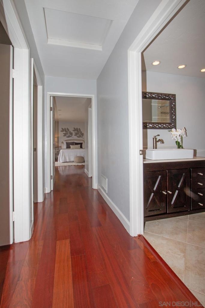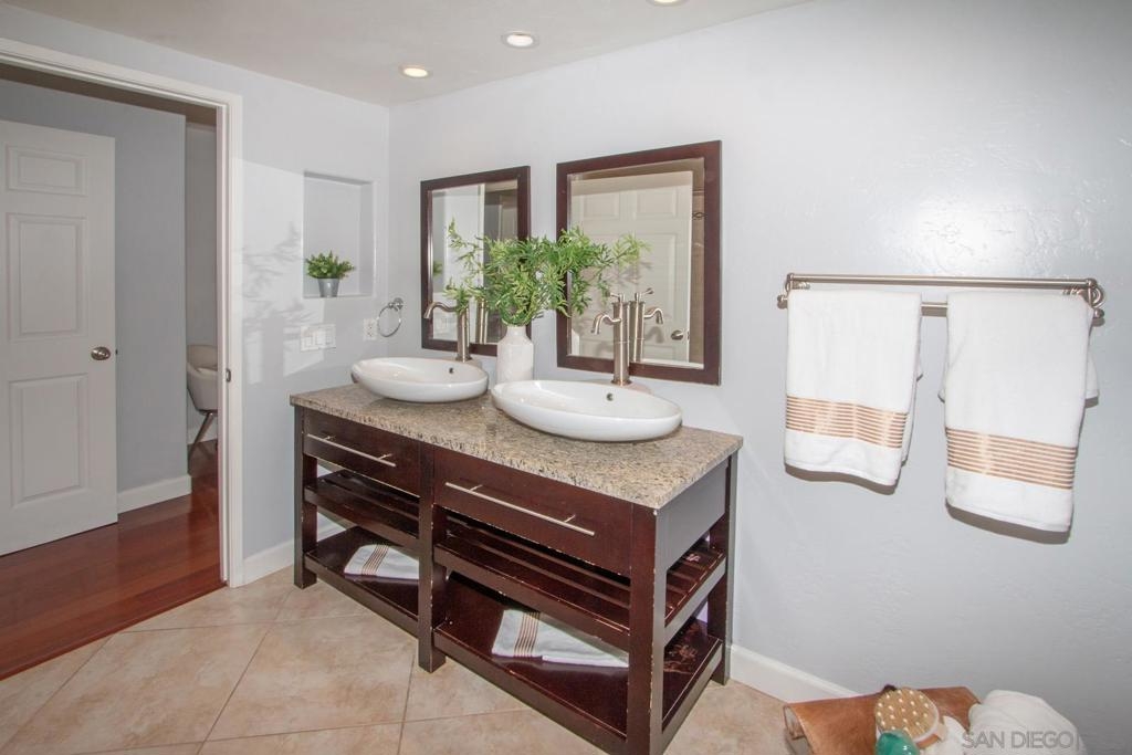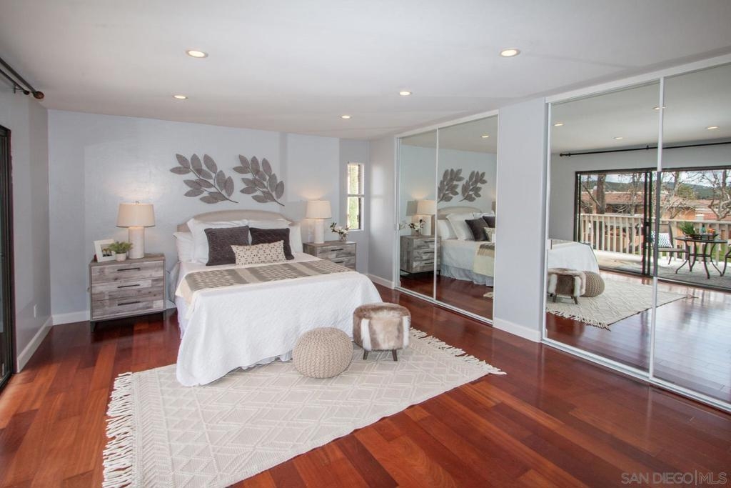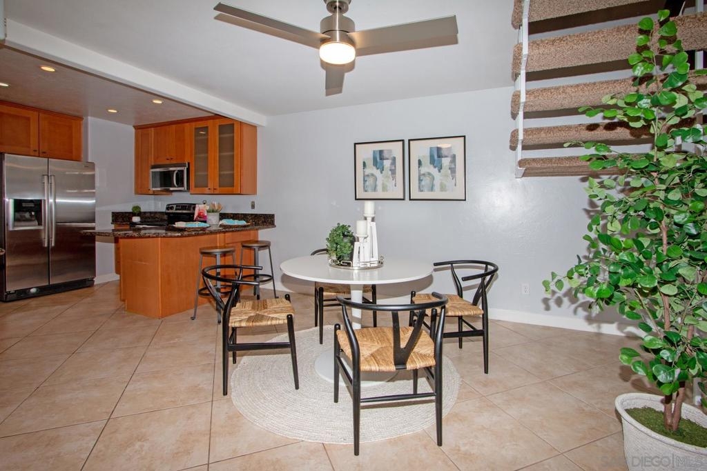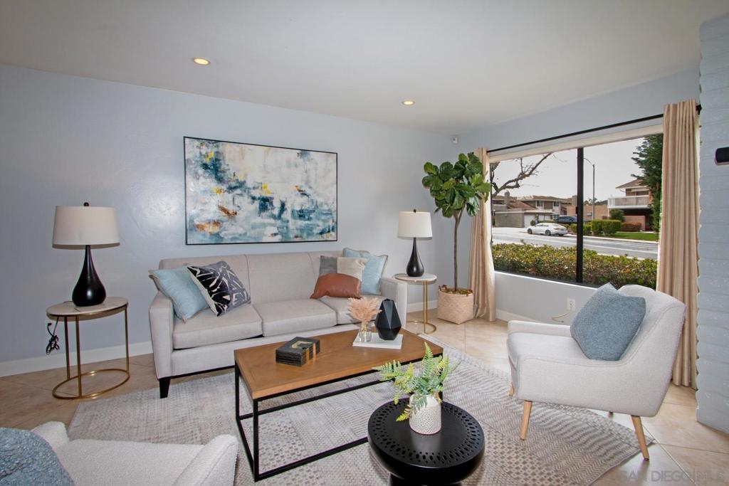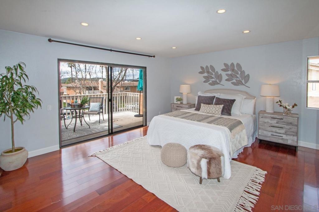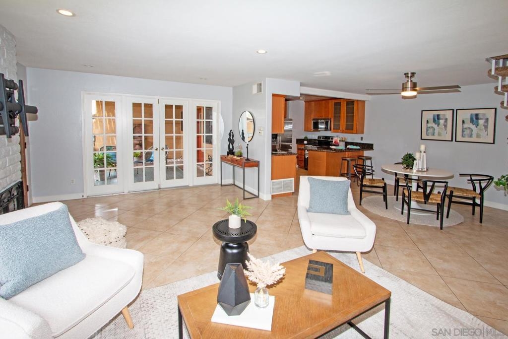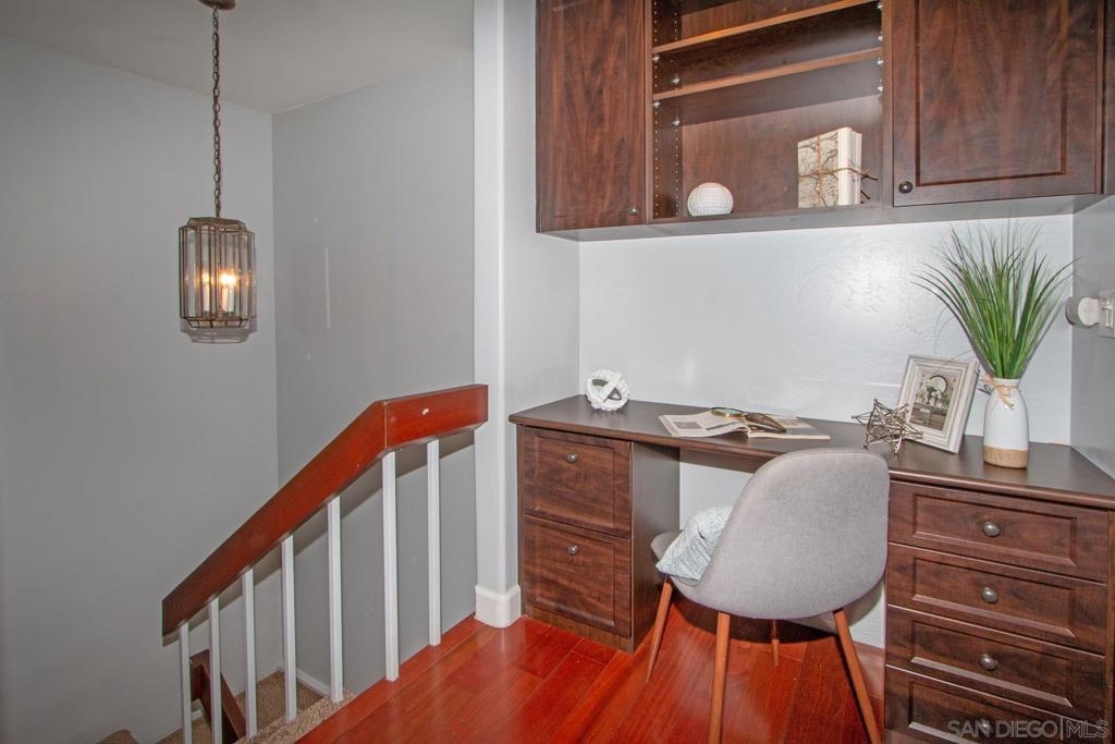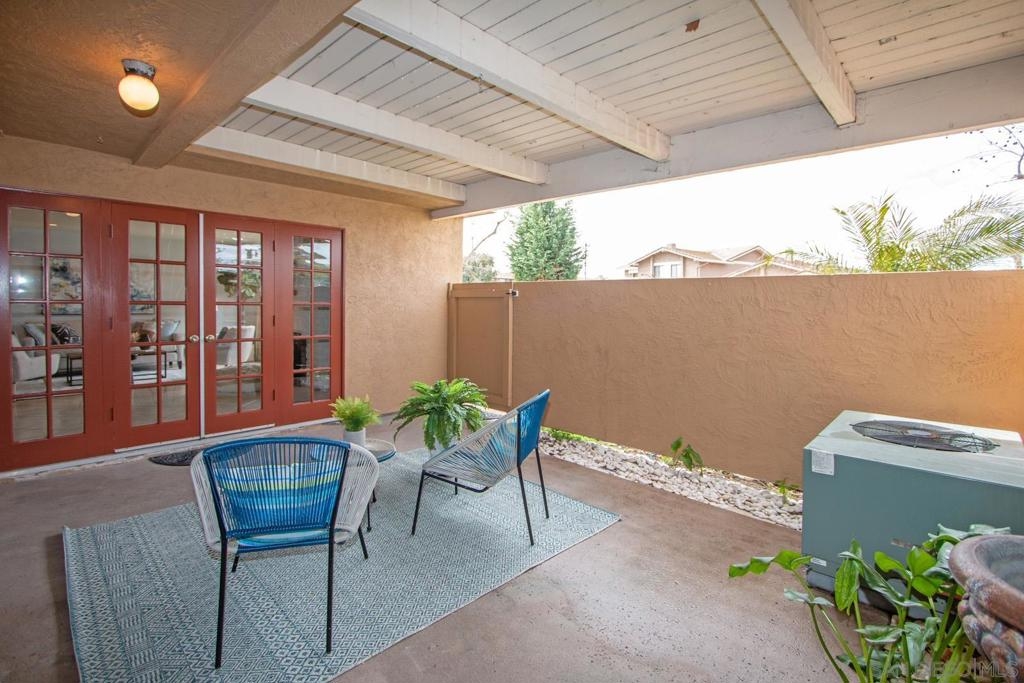 This is a delightful two-story condominium located in the San Diego neighborhood of Rancho Bernardo. The area is surrounded by hills and beautiful views of the nearby mountains. The neighborhood is close to shopping, dining, churches, schools, public transportation, and entertainment. It is also conveniently located near the freeways 56, 163, and 15, making it easy to get around the city, and about 20 miles to the beach, and three lakes, for boating, hiking, and biking. This home has an upstairs balcony off the Primary and second bedrooms, with a view of the nearby hills and gorgeous Sunsets! The primary bathroom sports dual closets with shelves, double elegant sinks, and a Jacuzzi bathtub. Downstairs, besides the front door, you can enter through a spacious fenced in patio – ideal for tykes with bikes – through French doors into the Living room or the Kitchen/utility area – so convenient for hauling groceries! Here you will find the closeted washer and dryer, newer furnace and water heater, plus numerous pantry cupboards. The complex sports 2 swimming pools with Jacuzzis, a tennis court, and basketball court, all included with low HOA fees. No Mello-Roos. The living room screams entertainment with a wide-open floor plan to dining room and kitchen. Think, Super Bowl Games, Academy Awards, and other special events, around the cozy fireplace. This is a home you can continue to grow into over the years! And it’s ideal for a home business! Come on by!