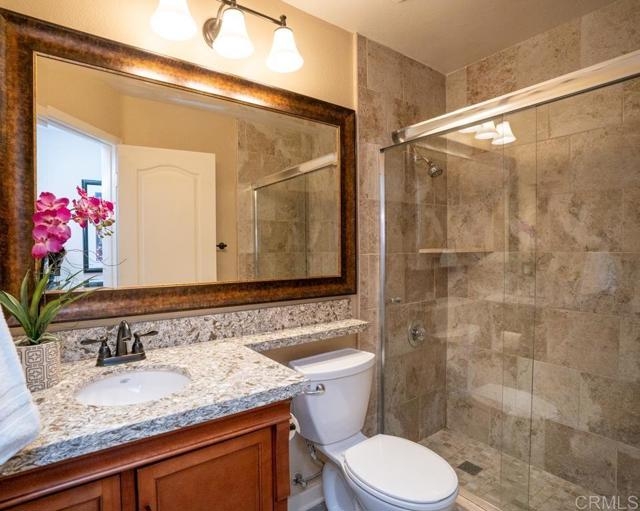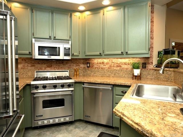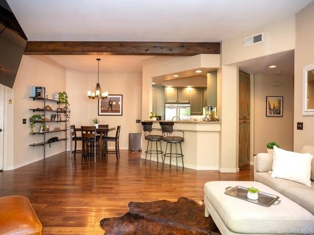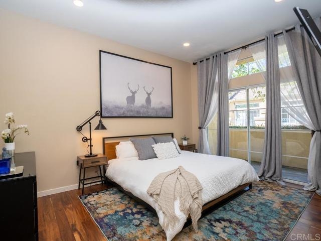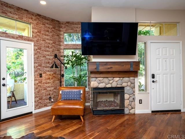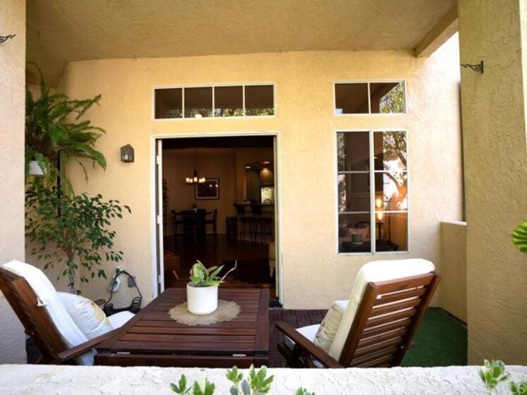 Beautifully upgraded, light & bright, stunning single story corner unit tucked away in the lovely gated community of Provencal. Relax & enjoy two outdoor patios off of living room & master bedroom, creating an expansive living experience. Gorgeous wood flooring, w/contemporary color palette featuring brick accent walls & rock fireplace in the living room. Fabulous French doors open from living room onto spacious outdoor patio, w/deck flooring & green, park-like views. Kitchen features stainless Viking appliances & granite counter tops. Lovely open floorplan flows from kitchen into living & dining areas w/bar area for conversation & entertaining. Updated master & guest baths w/granite countertops. Two car, side-by-side garage w/ direct access from laundry room. Top of the line washer/dryer to convey. Fantastic Carmel Mountain Ranch location near shops, recreation center, restaurants, cafes & movies. Short hop to the 56 & 15 freeways in this top rated Poway Unified School district. Video & Pics show Community Pool, entry & aerial view of surroundings.