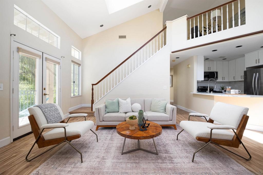 Welcome to this beautifully updated 2-bedroom 2-bath home with loft nestled in the highly desirable gated community of Provencal in Carmel Mountain Ranch. With its high ceilings, abundant natural light, and thoughtfully refreshed interiors, this residence offers the perfect blend of style, comfort, and convenience. Step into a spacious open-concept layout featuring soaring ceilings and a light-filled living area that flows effortlessly to a private balcony - ideal for relaxing or entertaining. Featuring elegant laminate wood and ceramic tile flooring throughout. A cozy fireplace anchors the living space, adding warmth and charm to your everyday moments. The kitchen has been tastefully upgraded with brand-new stainless steel appliances, including a dishwasher, microwave, and range - perfect for the modern chef. The adjacent dining area and breakfast bar create a welcoming space to gather and entertain. The primary suite offers a serene retreat with ample closet space and a private ensuite bath. The second bathroom has been stylishly renovated, featuring a brand new vanity with a contemporary mirror, elevating the space with a fresh, modern touch. Additional highlights include an in-unit laundry room, attached two-car garage with direct access, and community amenities such as a resort-style pool and spa, lush landscaping, and the security of a gated community. Located in the top-rated Poway Unified School District and just minutes from shopping, dining, golf, and major freeways. This home is the perfect blend of peace, privacy, and practicality!
