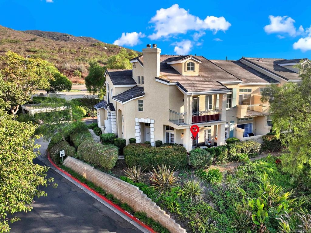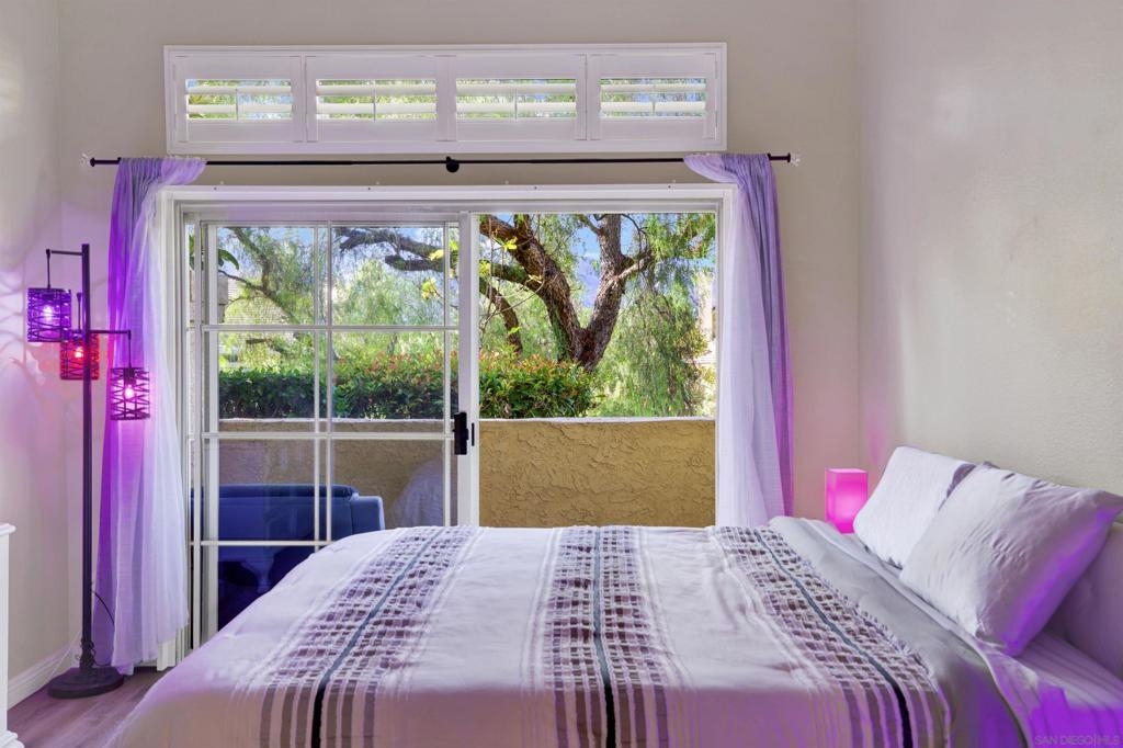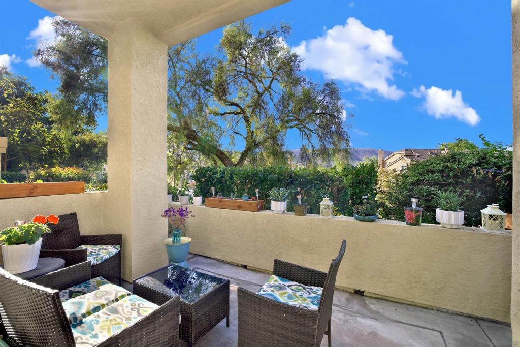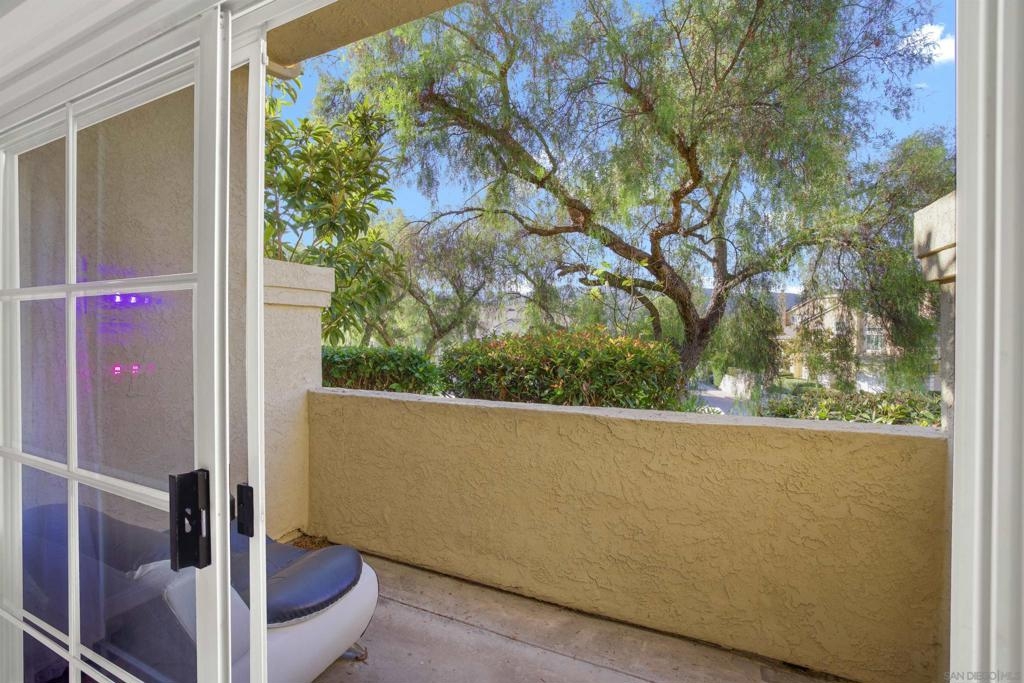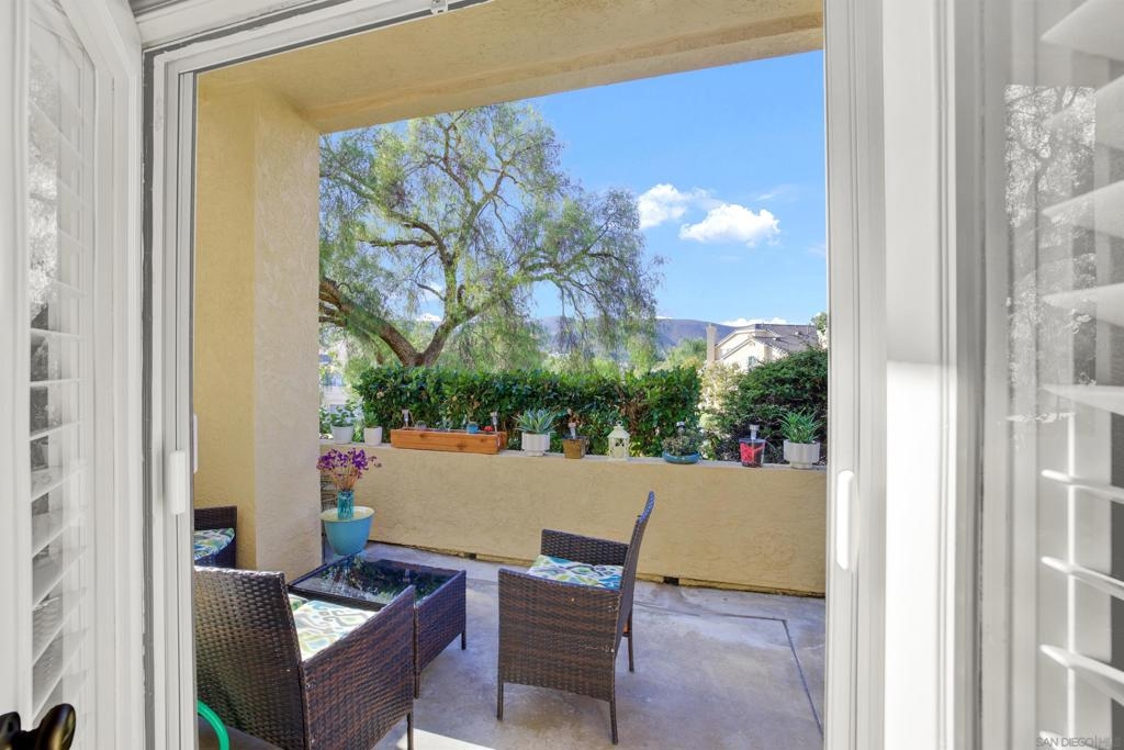 Welcoming, Bright 2BR/2BA corner-unit townhouse in the gated community of Provencal! Located within minutes of shops, eateries, freeway access, and golf courses in the Carmel Mountain Ranch region of Rancho Bernardo Two separate balconies - off the living room and master retreat with MOUNTAIN VIEWS. Beautiful kitchen features stainless steel appliances, granite countertops, a breakfast bar. whole house has water filtration. Vaulted ceiling and gas fireplace in the living room and an abundance of windows with custom plantation shutters. Large master suite with walk-in closet. Travertine tile flooring throughout with nice vinyl in the bedrooms. Full size washer and dryer in the laundry room. Plenty of storage in the attached 2 car garage.